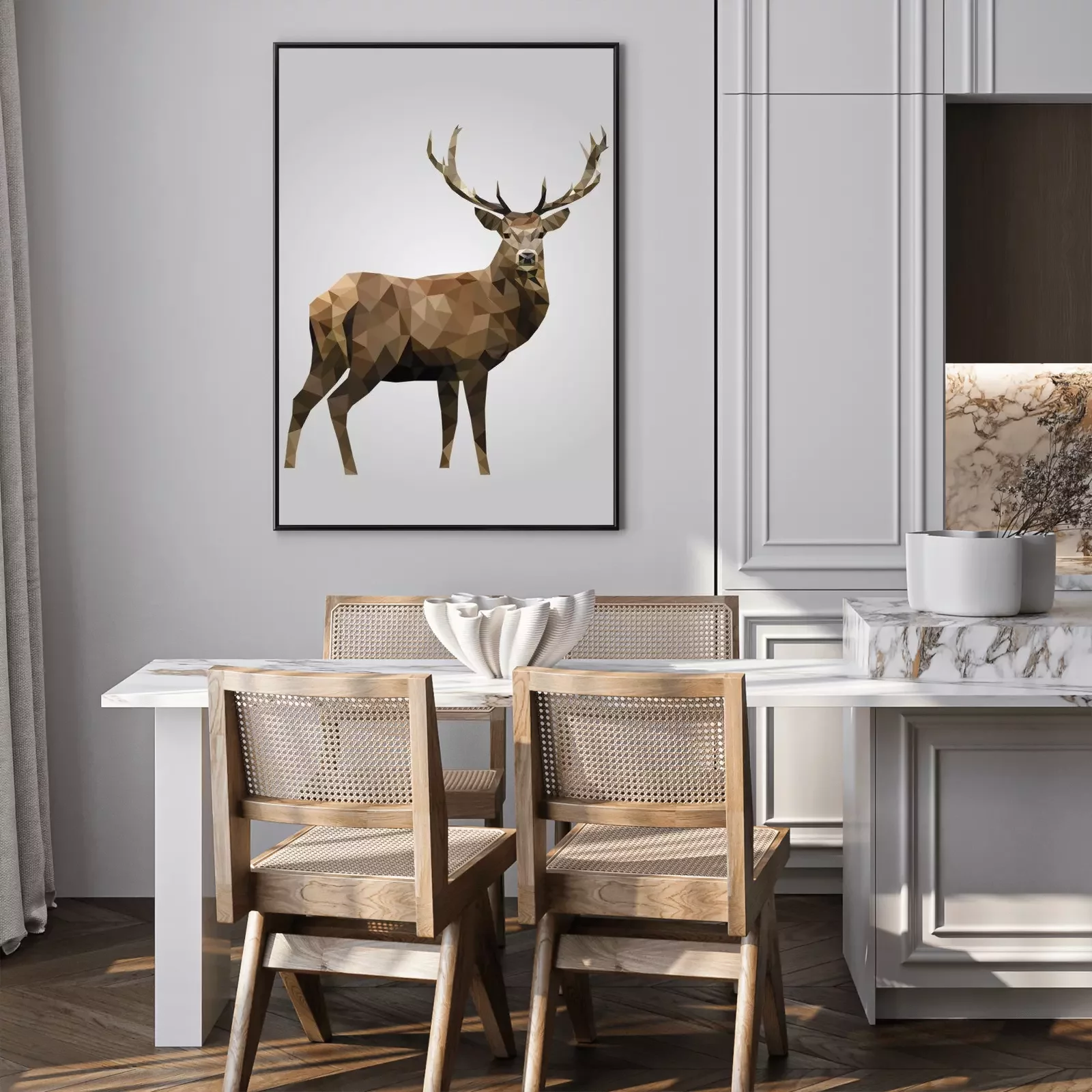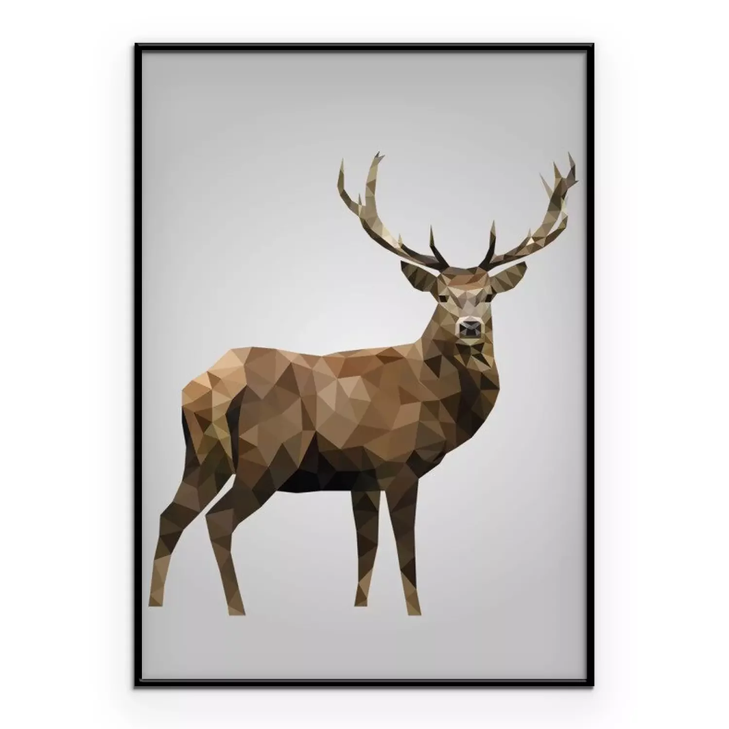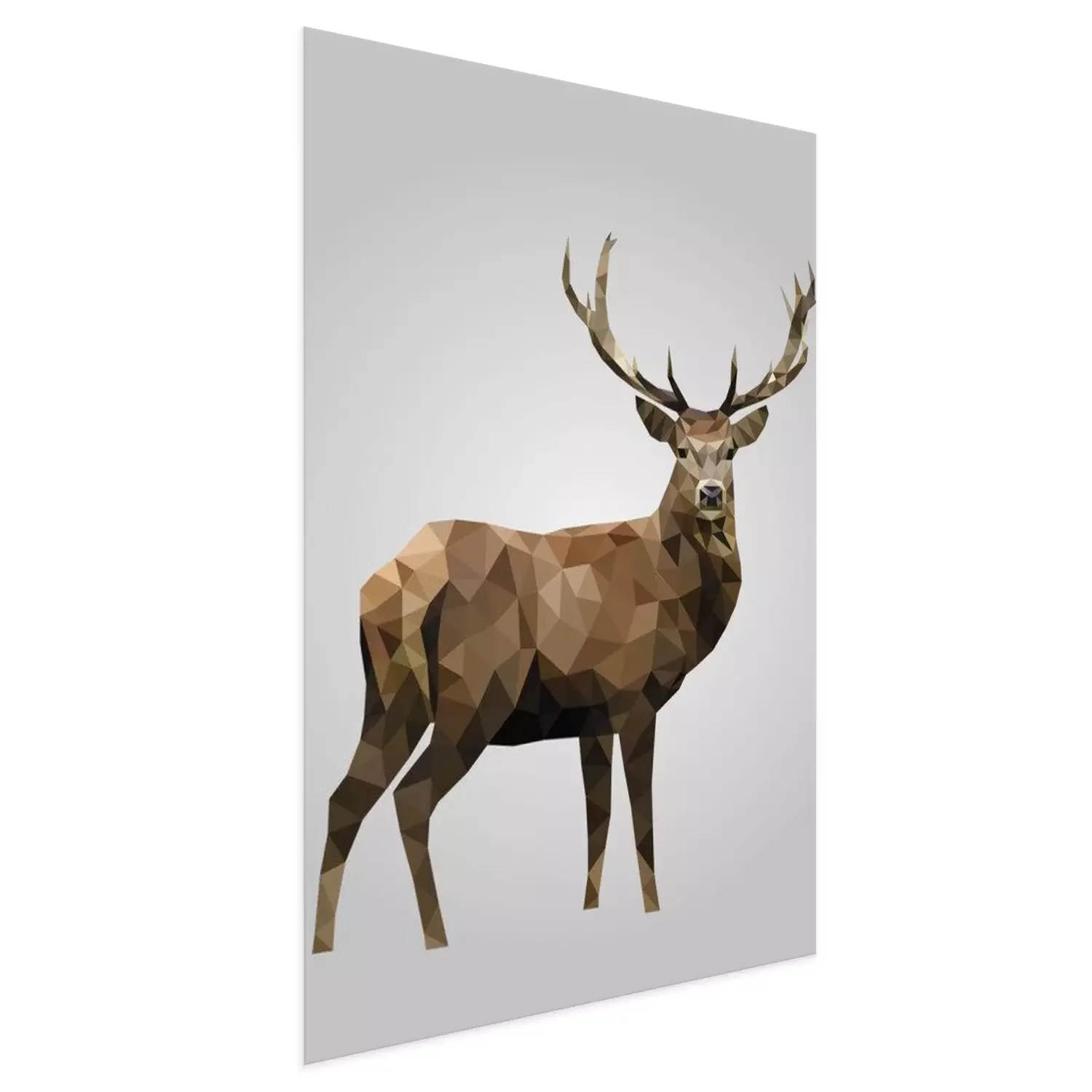 Poster: Geometrischer Hirsch auf grauem Hintergrund