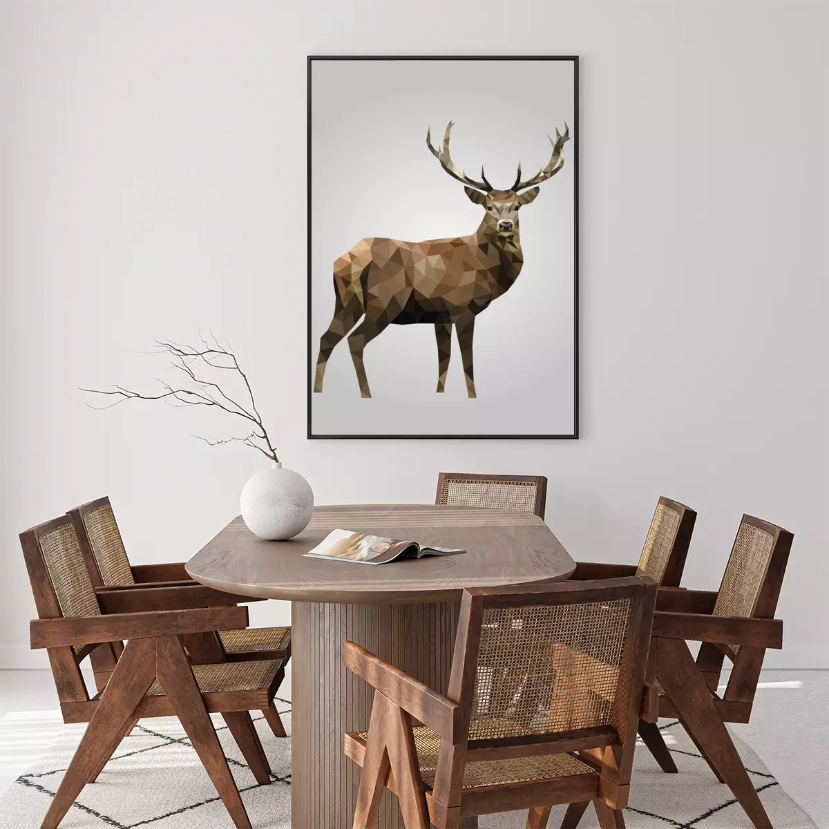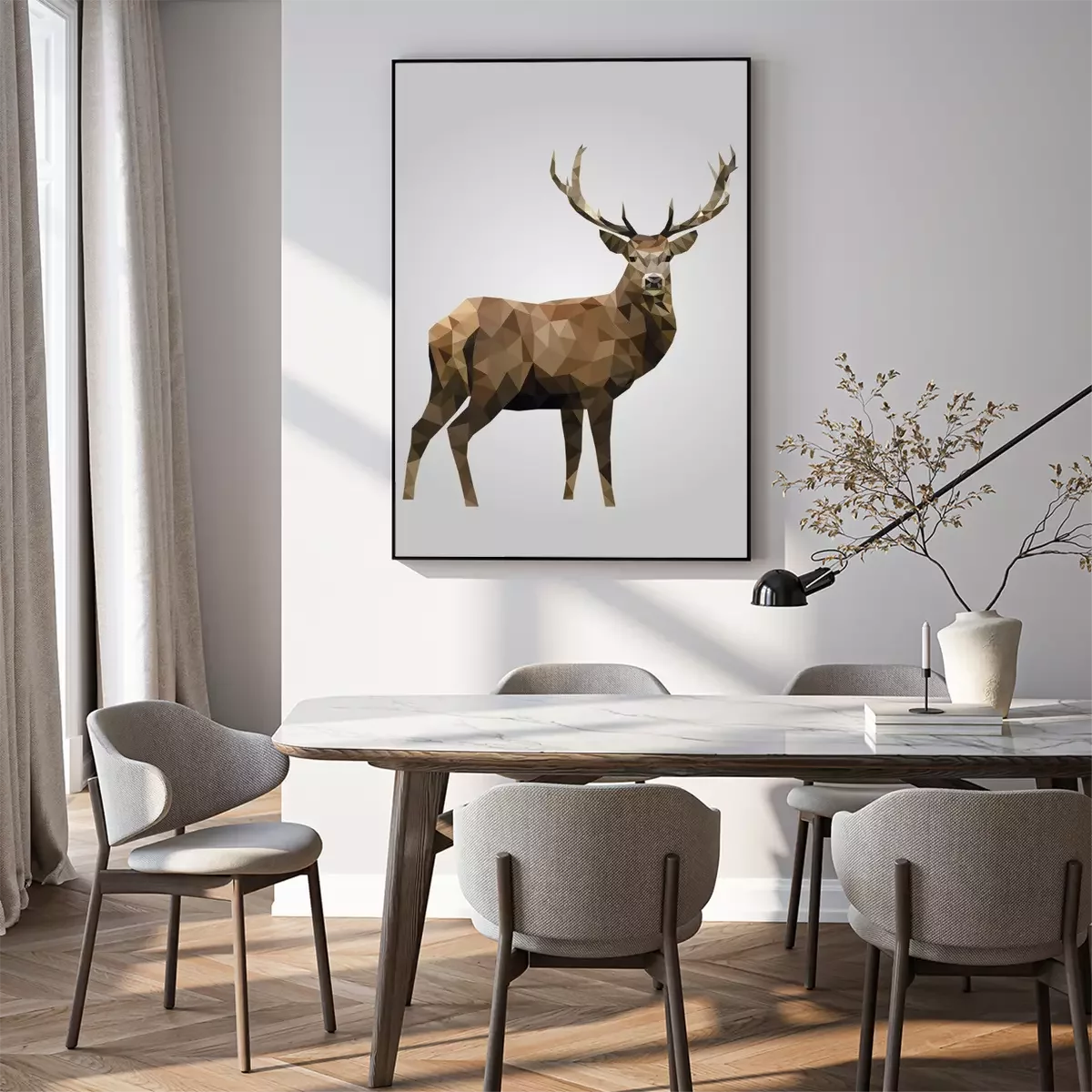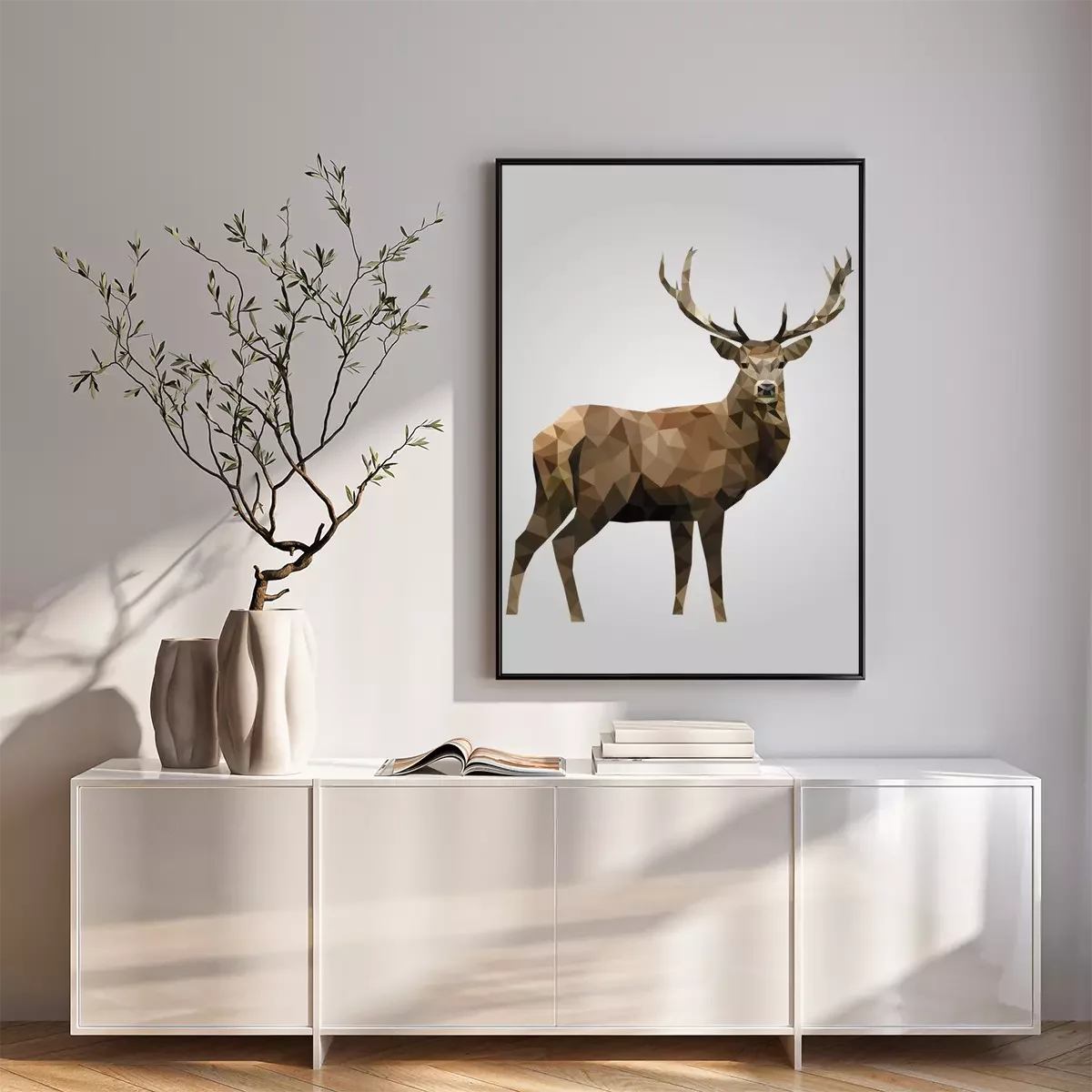 Poster: Geometrischer Hirsch auf grauem Hintergrund