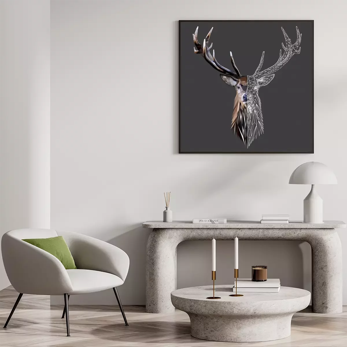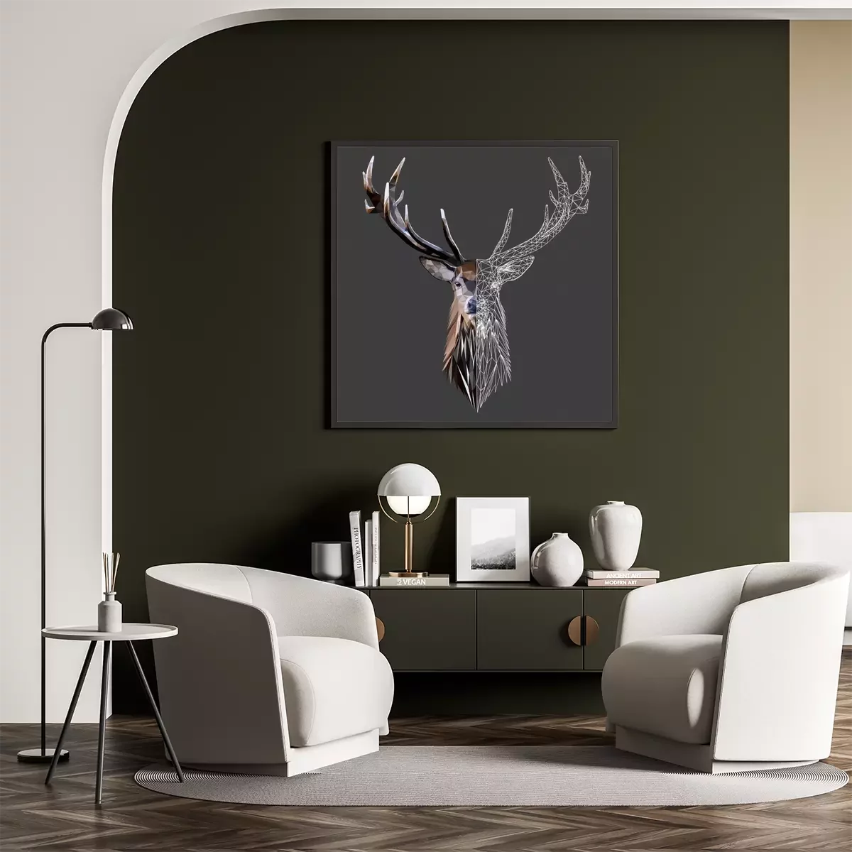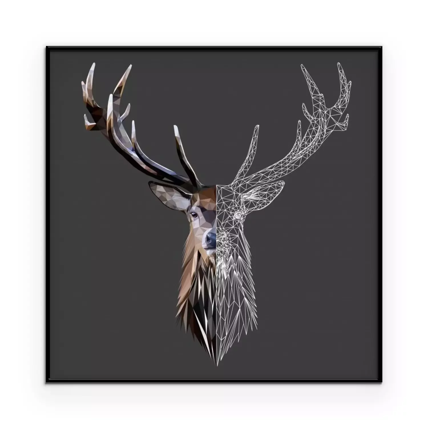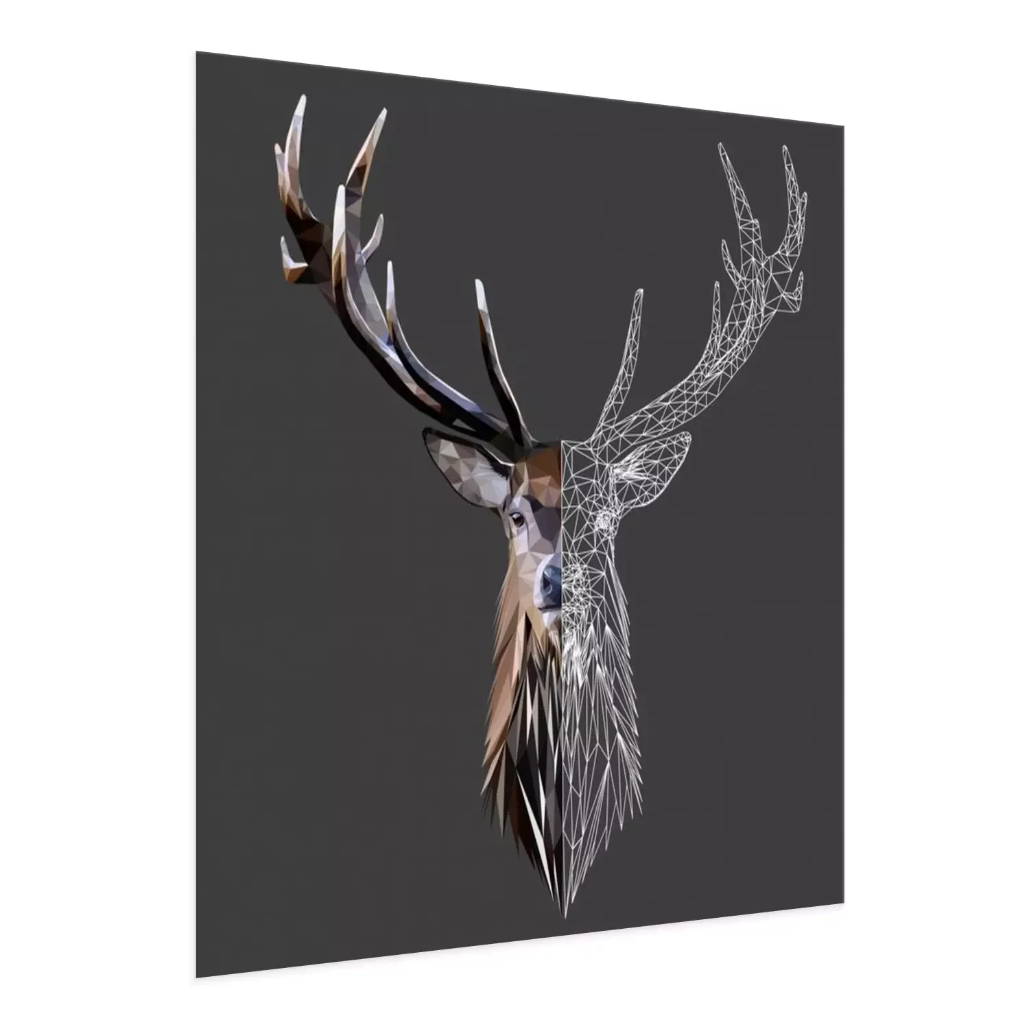 Poster: Geometrischer Hirsch auf schwarzem Hintergrund