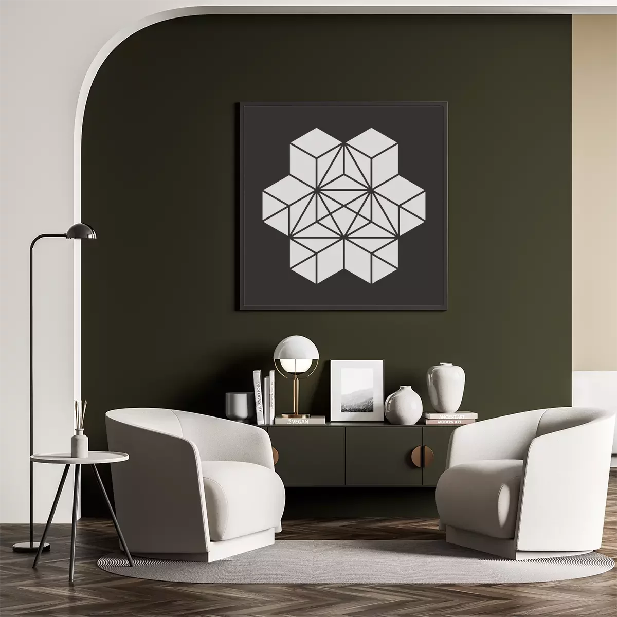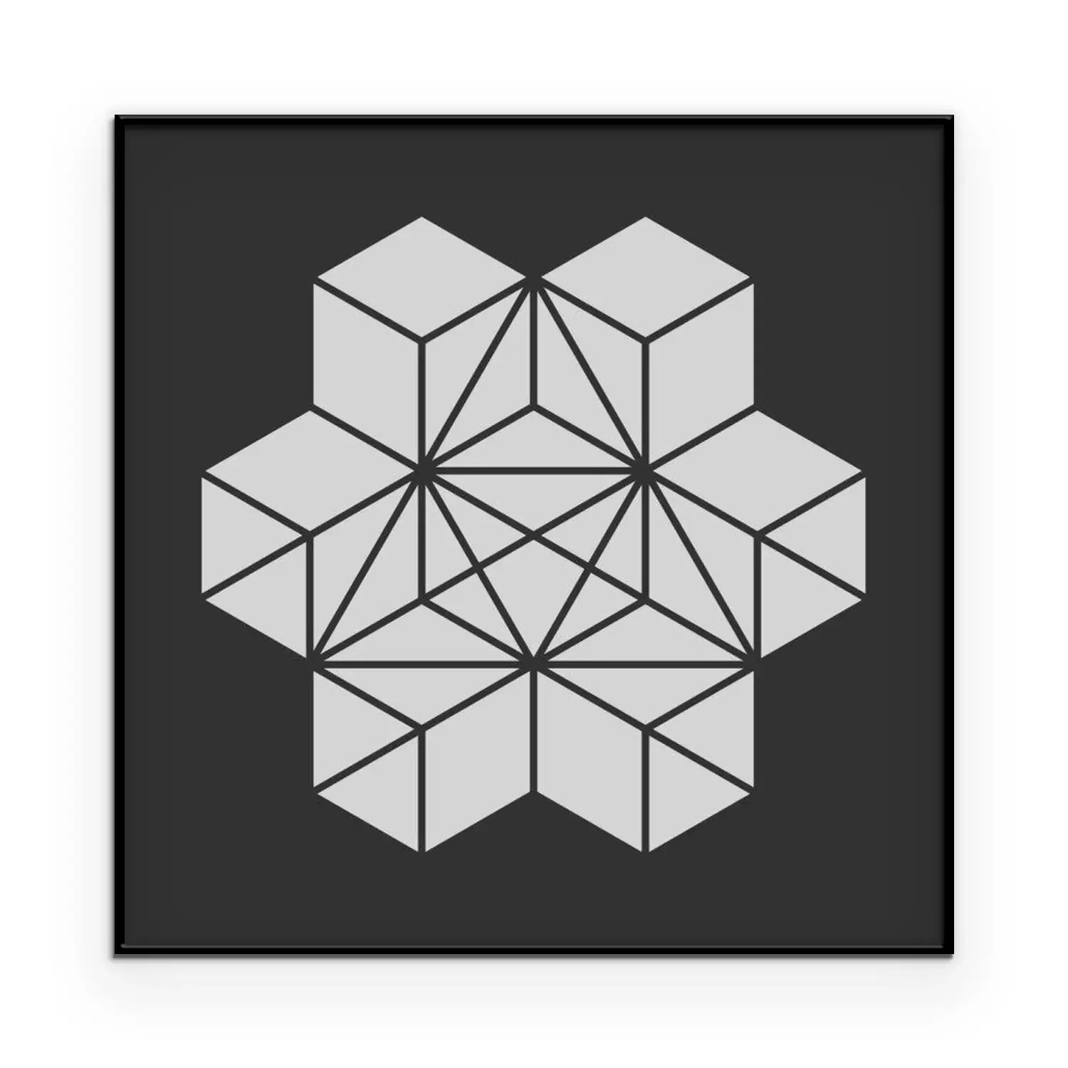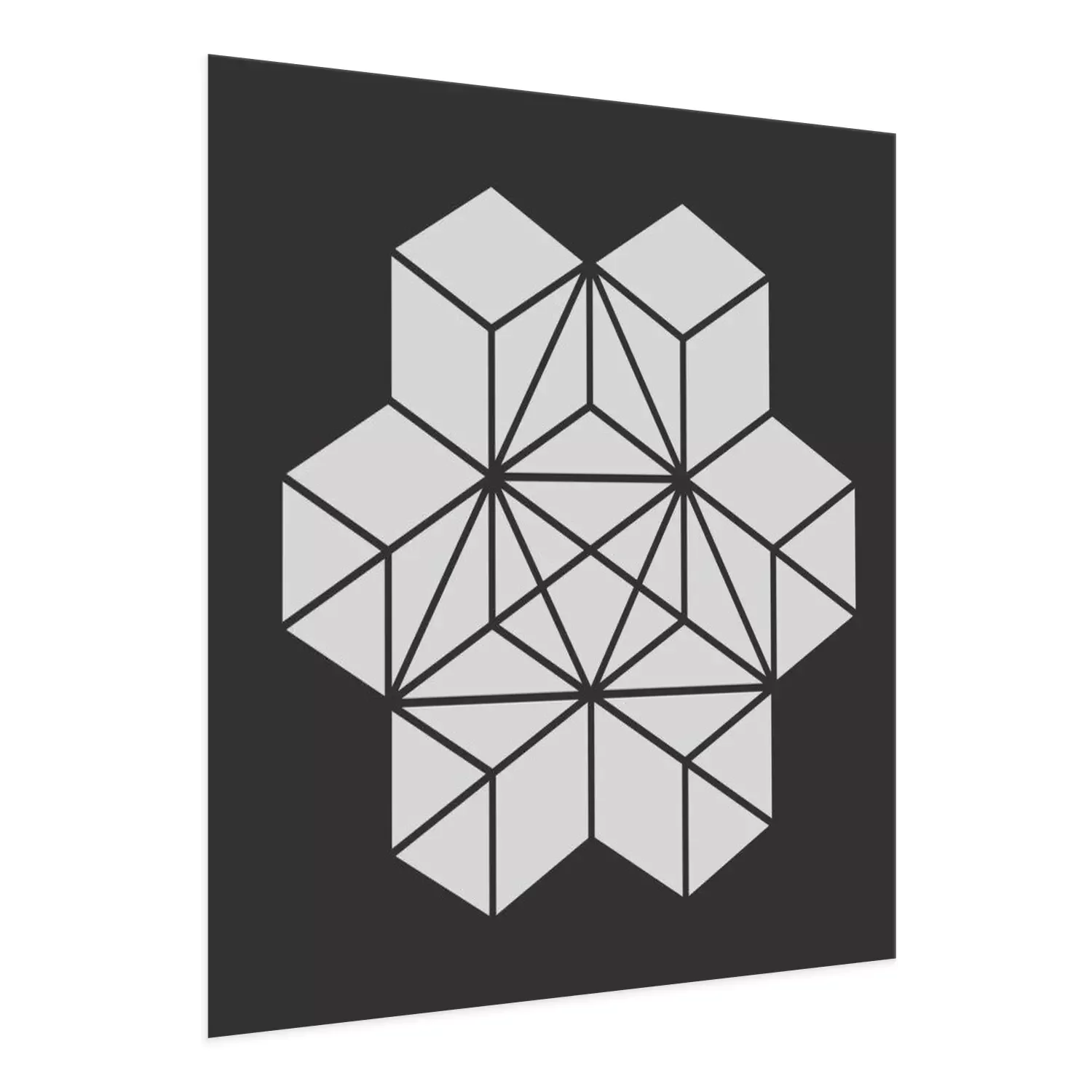 Poster: Geometrischer Würfel auf dunklem Hintergrund
