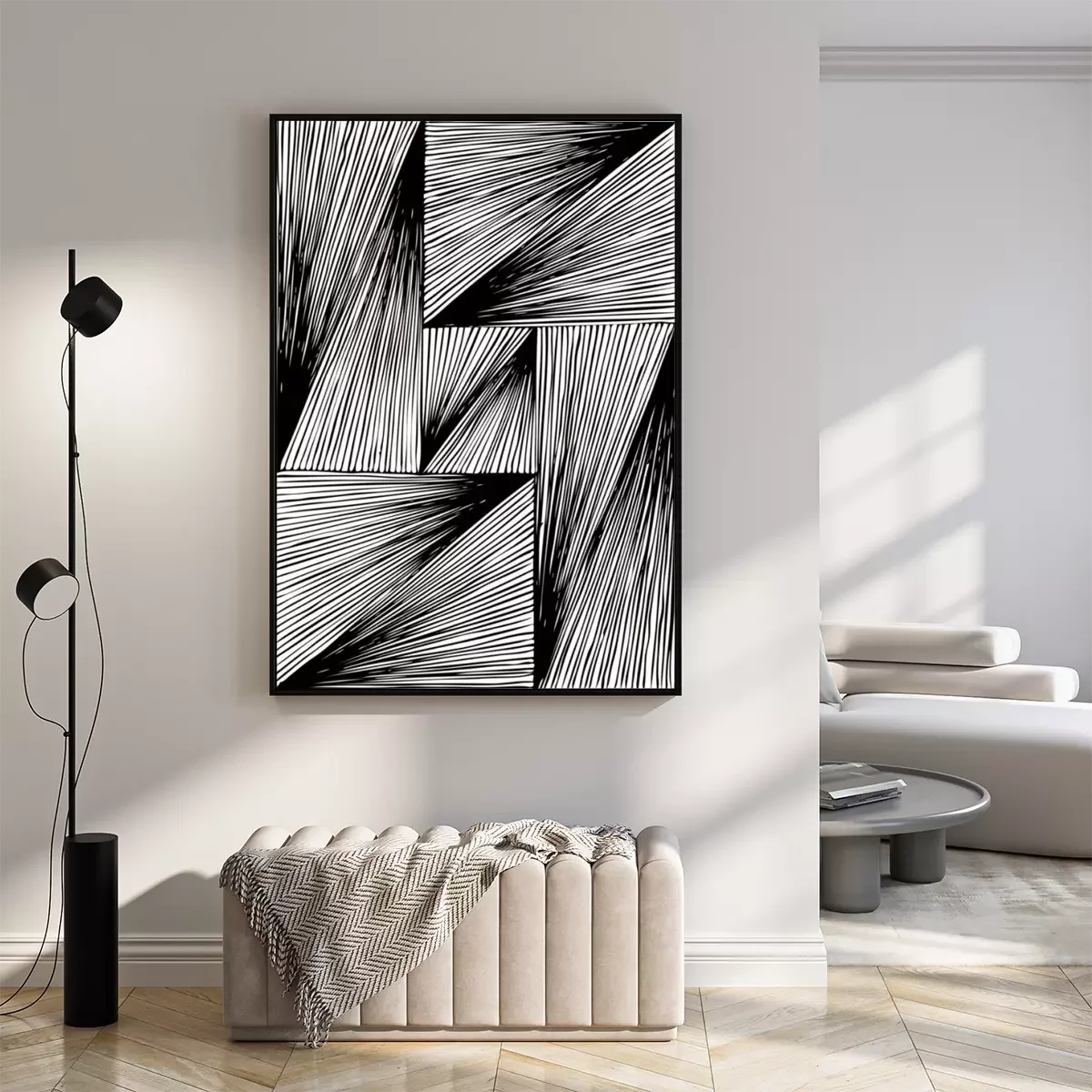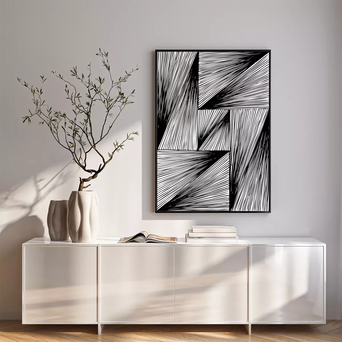 Poster: Geometrisches Motiv aus Dreiecken und Vierecken