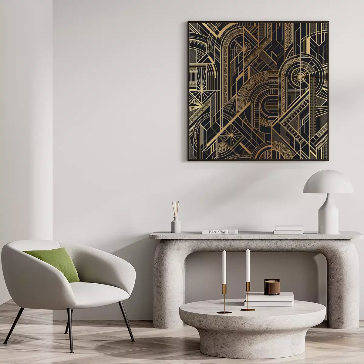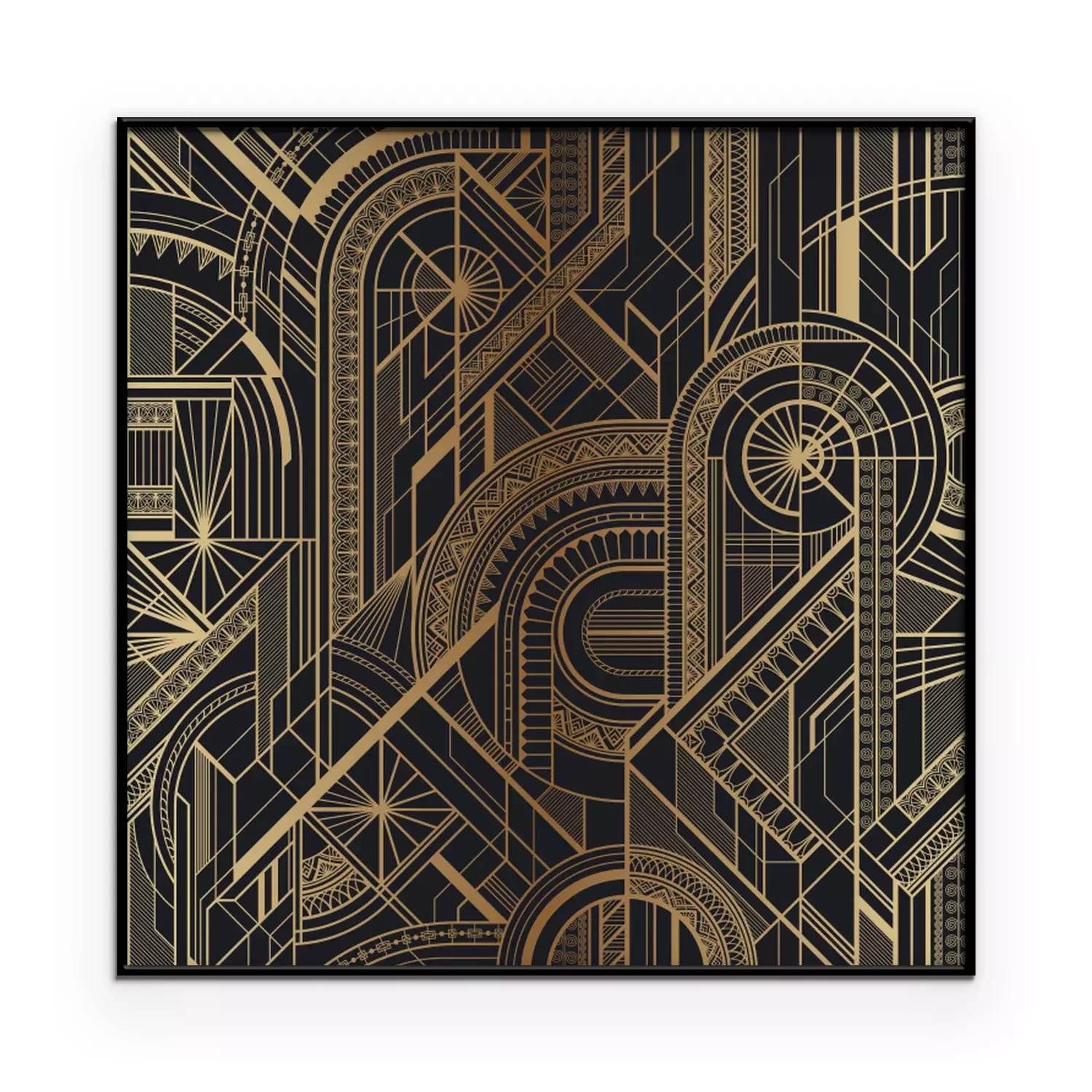 Poster: Geometrisches Muster auf schwarzem Hintergrund im Art-Déco-Stil