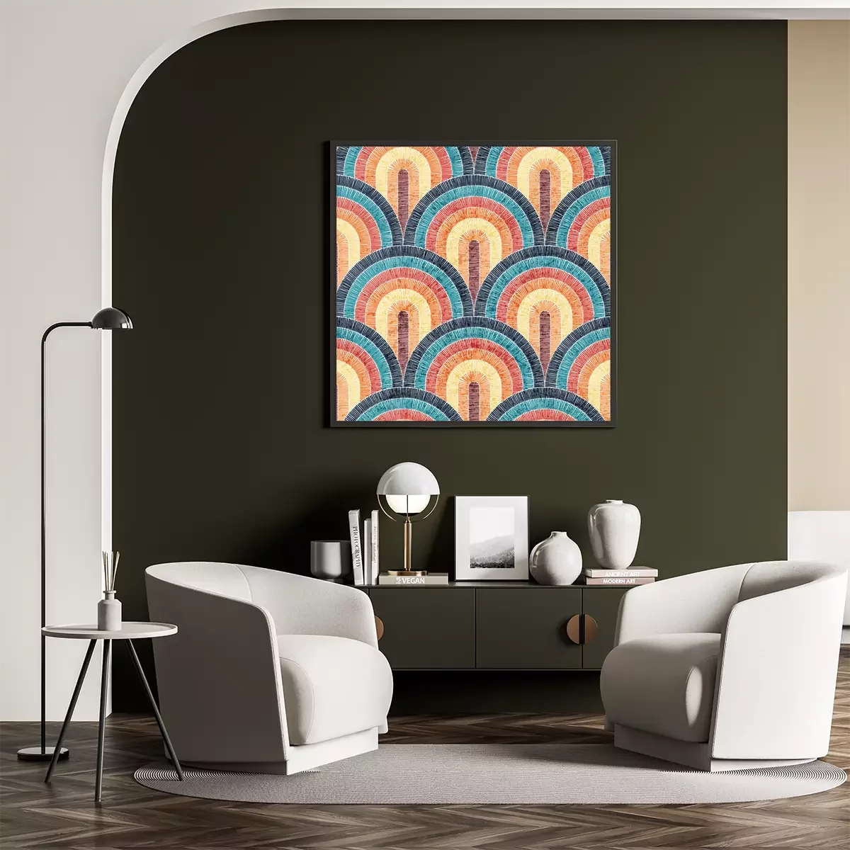 Poster: Gesticktes geometrisches Muster im Boho-Stil