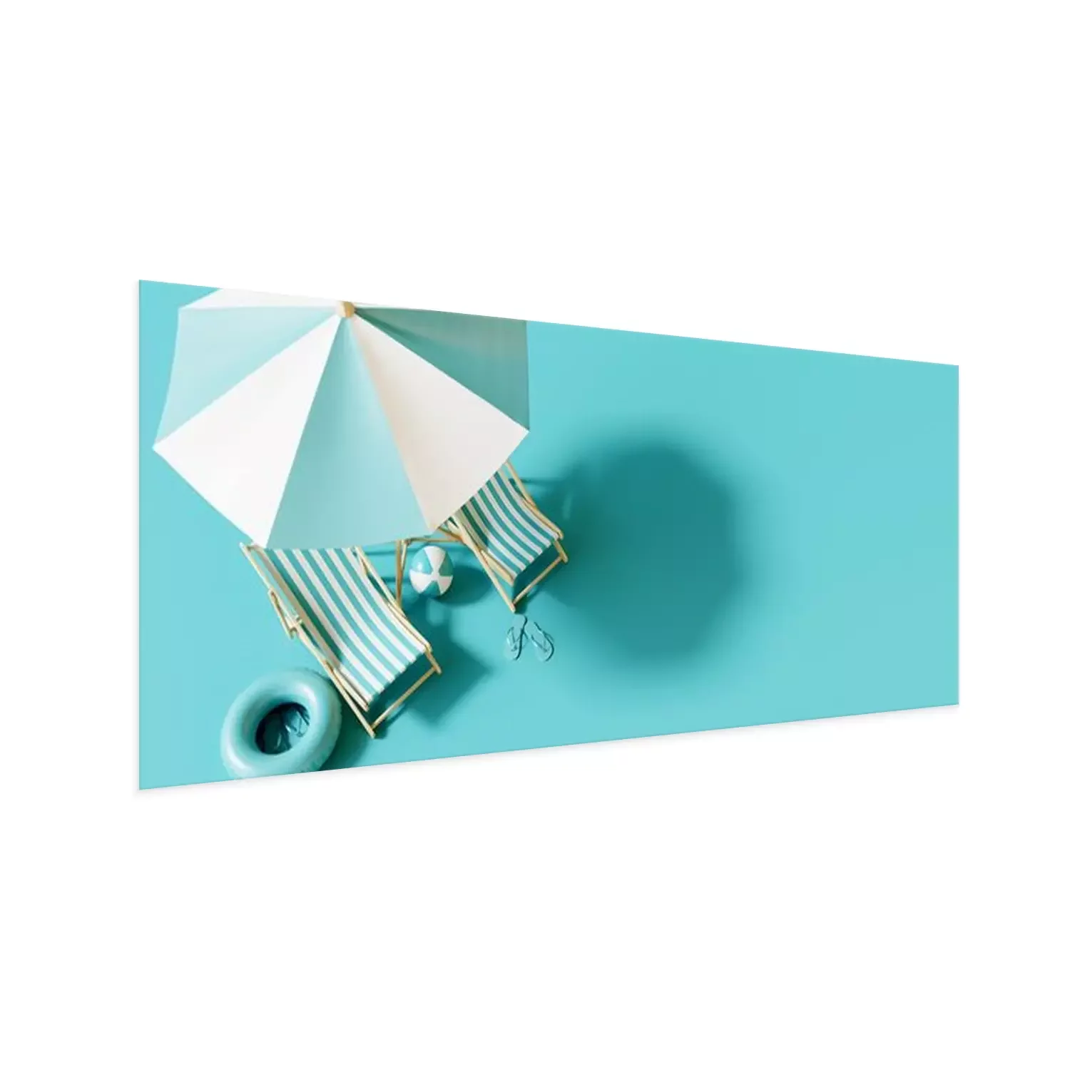 Poster: Getränk mit einem Regenschirm auf blauem Hintergrund
