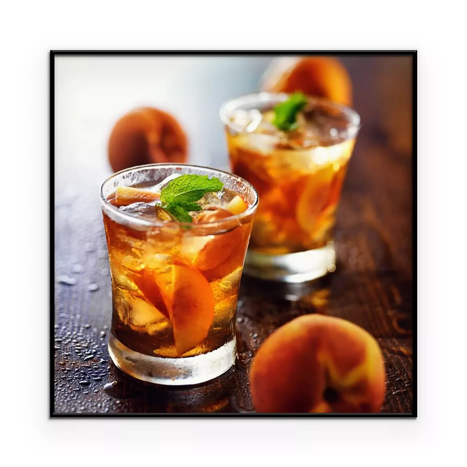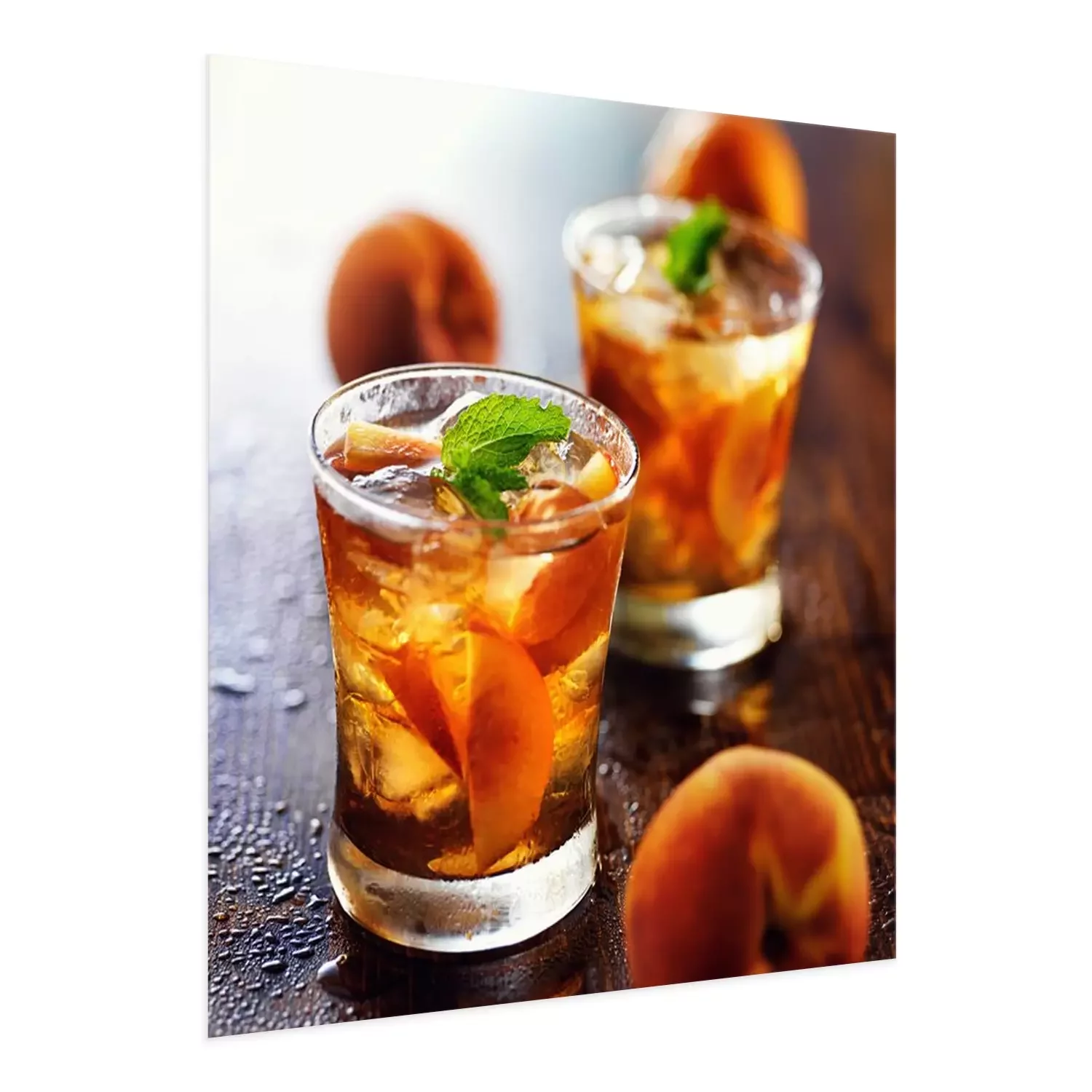 Poster: Getränke mit geschnittenen Pfirsichen