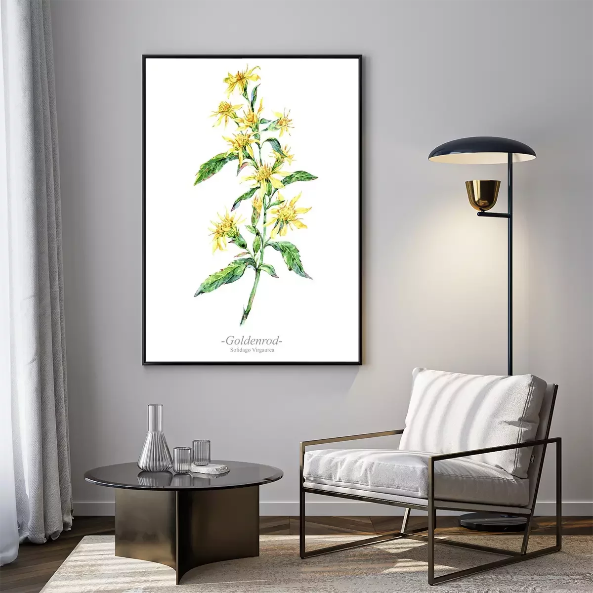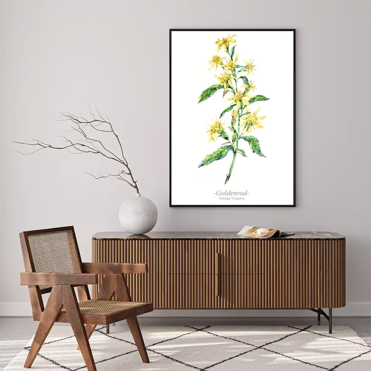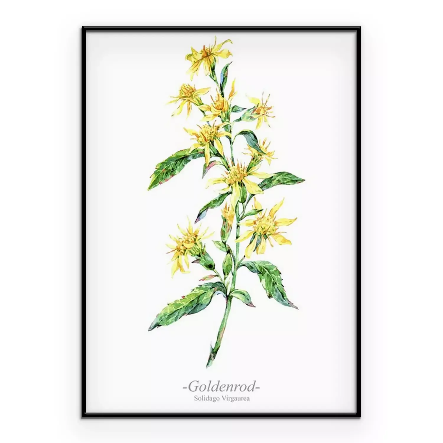 Poster Gewöhnliche Goldrute Blume mit Beschreibung