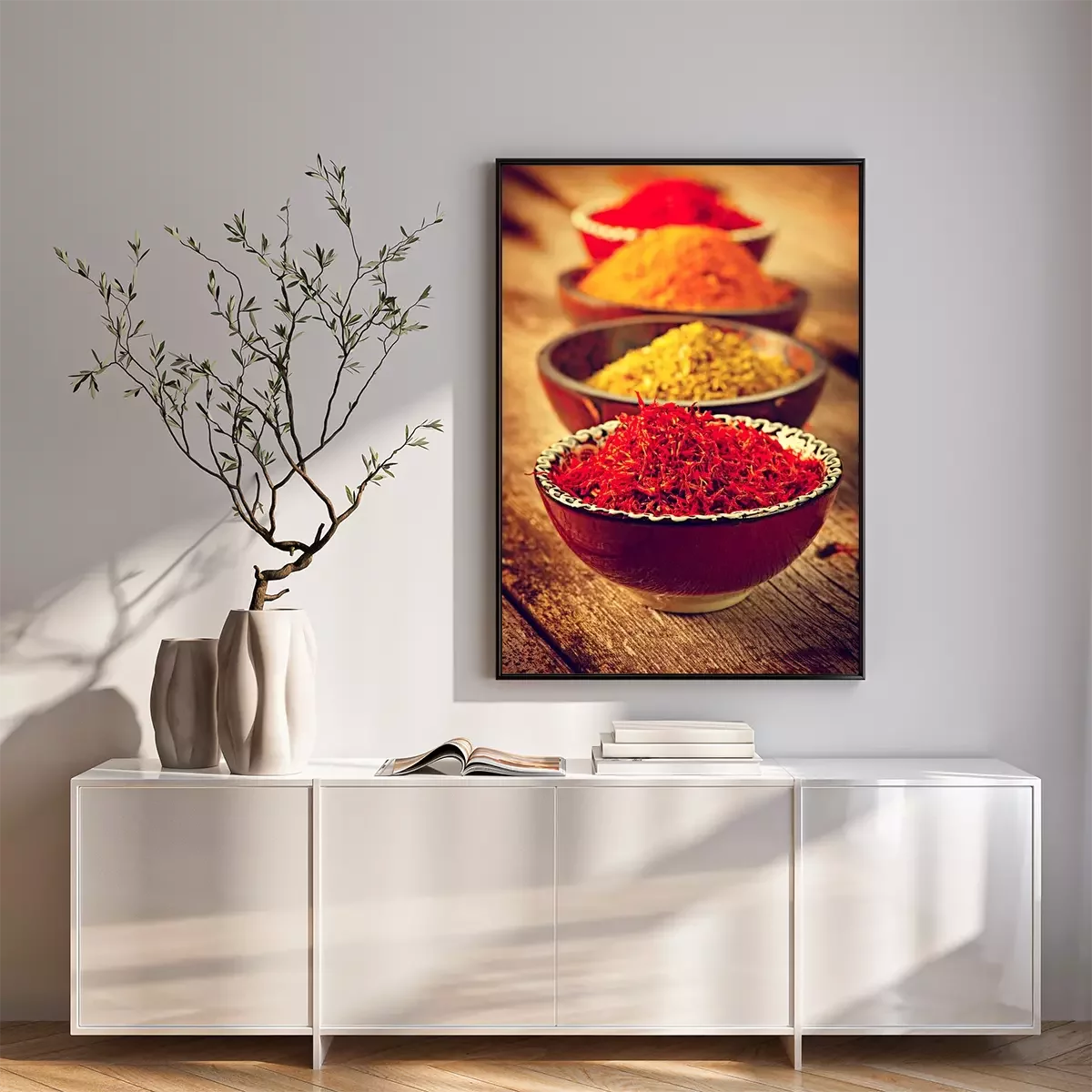 Poster: Gewürze in verschiedenfarbigen Schalen