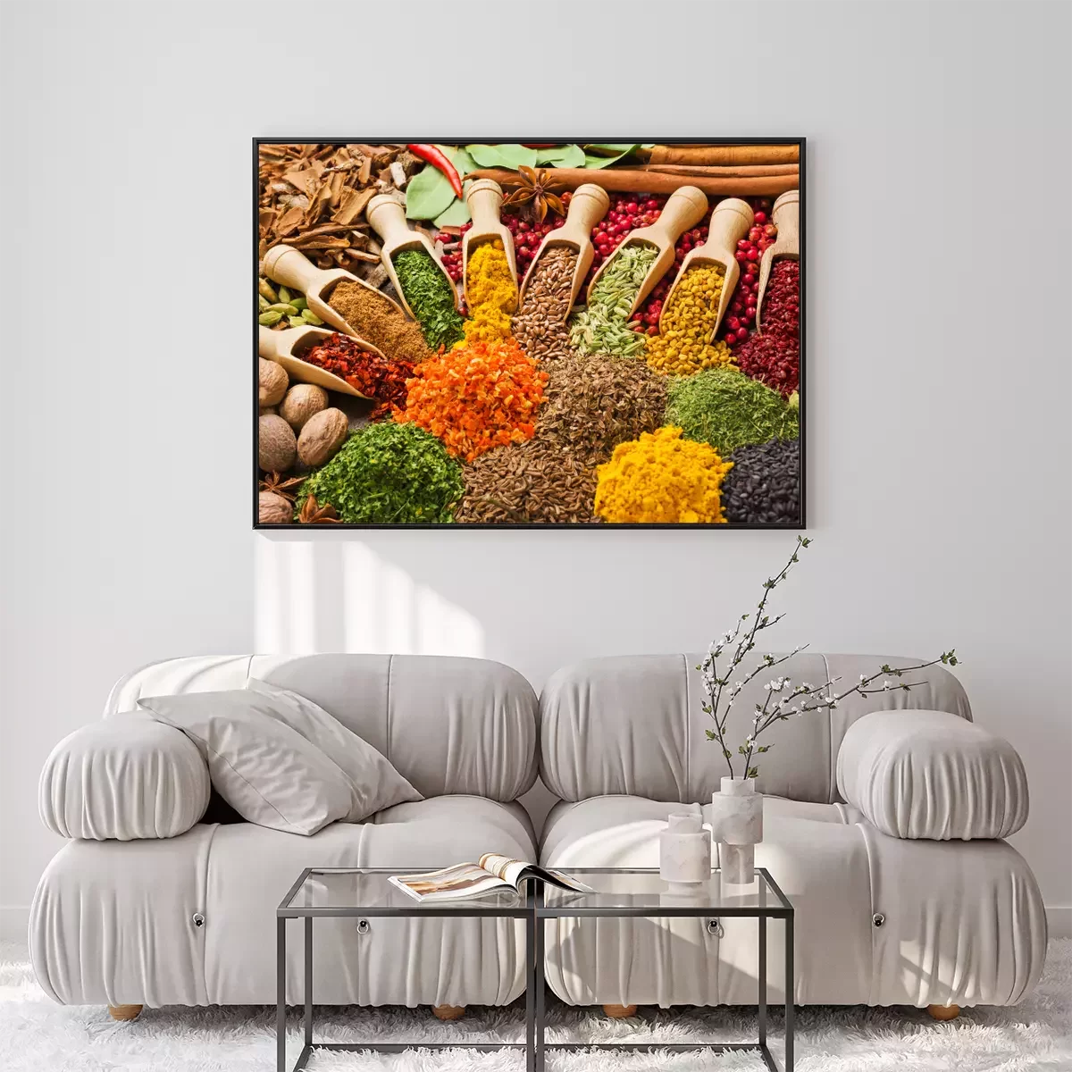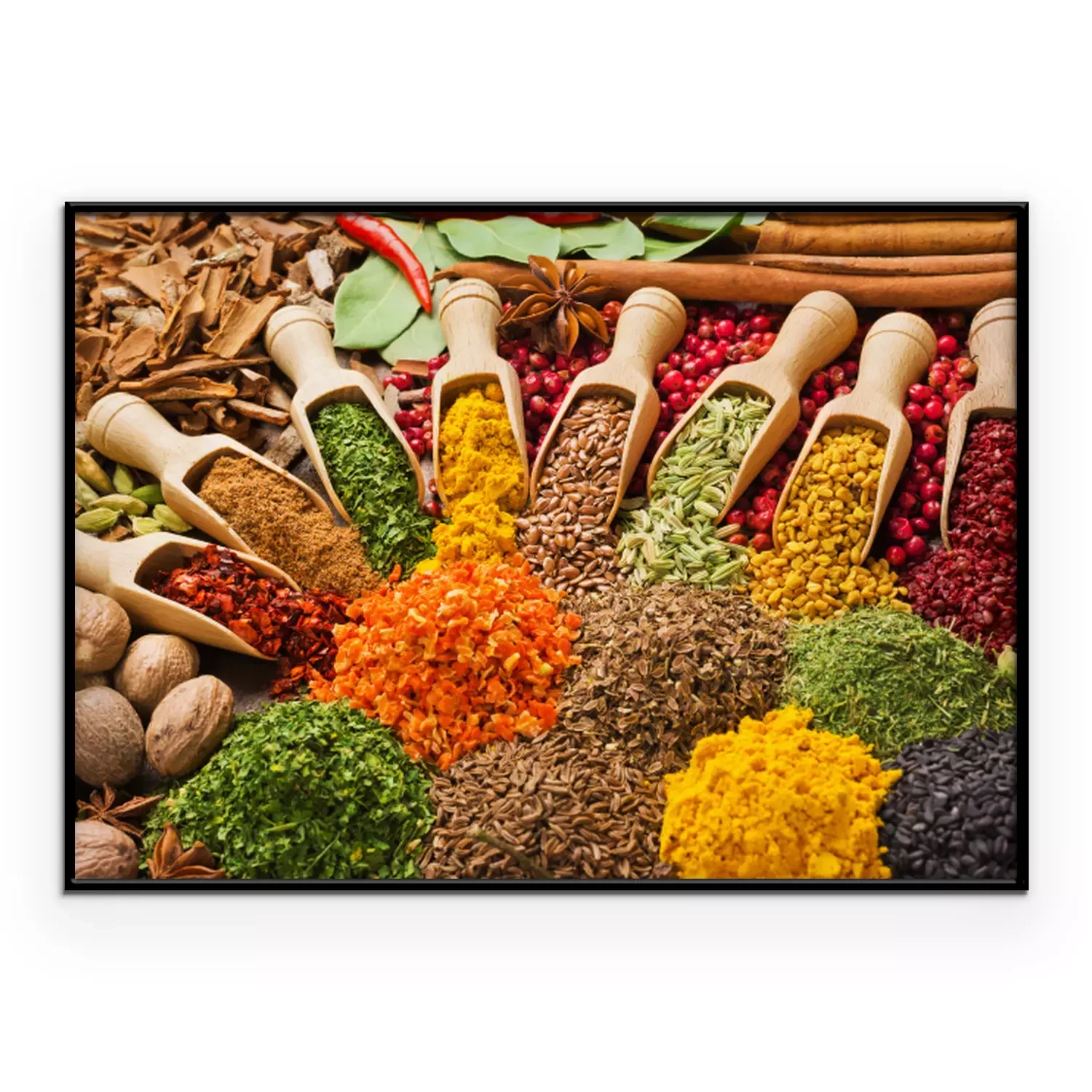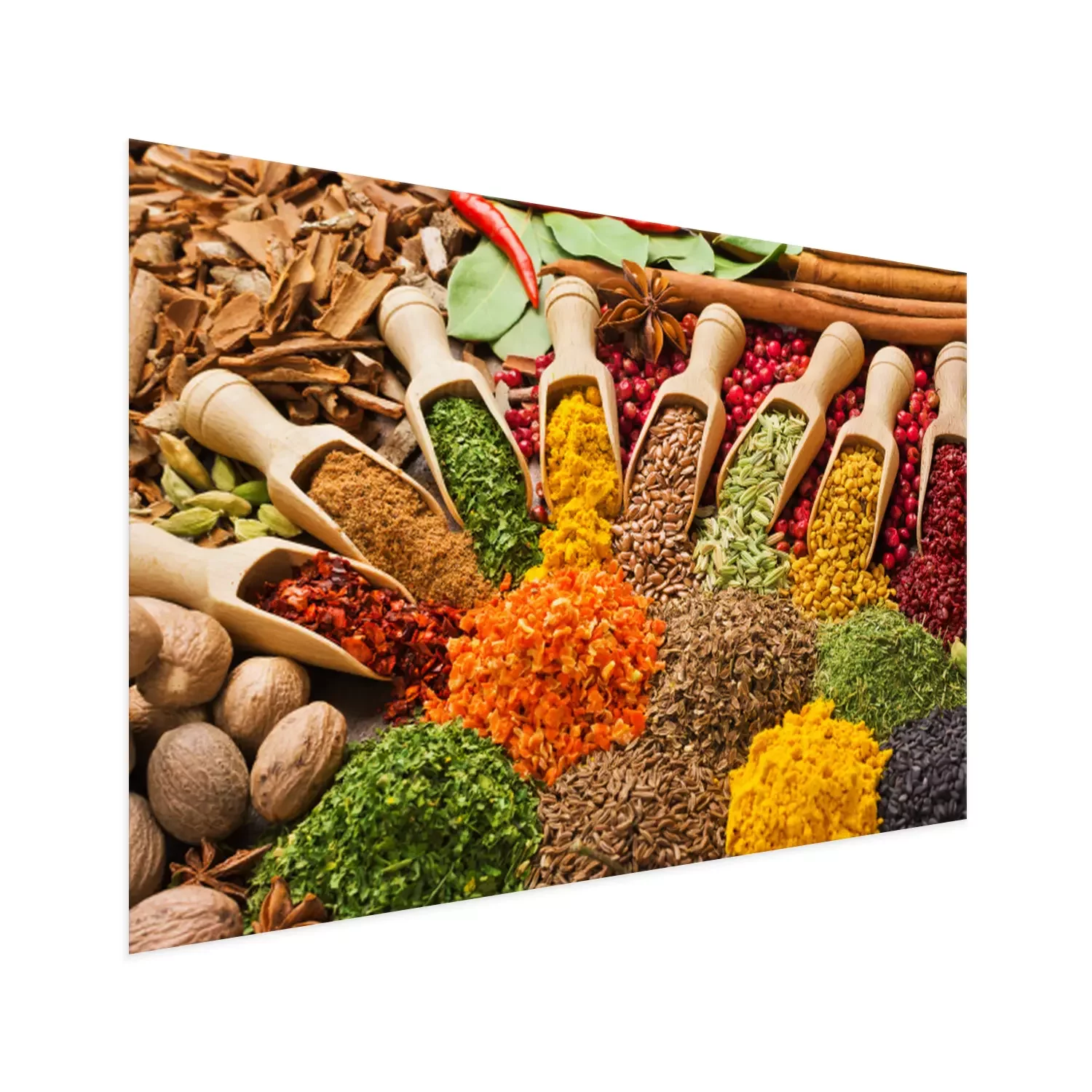 Poster: Gewürze Kräuter und Holz-Schöpflöffel