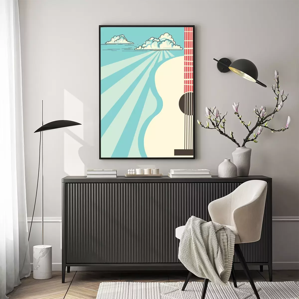 Poster: Gitarre vor dem Hintergrund des Himmels im Vintage-Stil