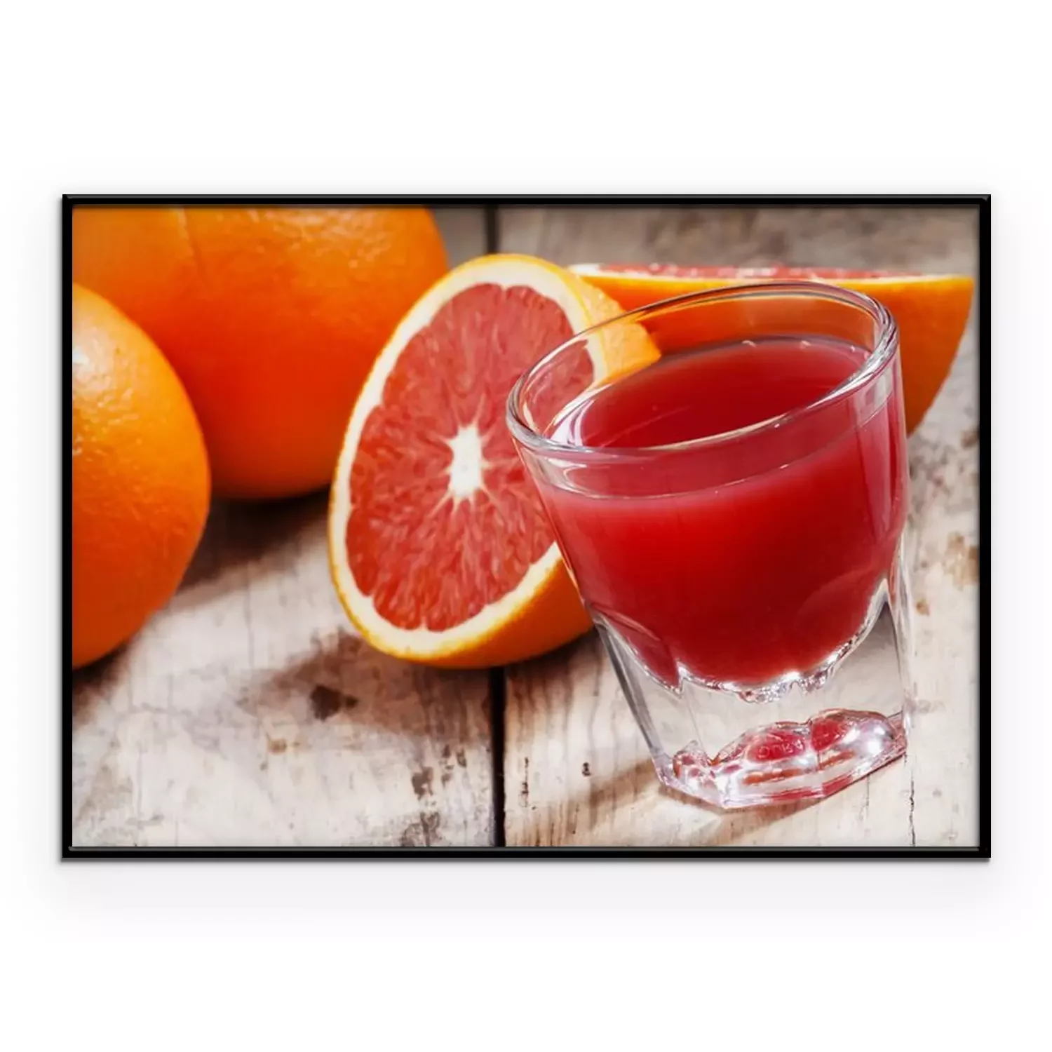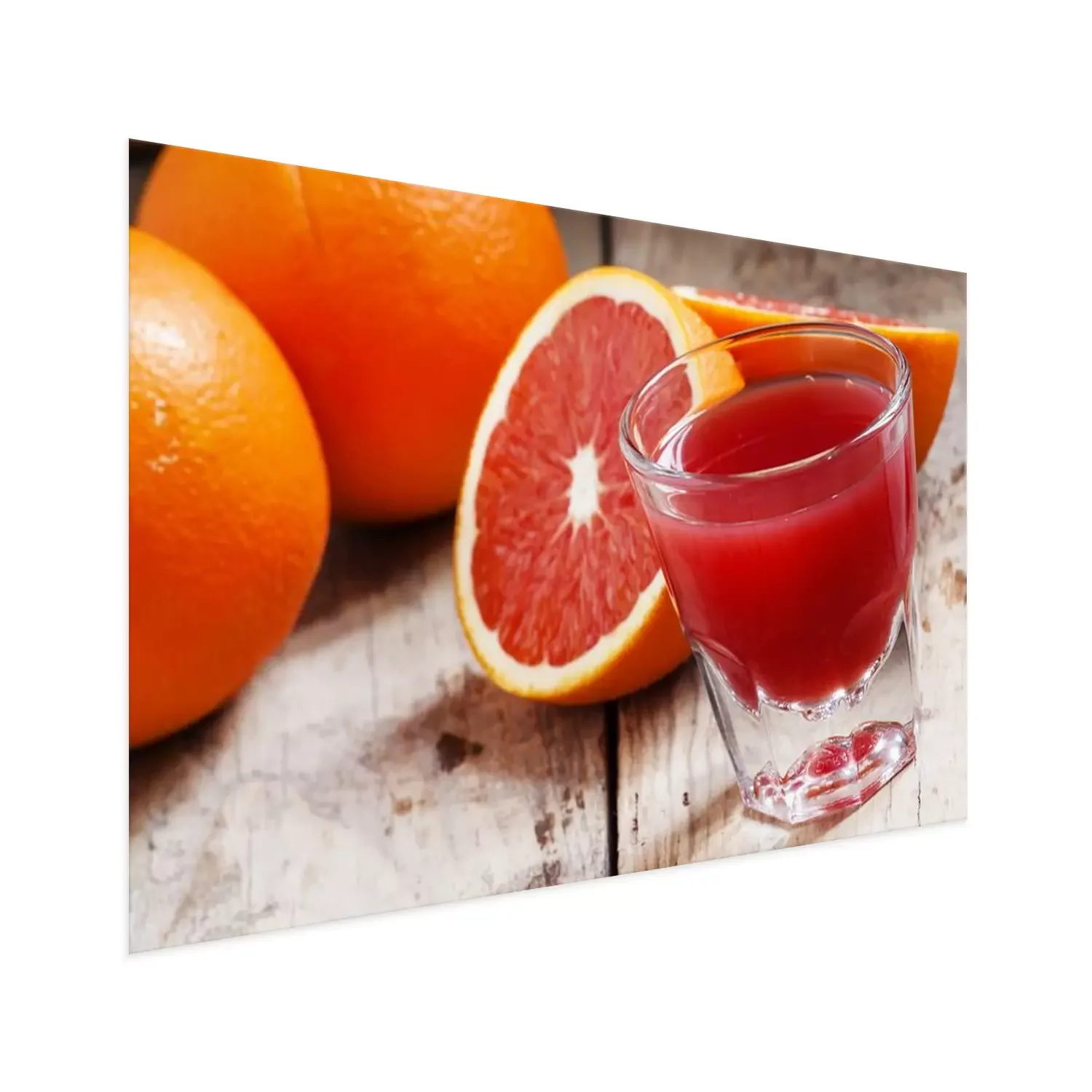 Poster: Glas Saft vor dem Hintergrund von roten Orangen