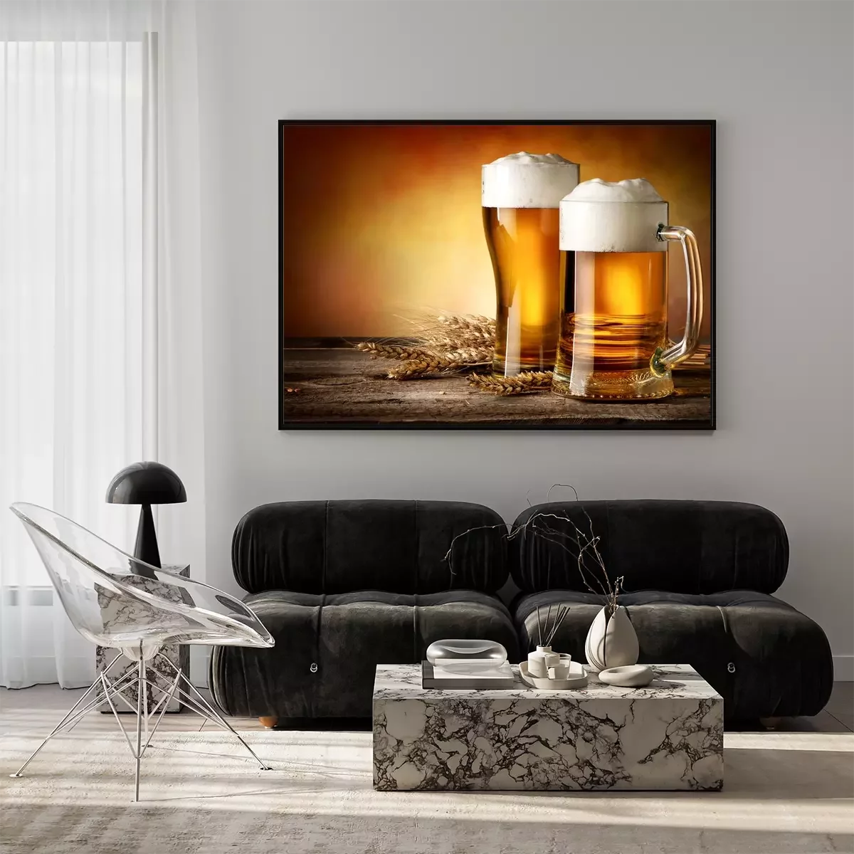 Poster Glas und Krug auf dem Tisch