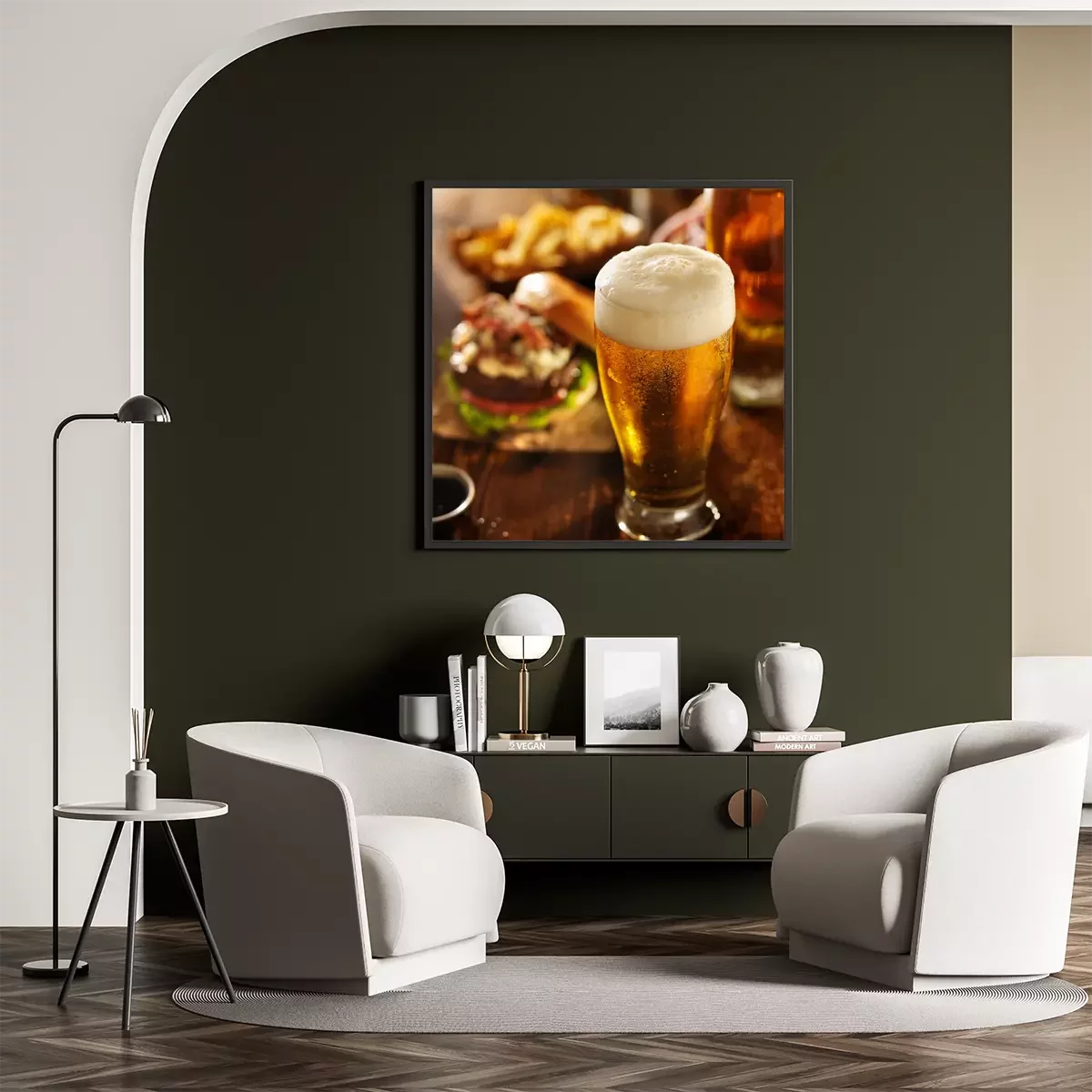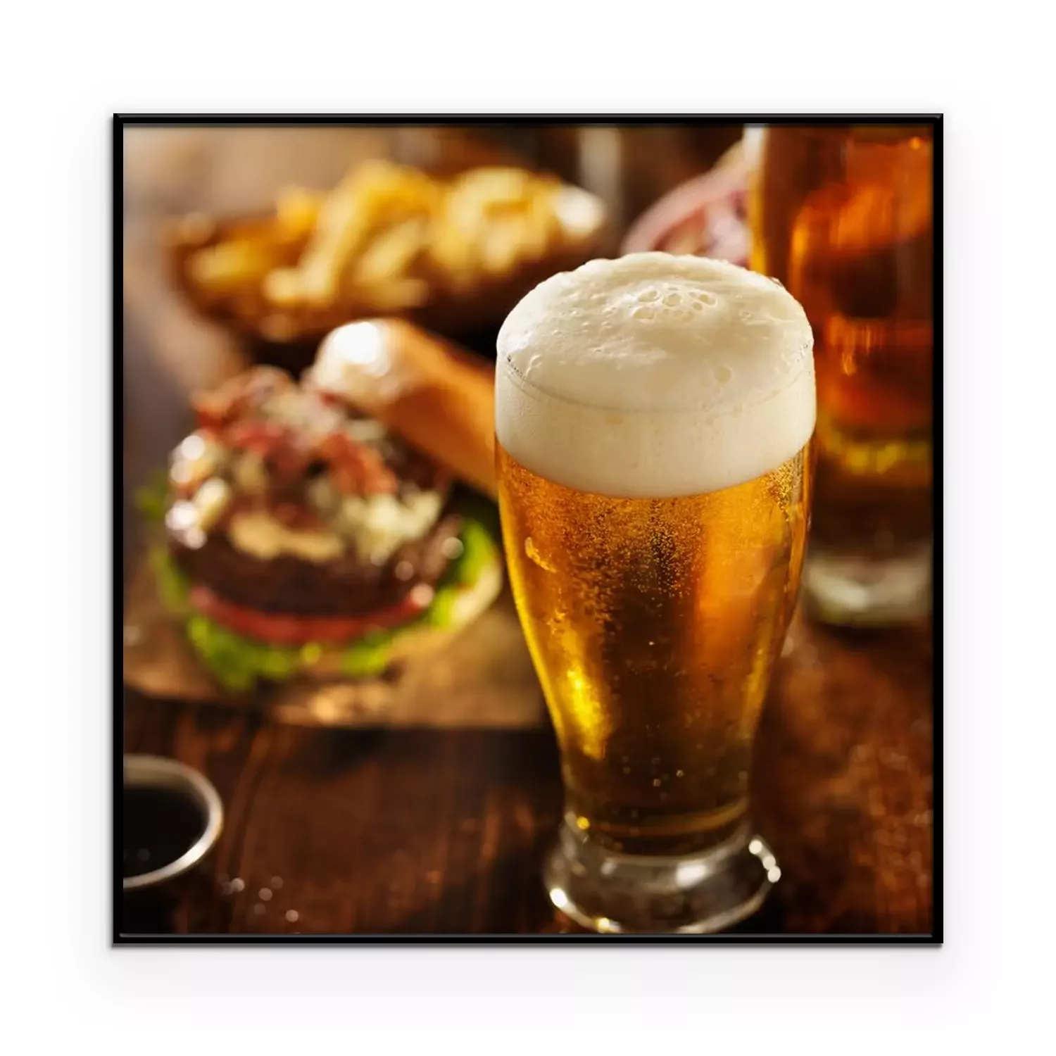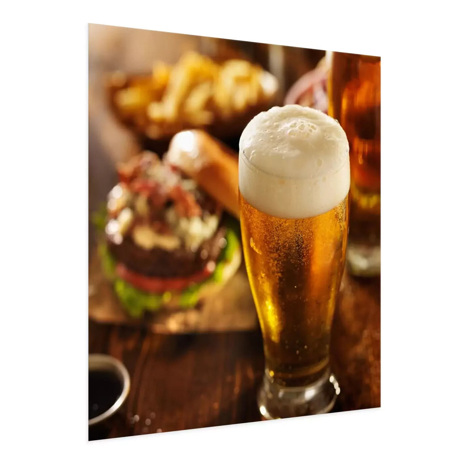 Poster: Glas vor dem Hintergrund von Burger und Pommes frites