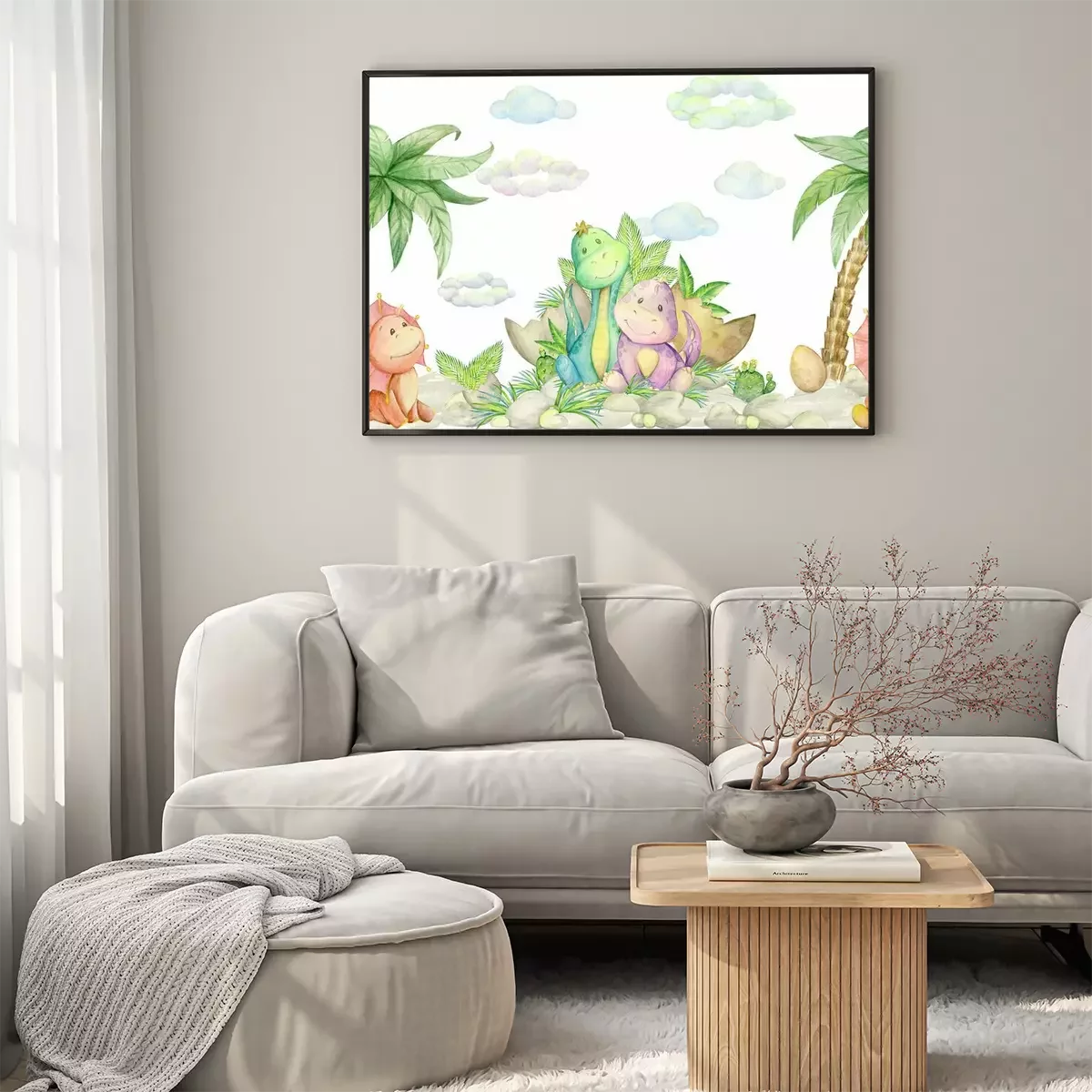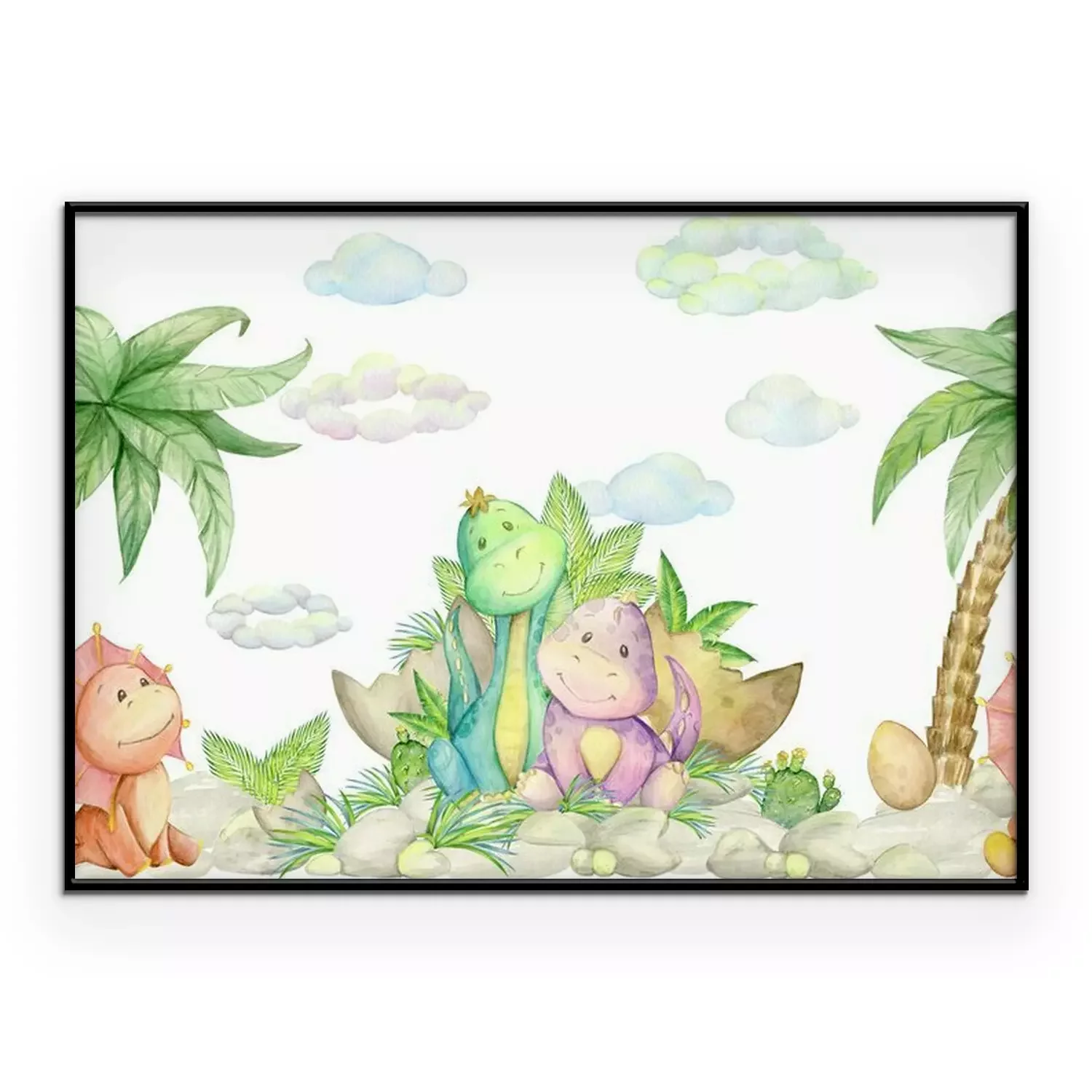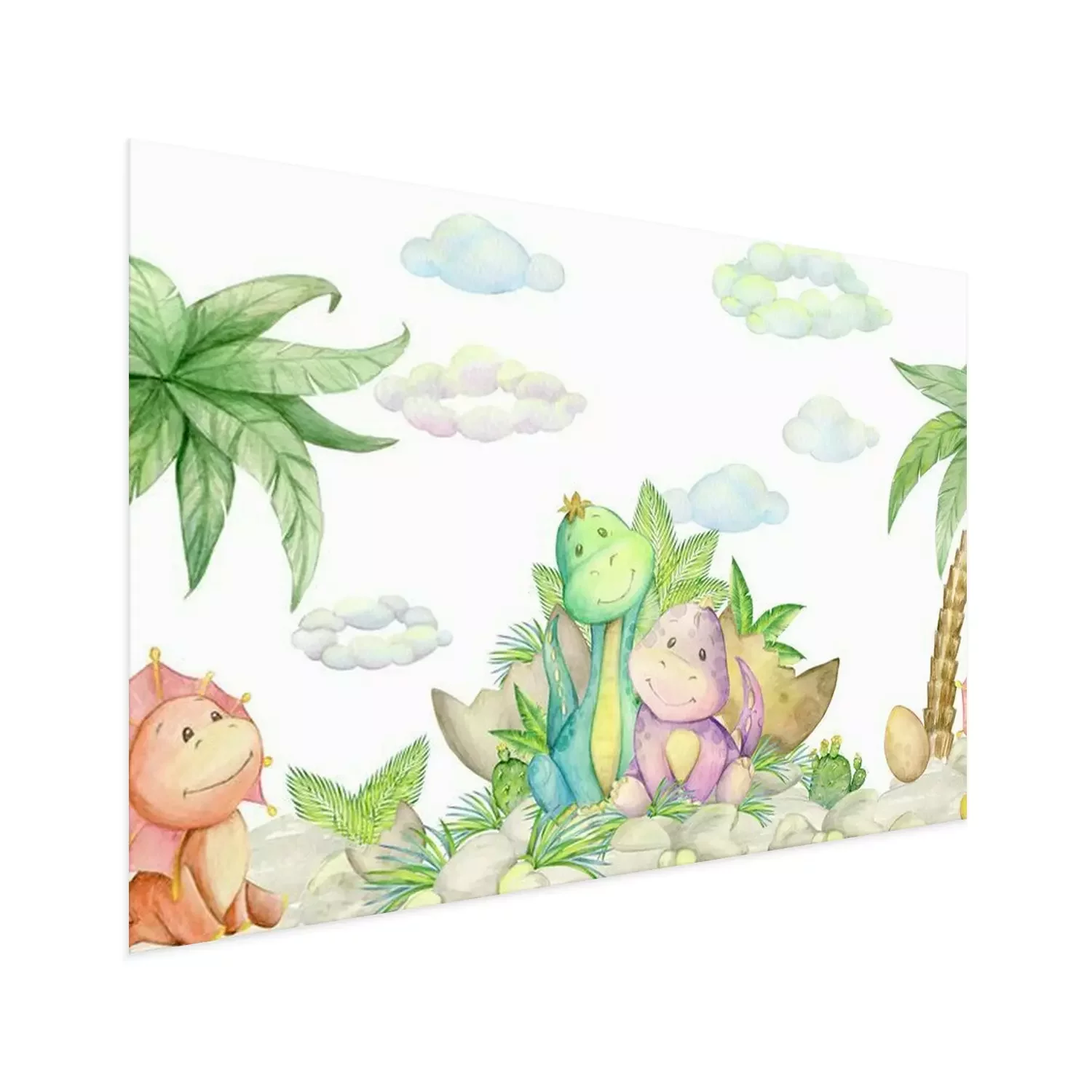 Poster: Glückliche Dinosaurier und exotische Palmen