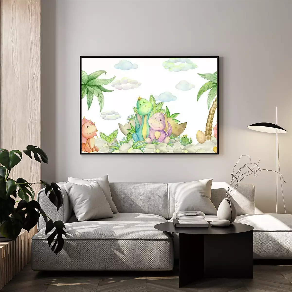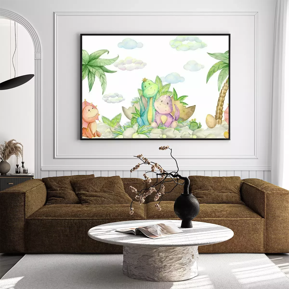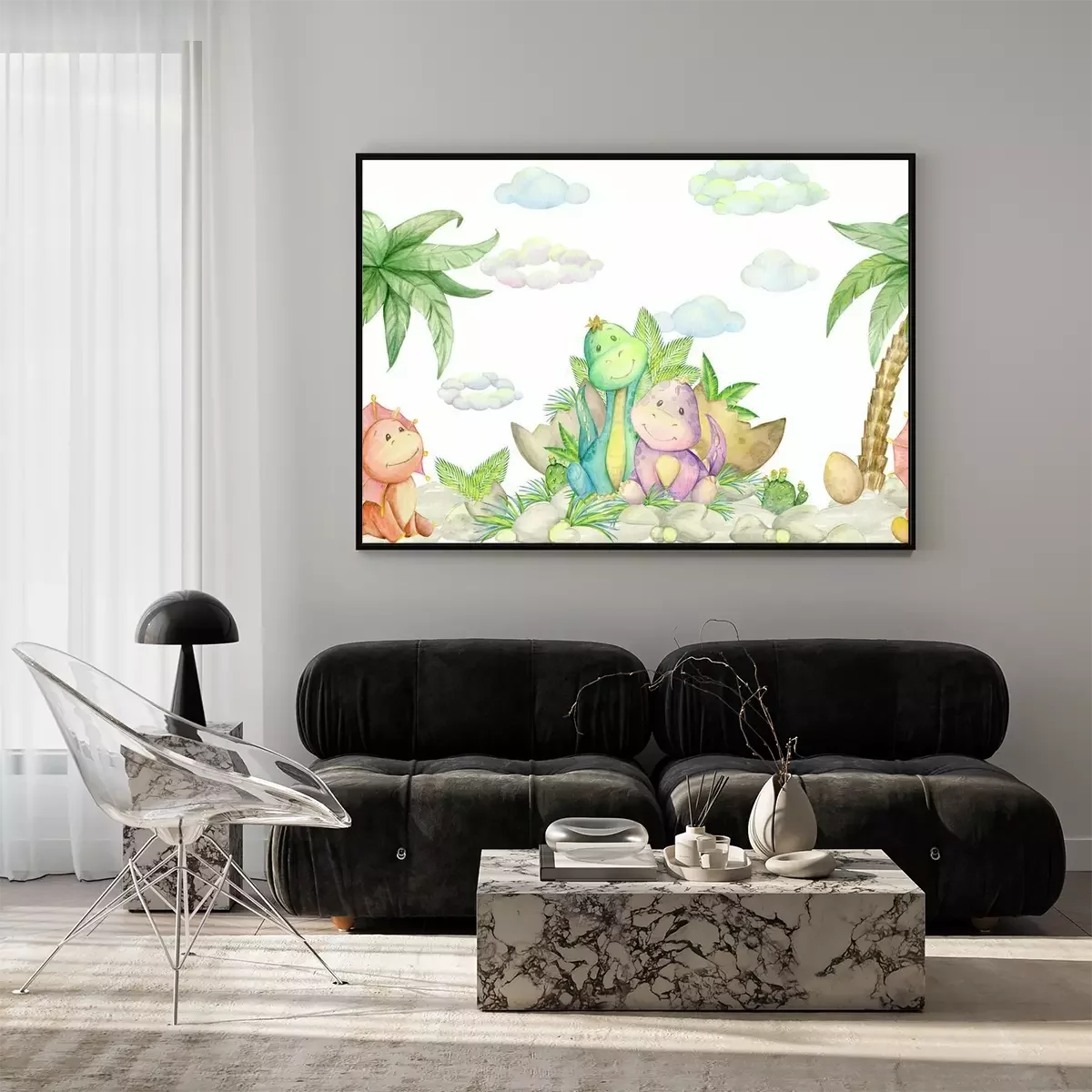 Poster: Glückliche Dinosaurier und exotische Palmen