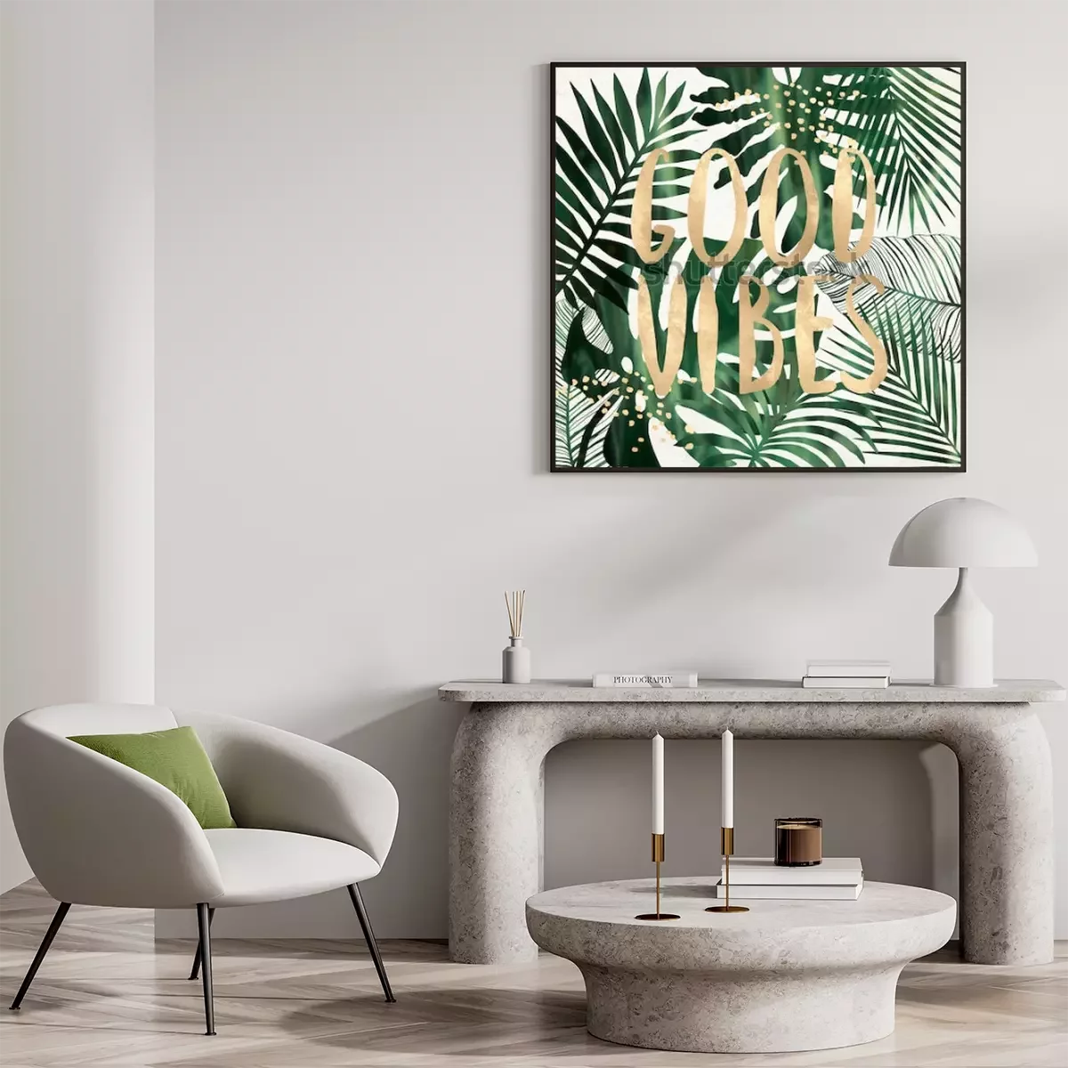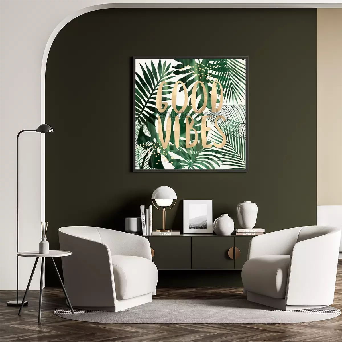 Poster: Goldene Schrift auf einem Hintergrund aus Pflanzen