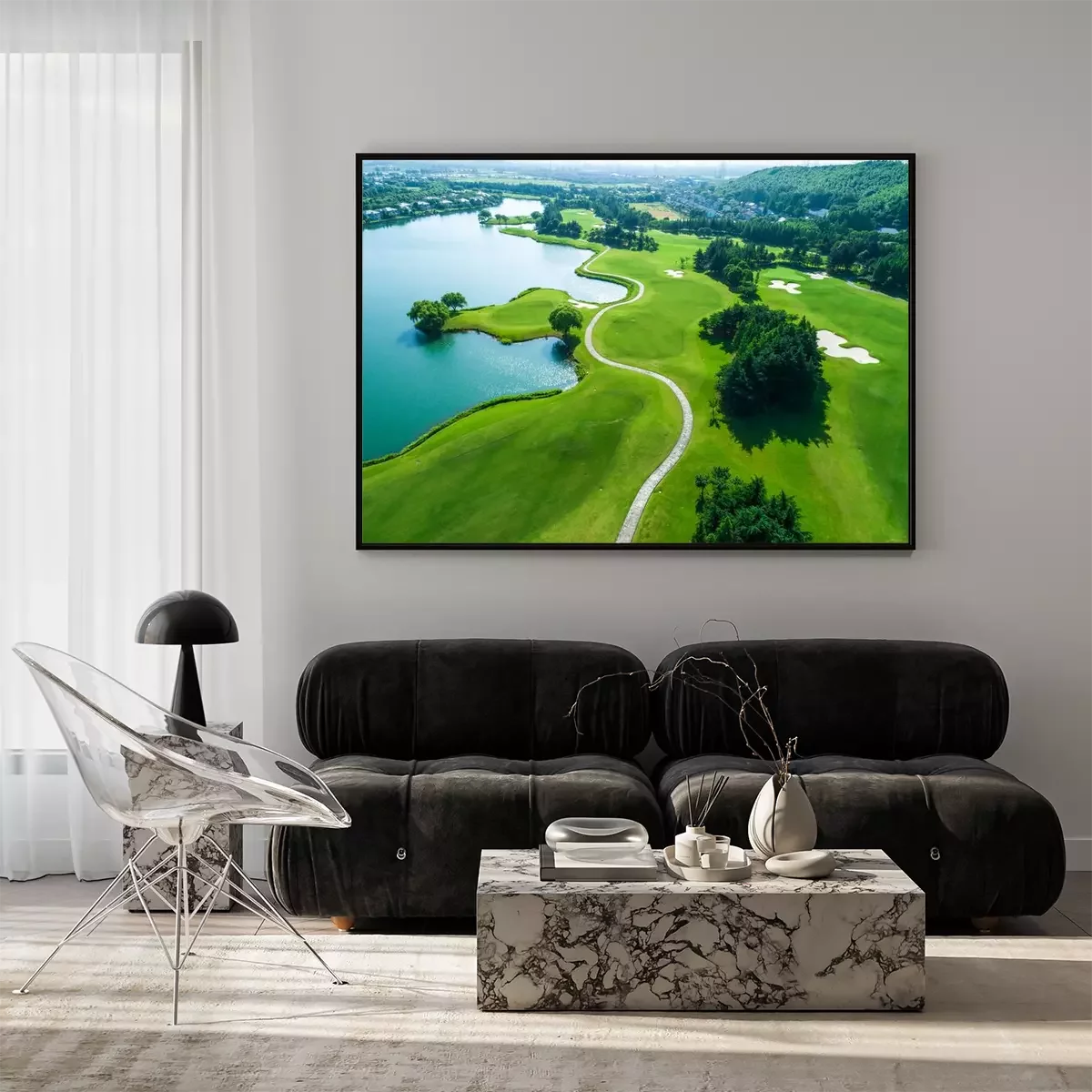Poster: Golf und das Spielfeld aus der Vogelperspektive