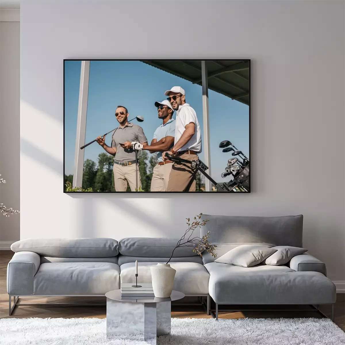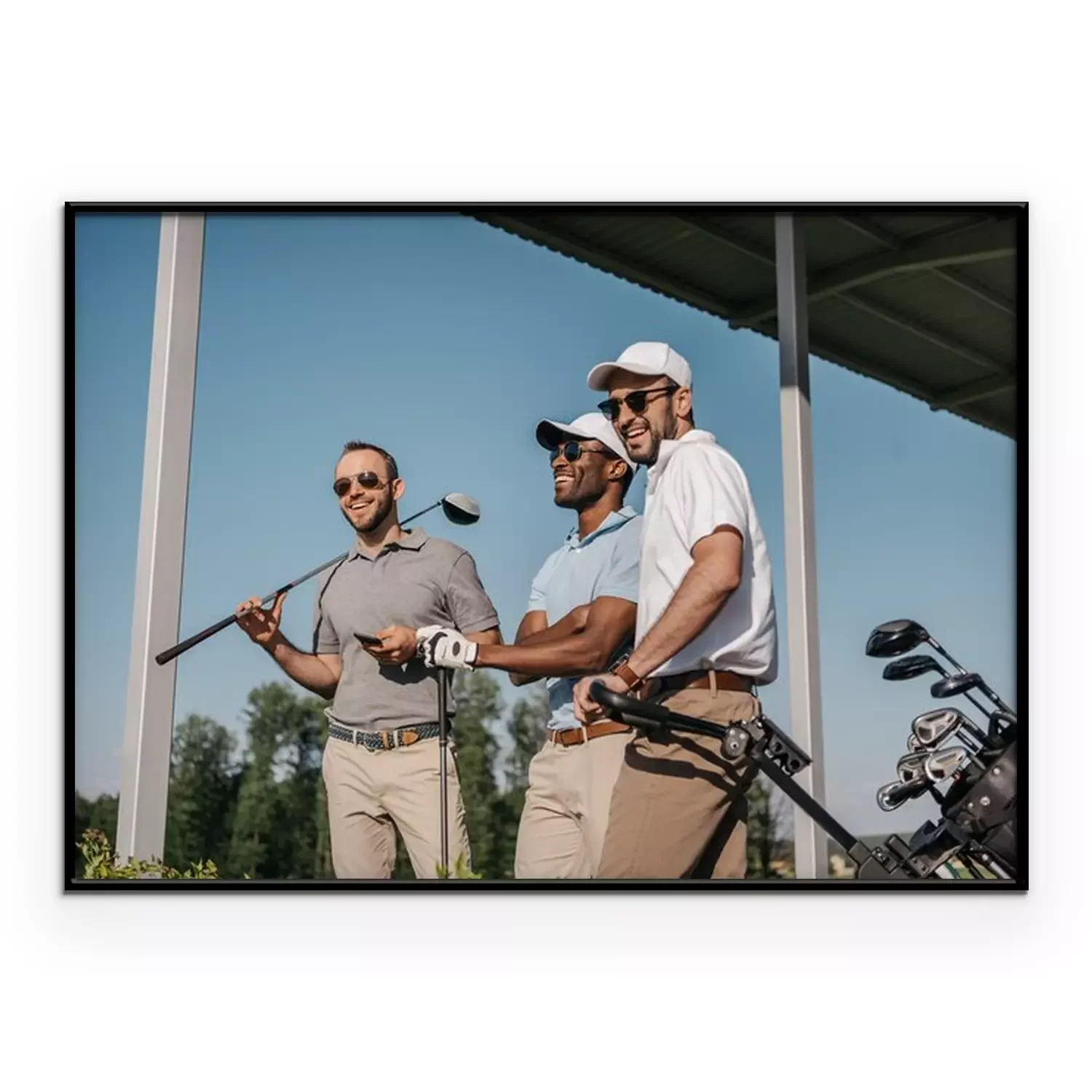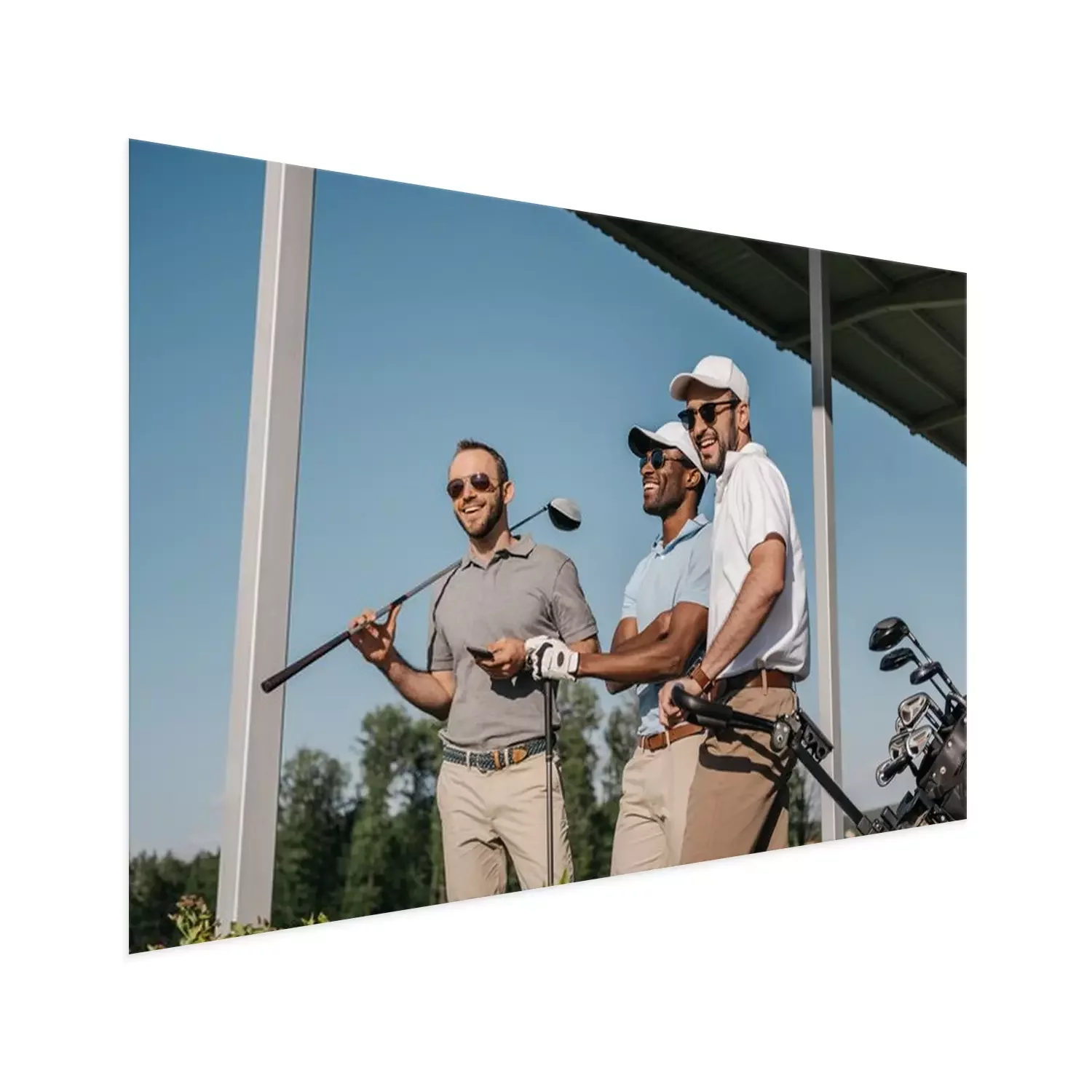 Poster: Golfschläger und drei Spieler