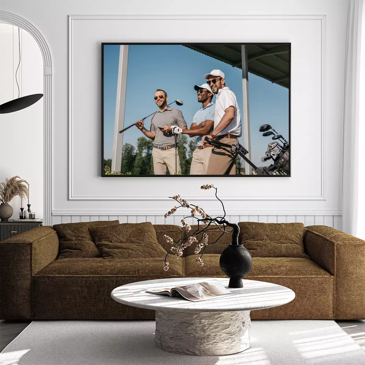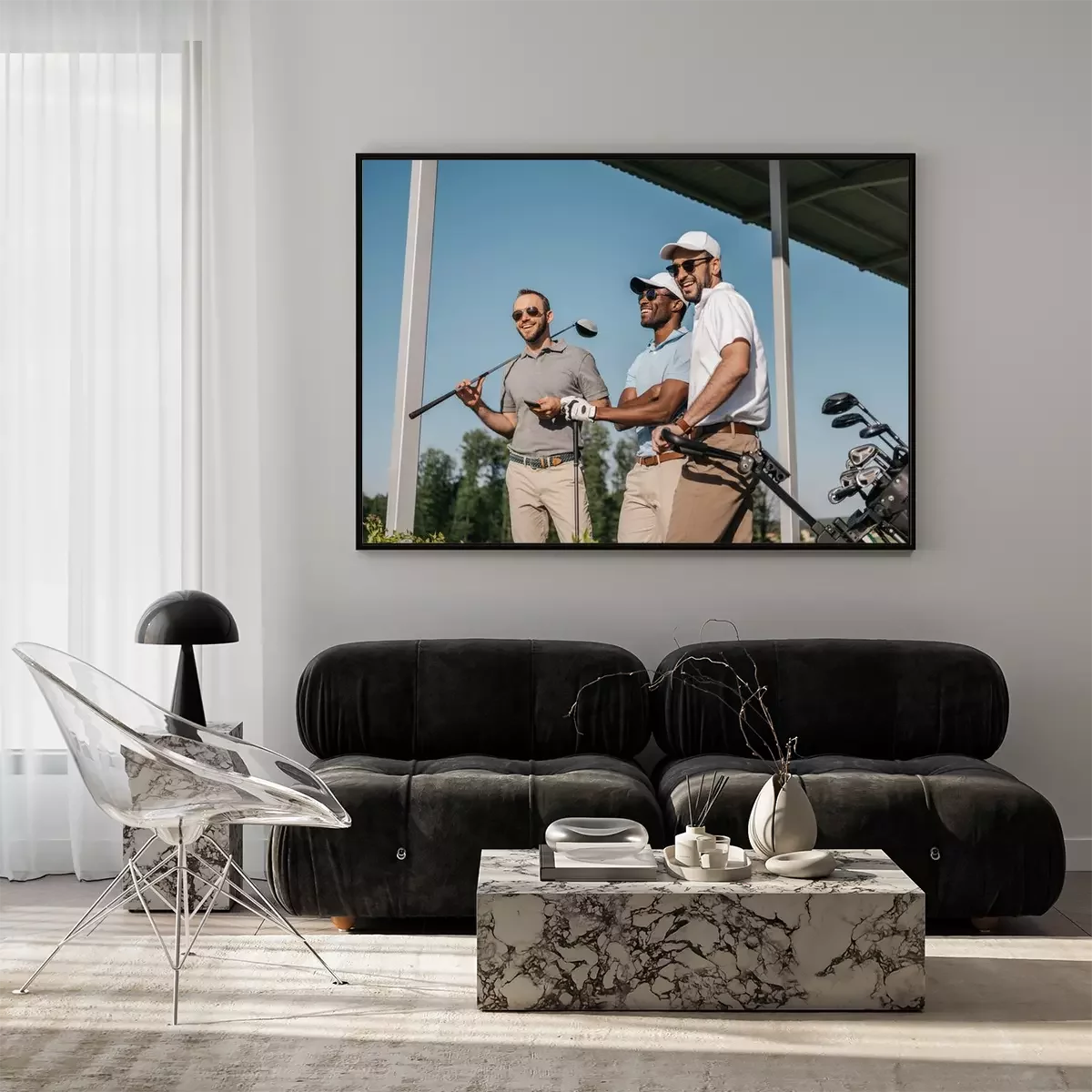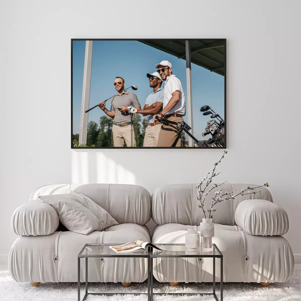 Poster: Golfschläger und drei Spieler