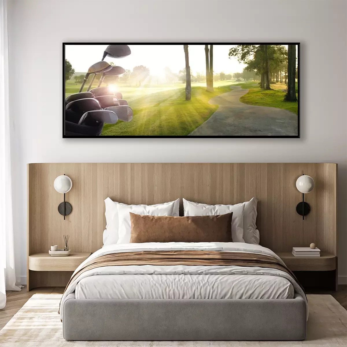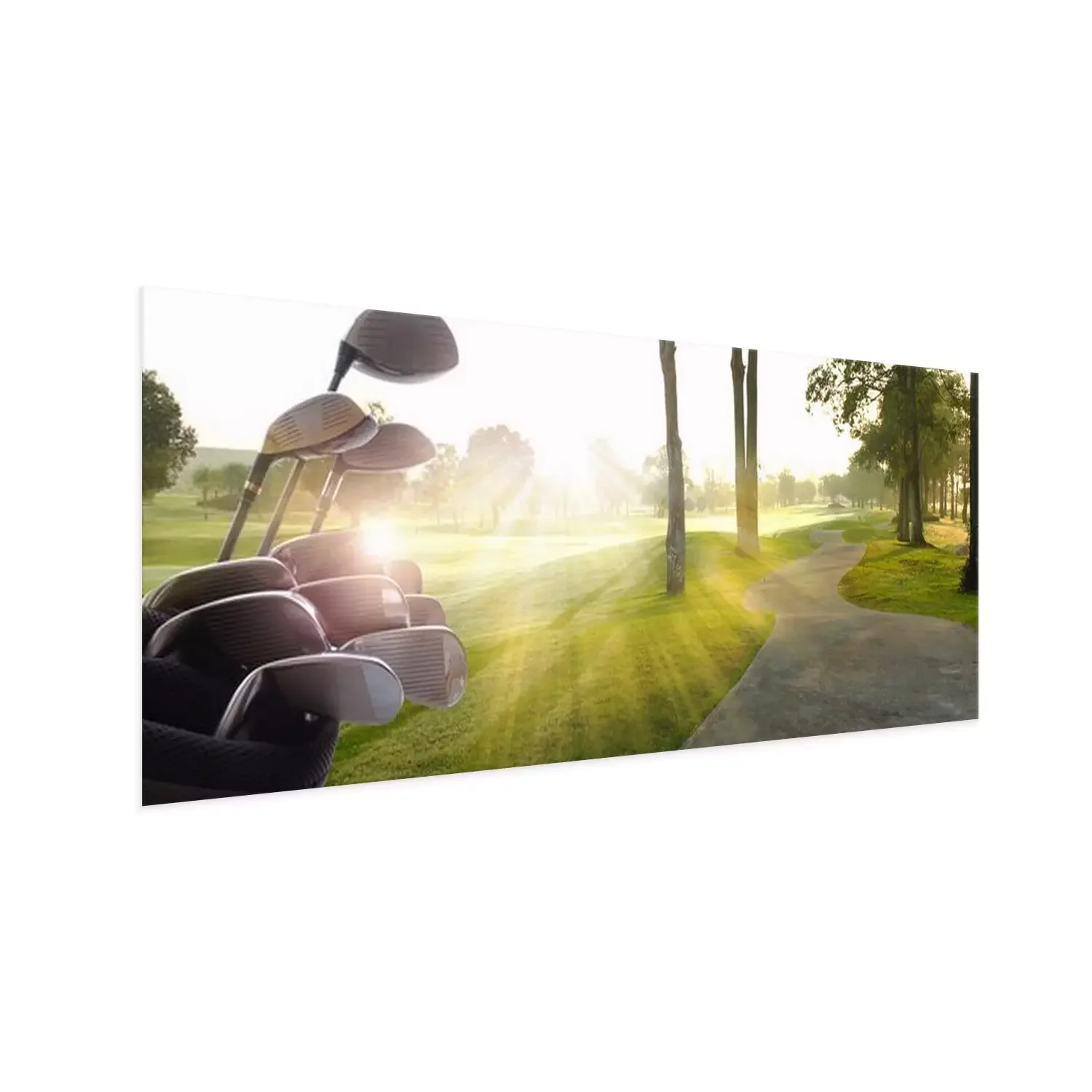 Poster: Golfschlägertasche bei Sonnenuntergang
