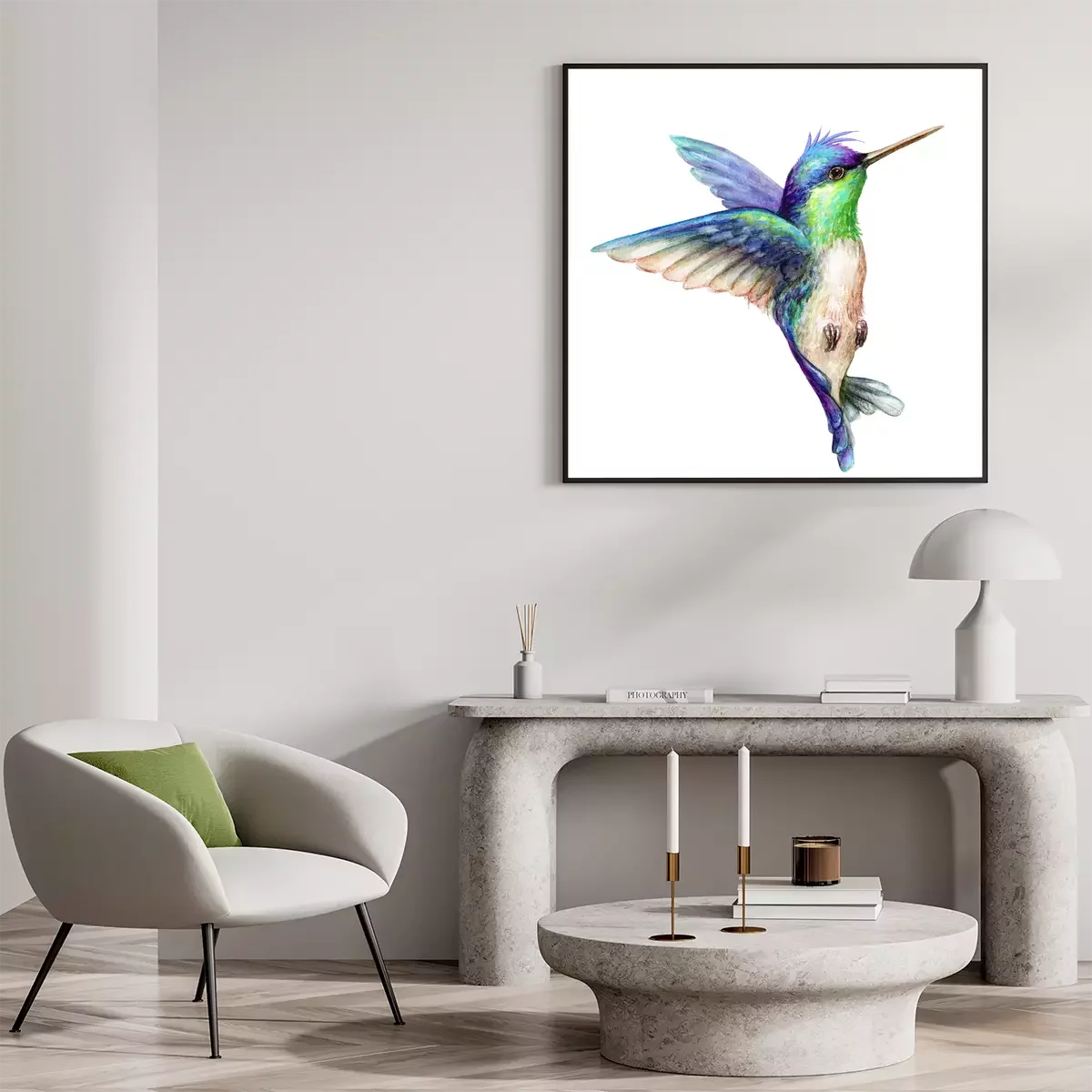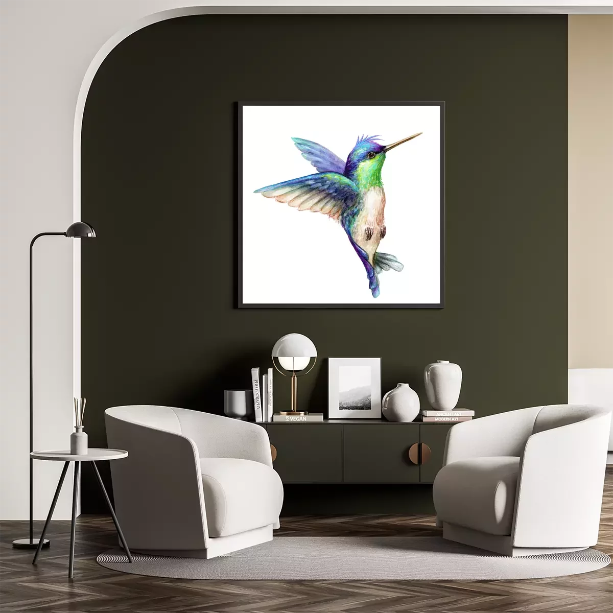 Poster Grafik eines farbenprächtigen Vogels im Flug
