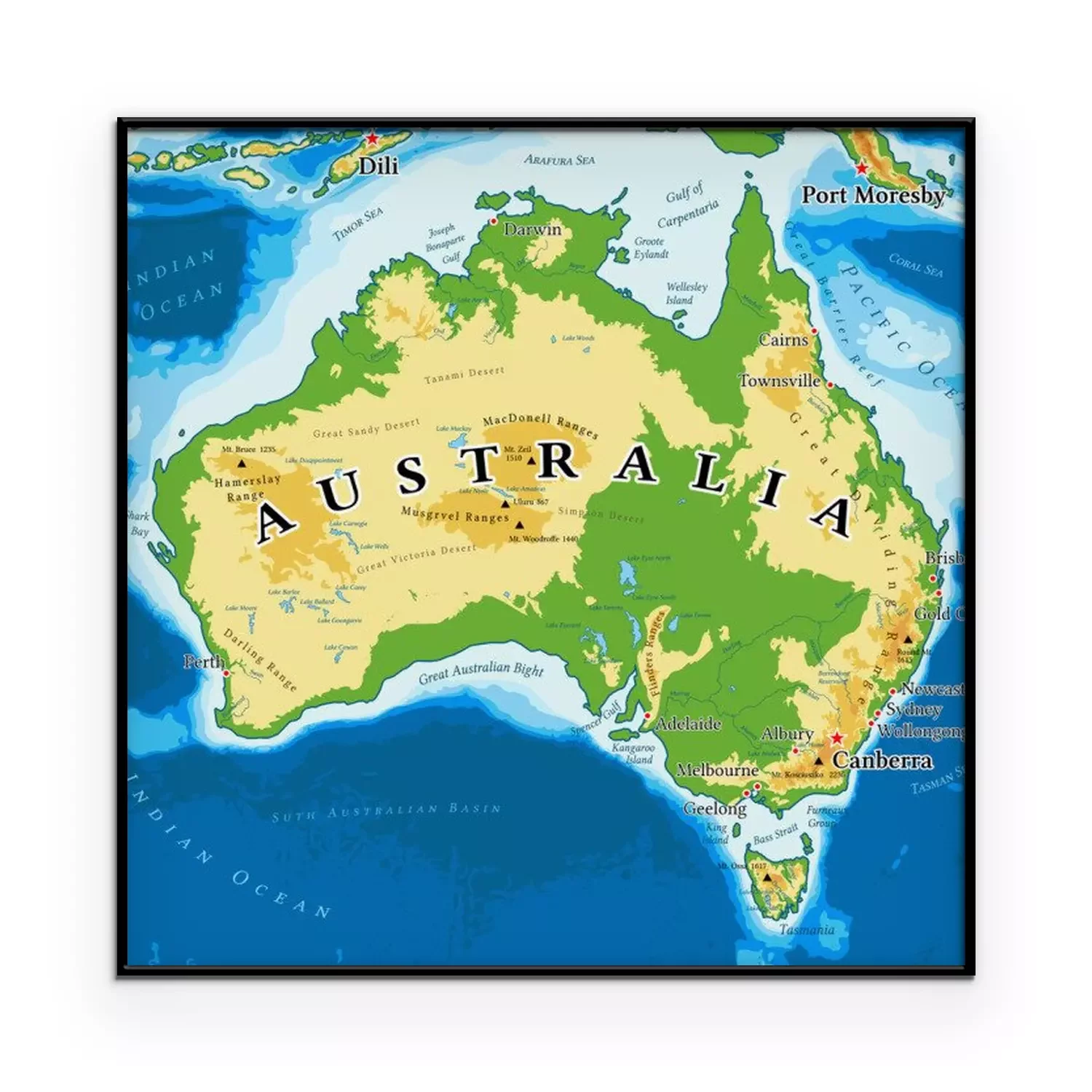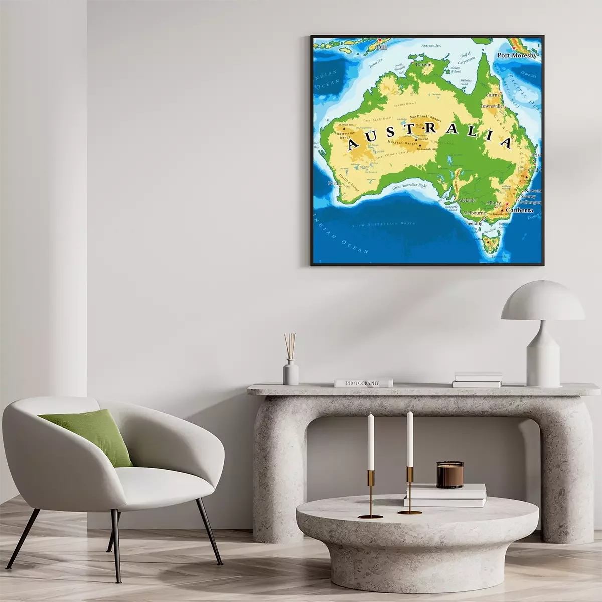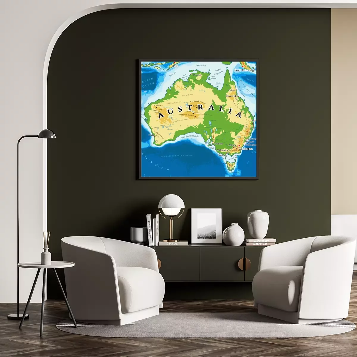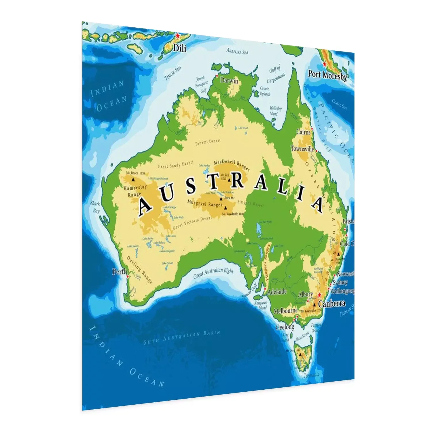 Poster Grafik Kontinente mit geografischer Übersichtskarte von Australien