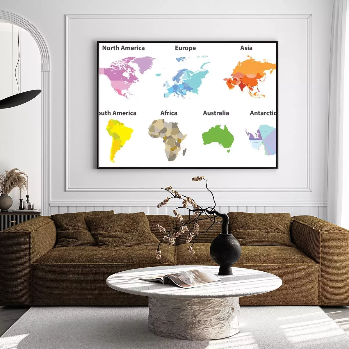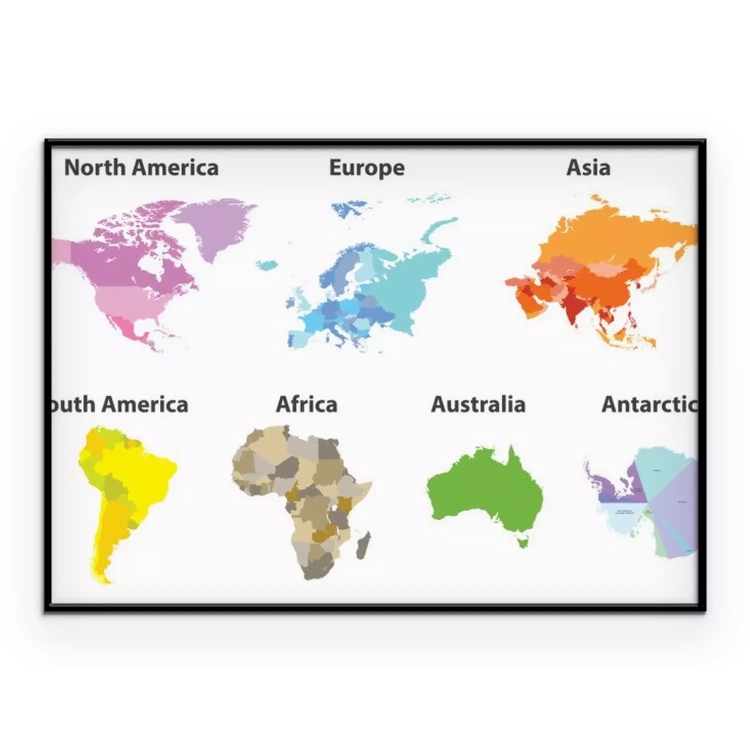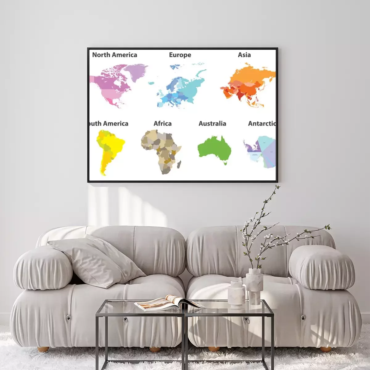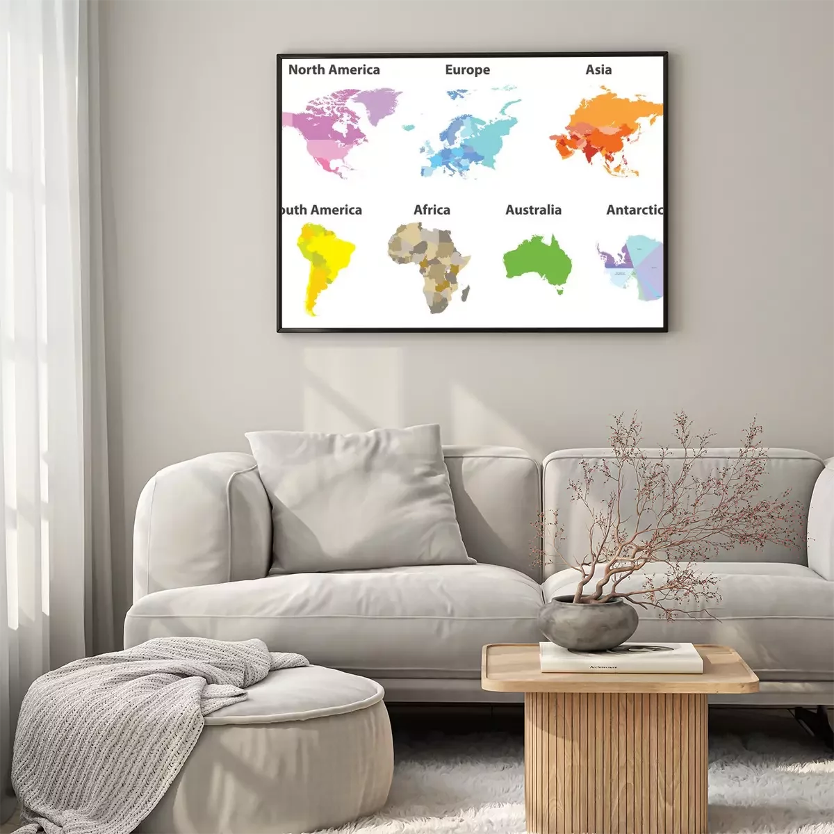 Poster Grafik Kontinente mit politischen Unterteilungen