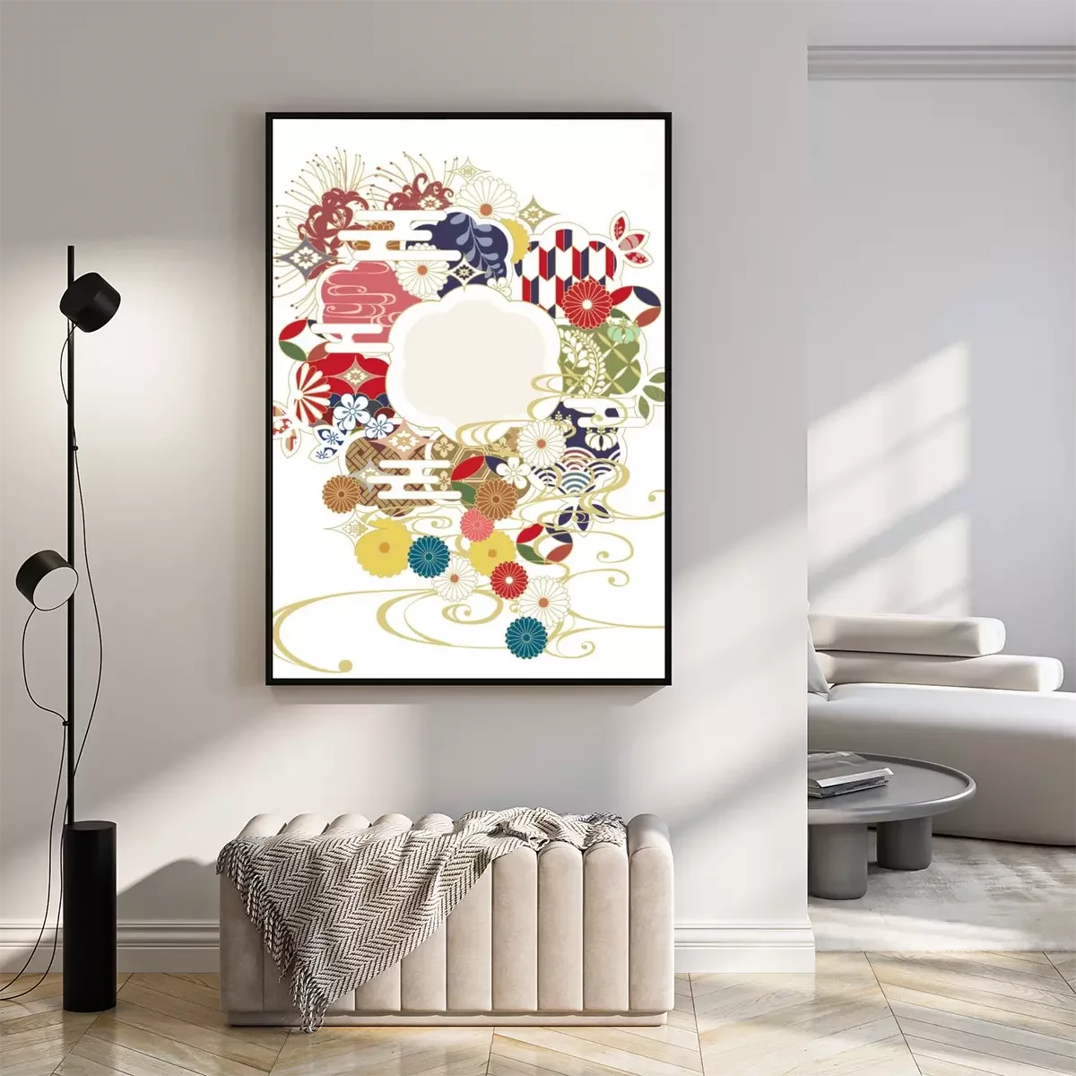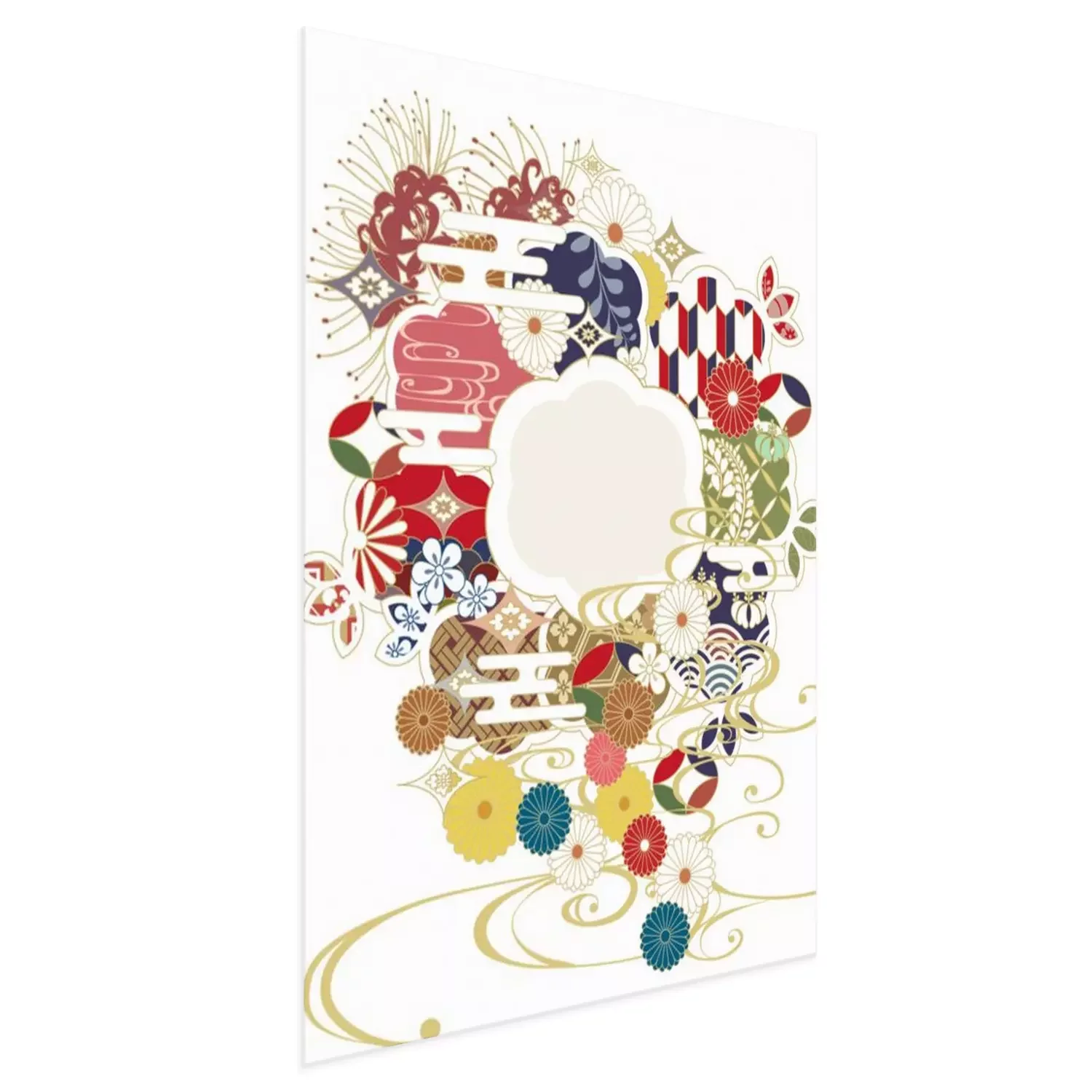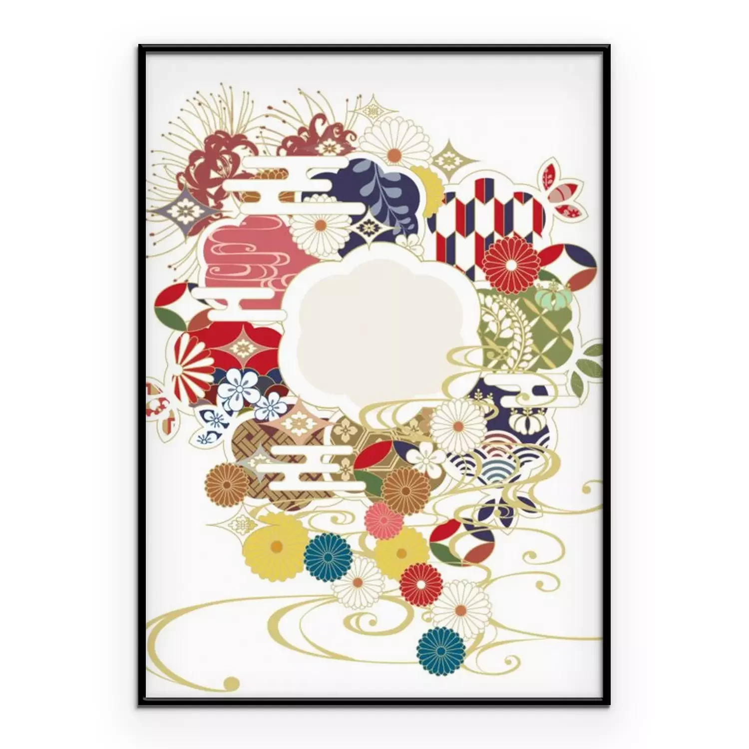 Poster: Grafik mit bunten Blumen in verschiedenen Größen