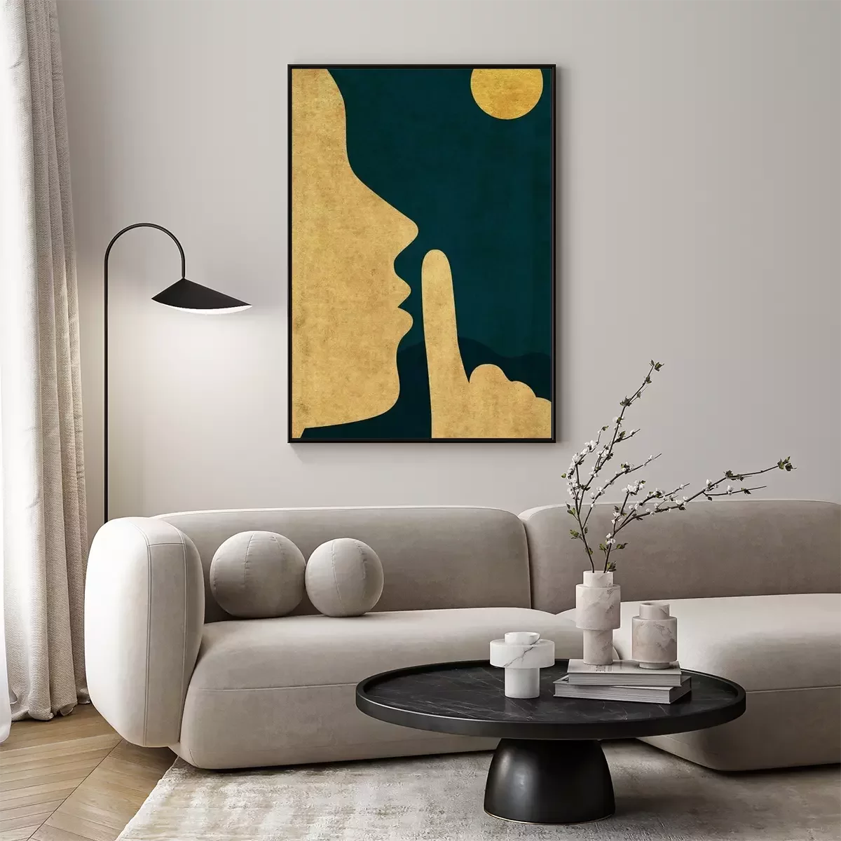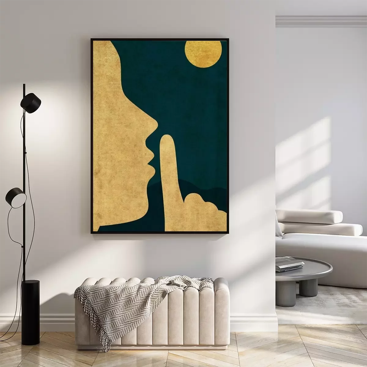 Poster Grafik mit einem Mond und einem im Profil dargestellten Gesicht