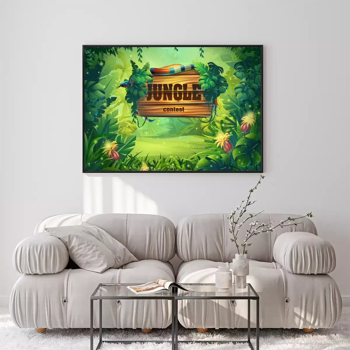 Poster: Grafik mit einer Schlange und einem grünen Dschungel