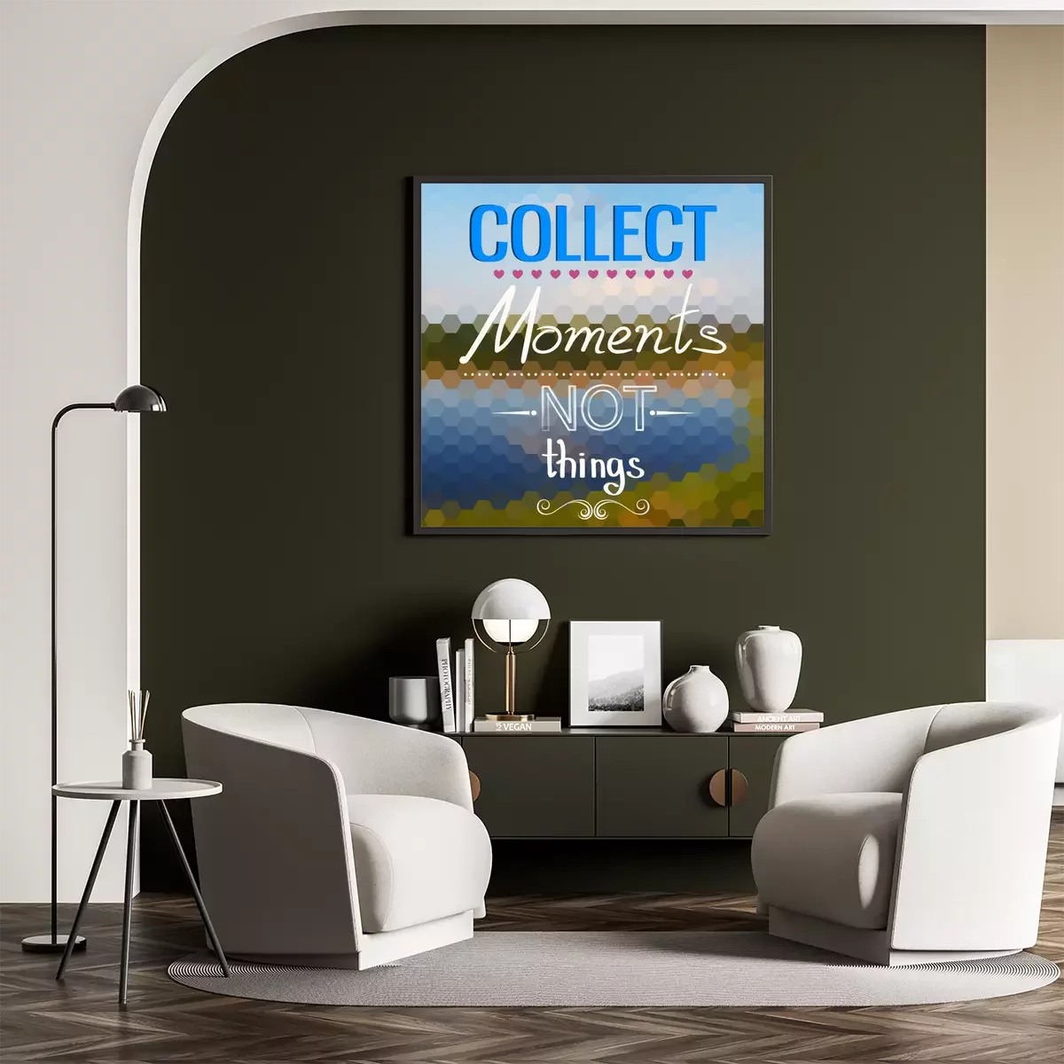 Poster: Grafische Typografie auf geometrischem Hintergrund