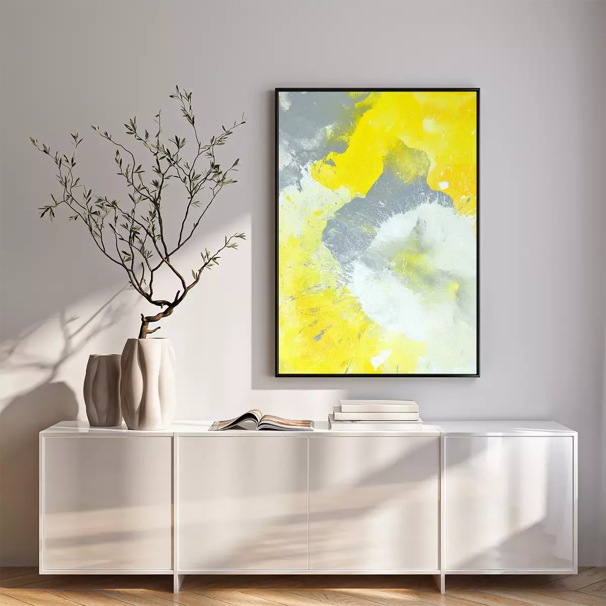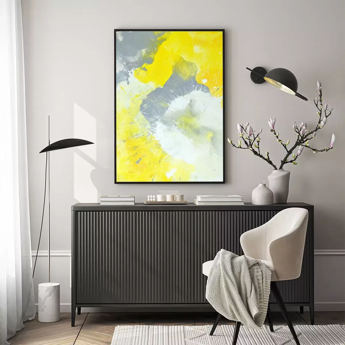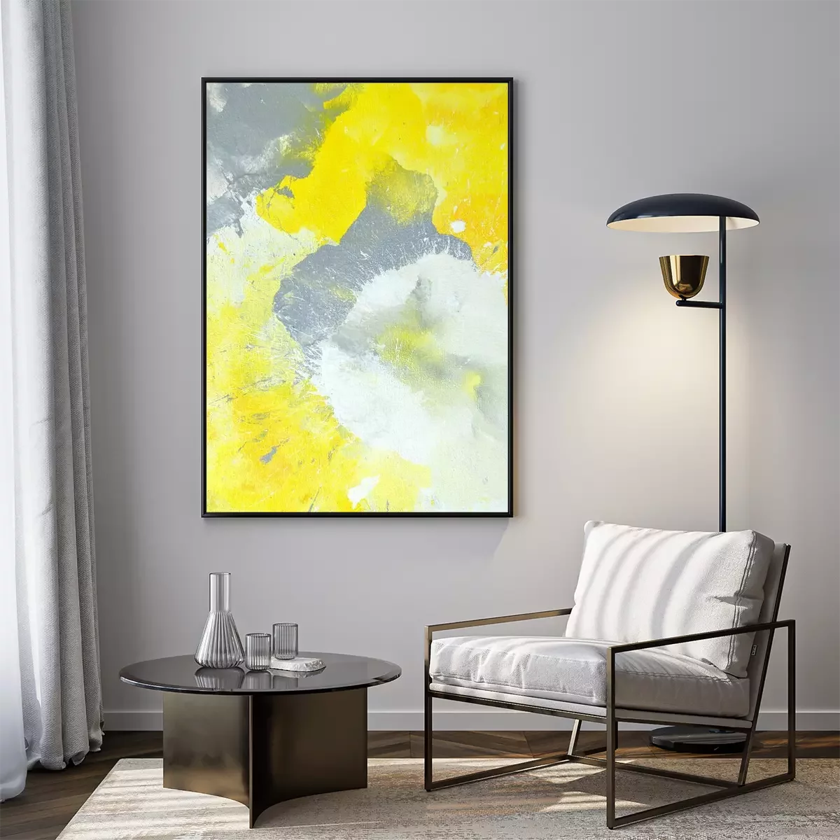 Poster Graue und gelbe abstrakte Kunst-Malerei