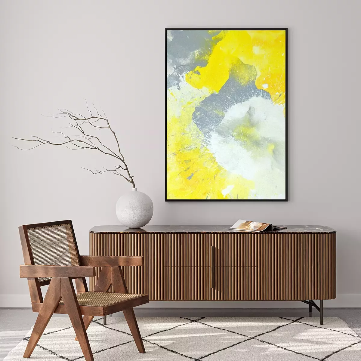 Poster: Graue und gelbe abstrakte Kunst-Malerei