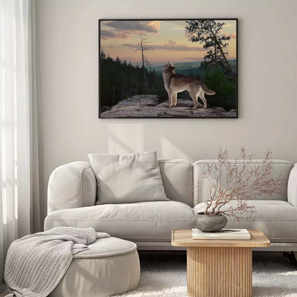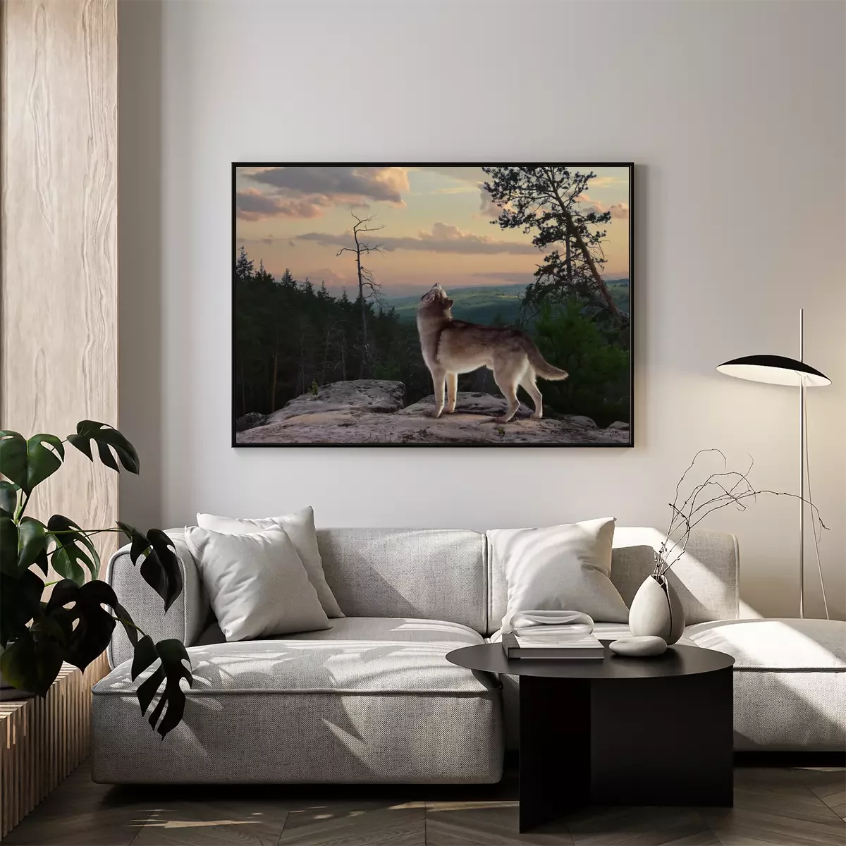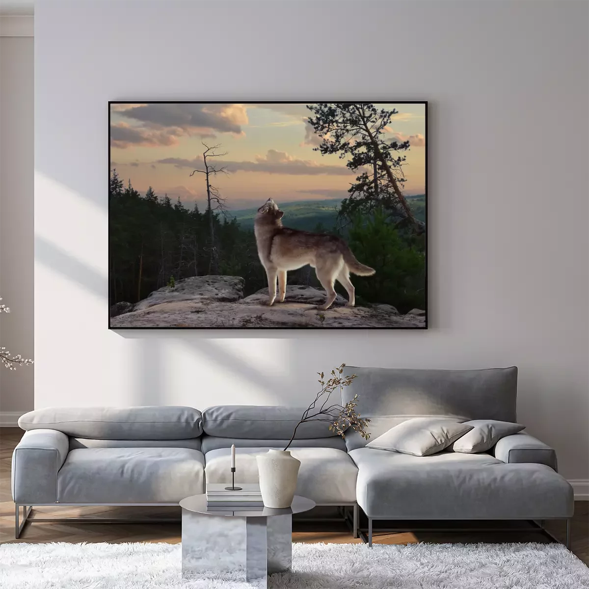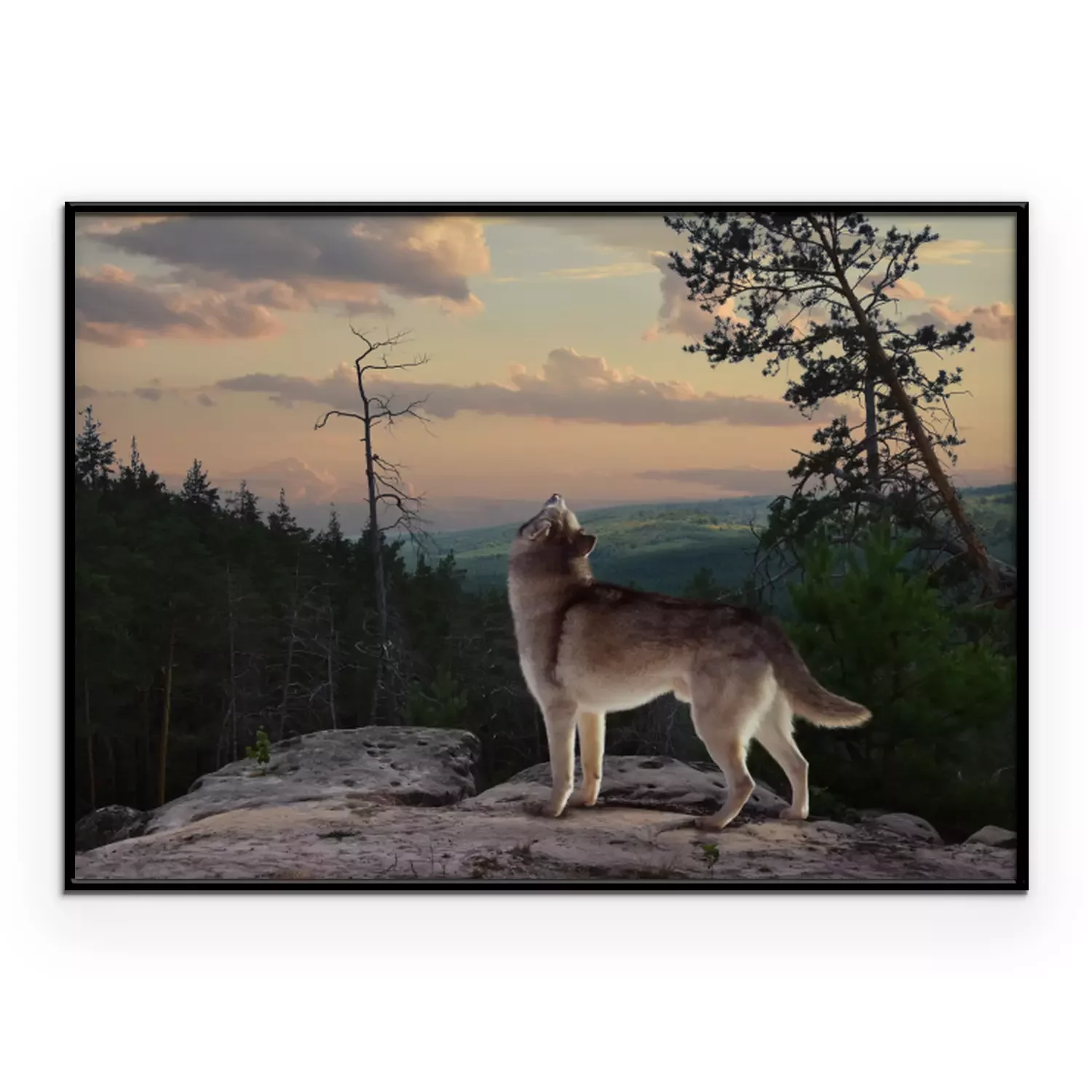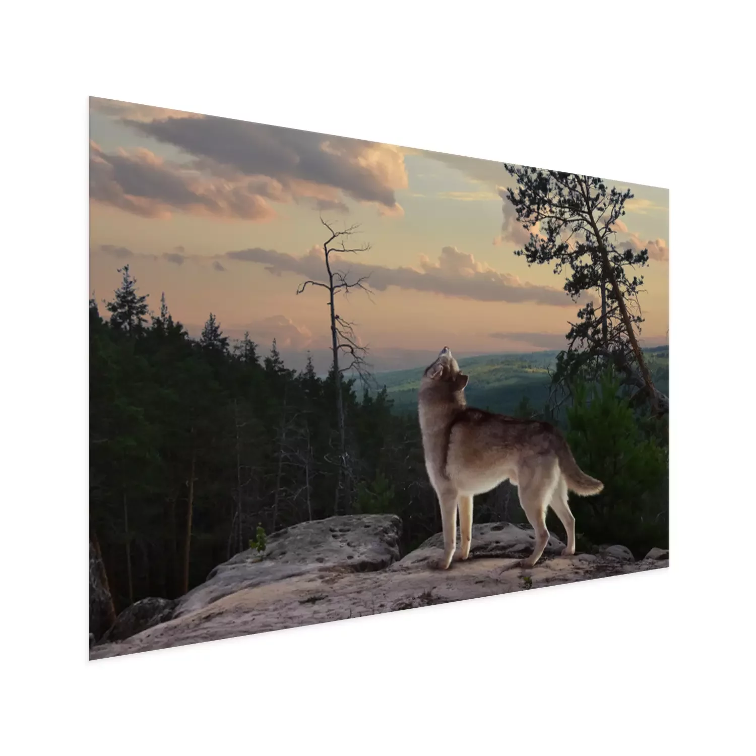 Poster: Grauer Wolf in der Dämmerung
