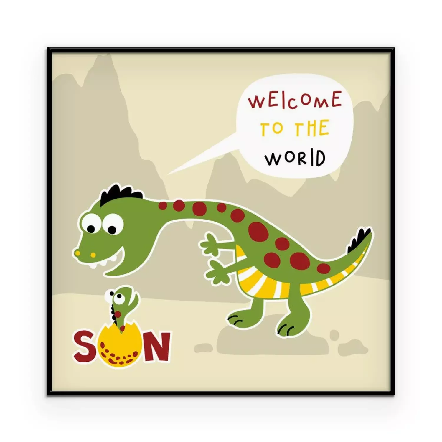 Poster Großer Dinosaurier, der ein Dinosaurierbaby in der Welt willkommen heißt
