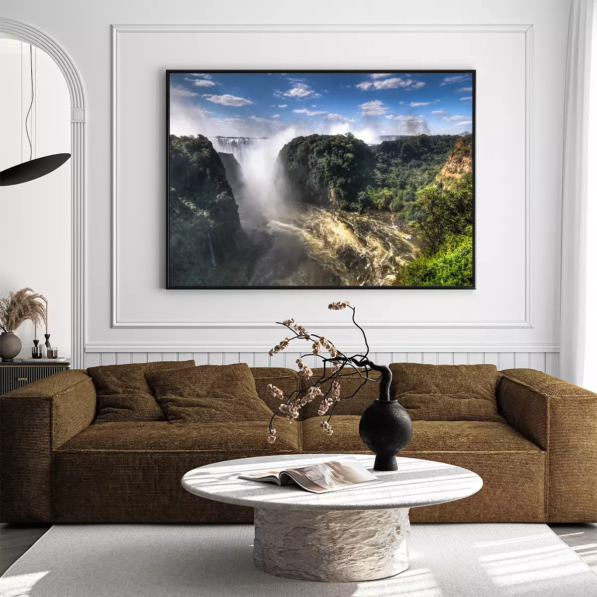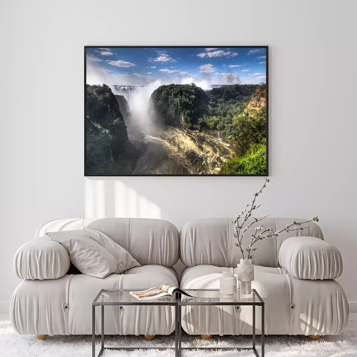 Poster: Großer Wasserfall aus Vogelperspektive gesehen