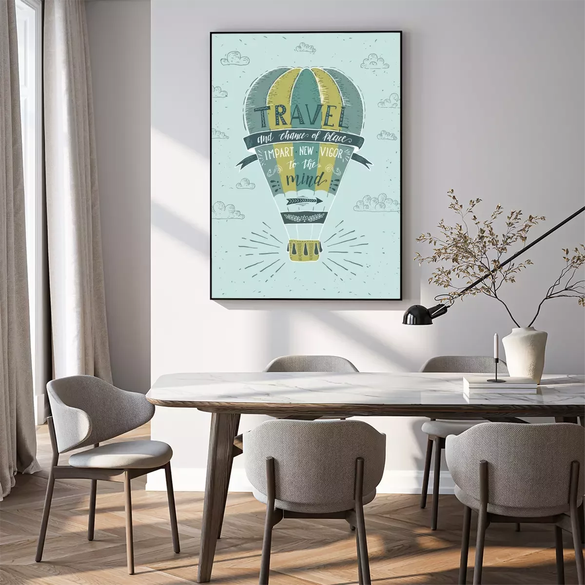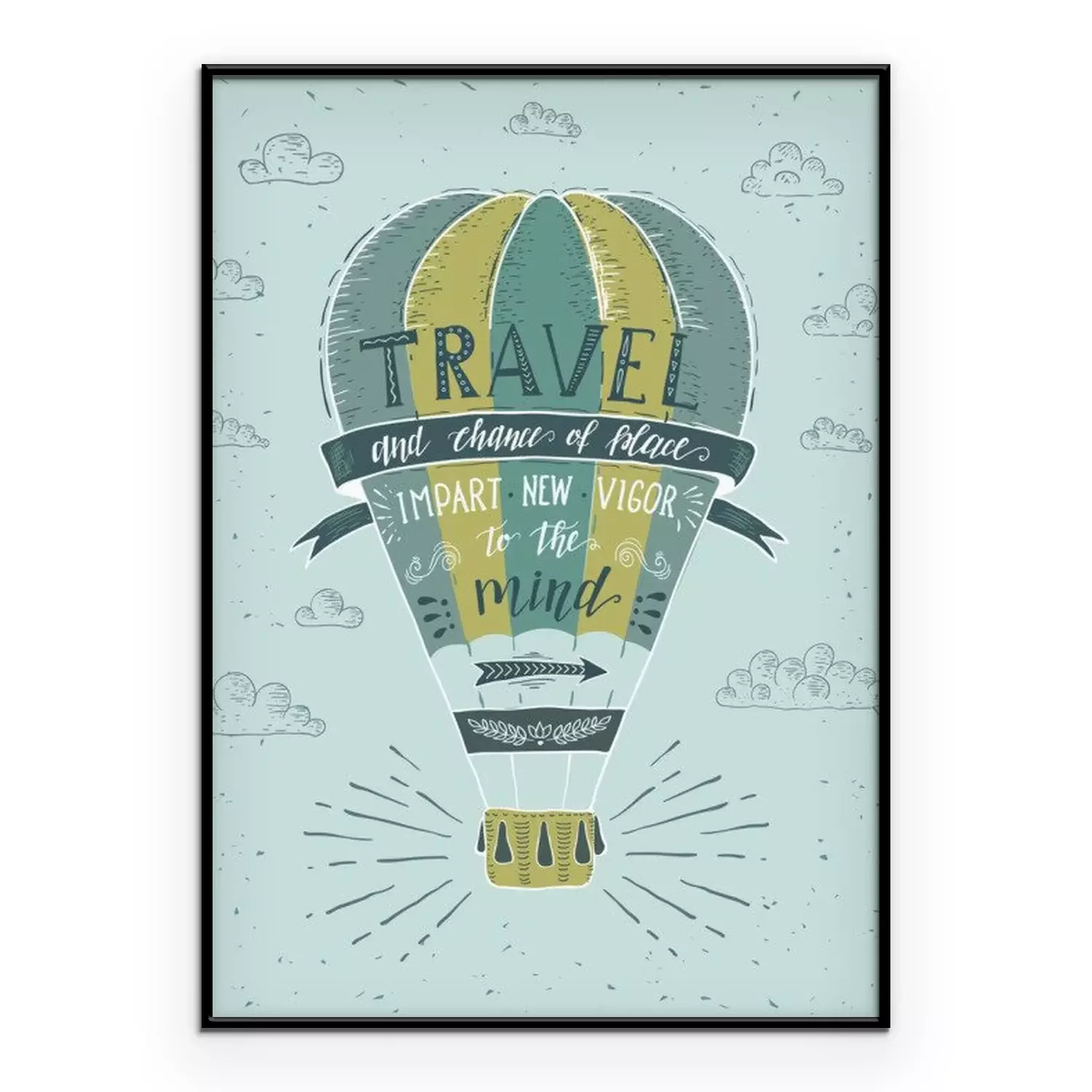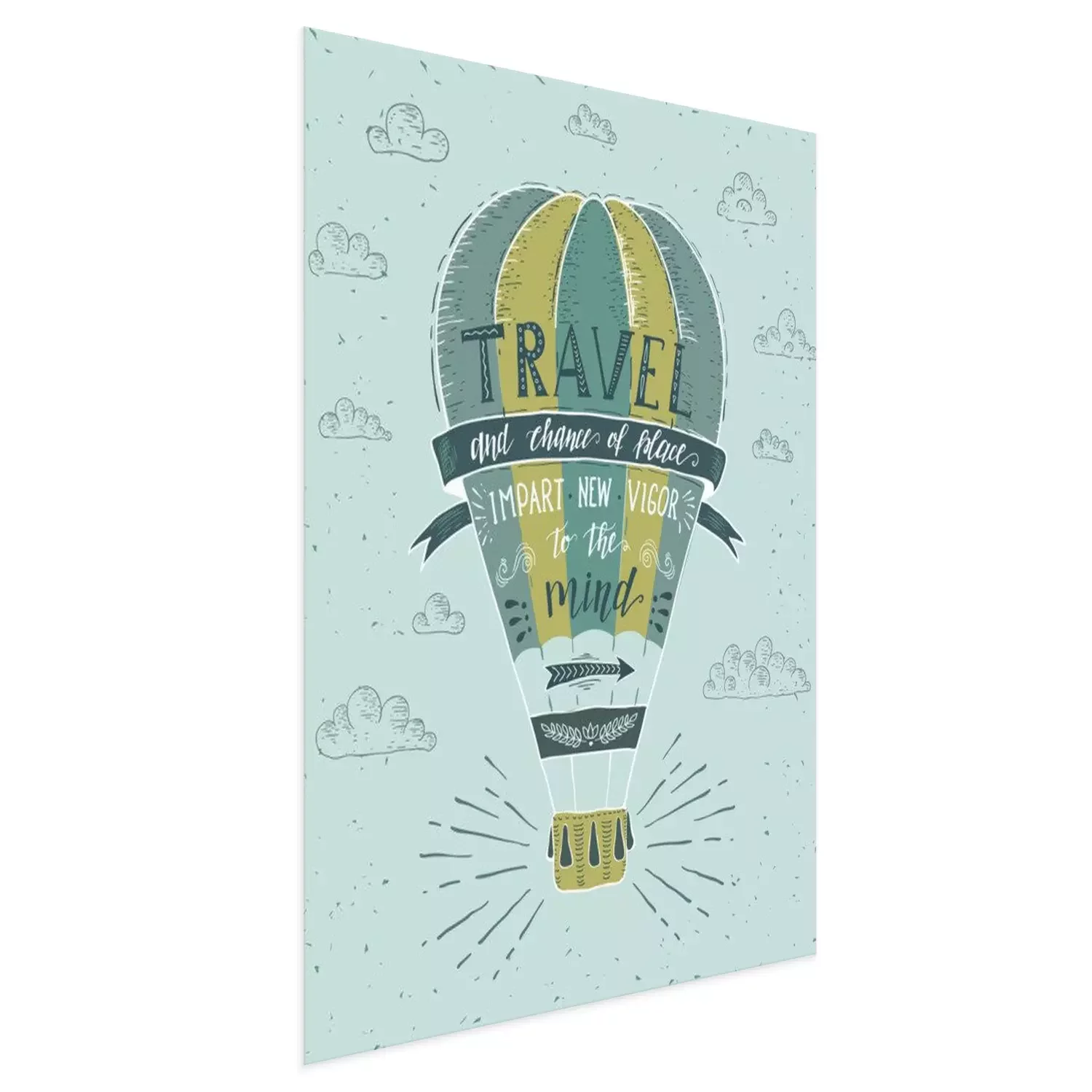 Poster: Grün-gelber Ballon mit Reiseslogan