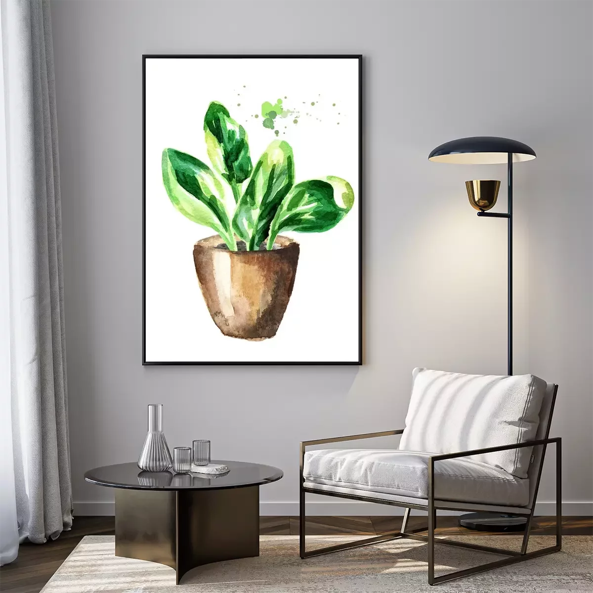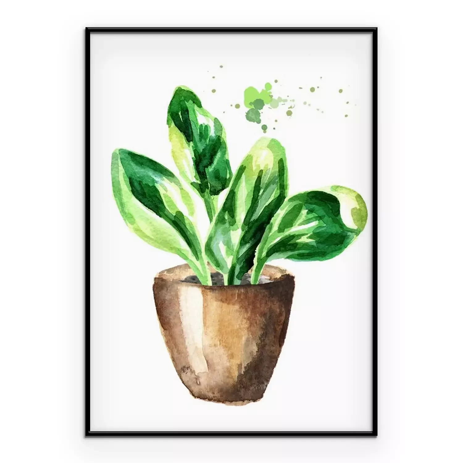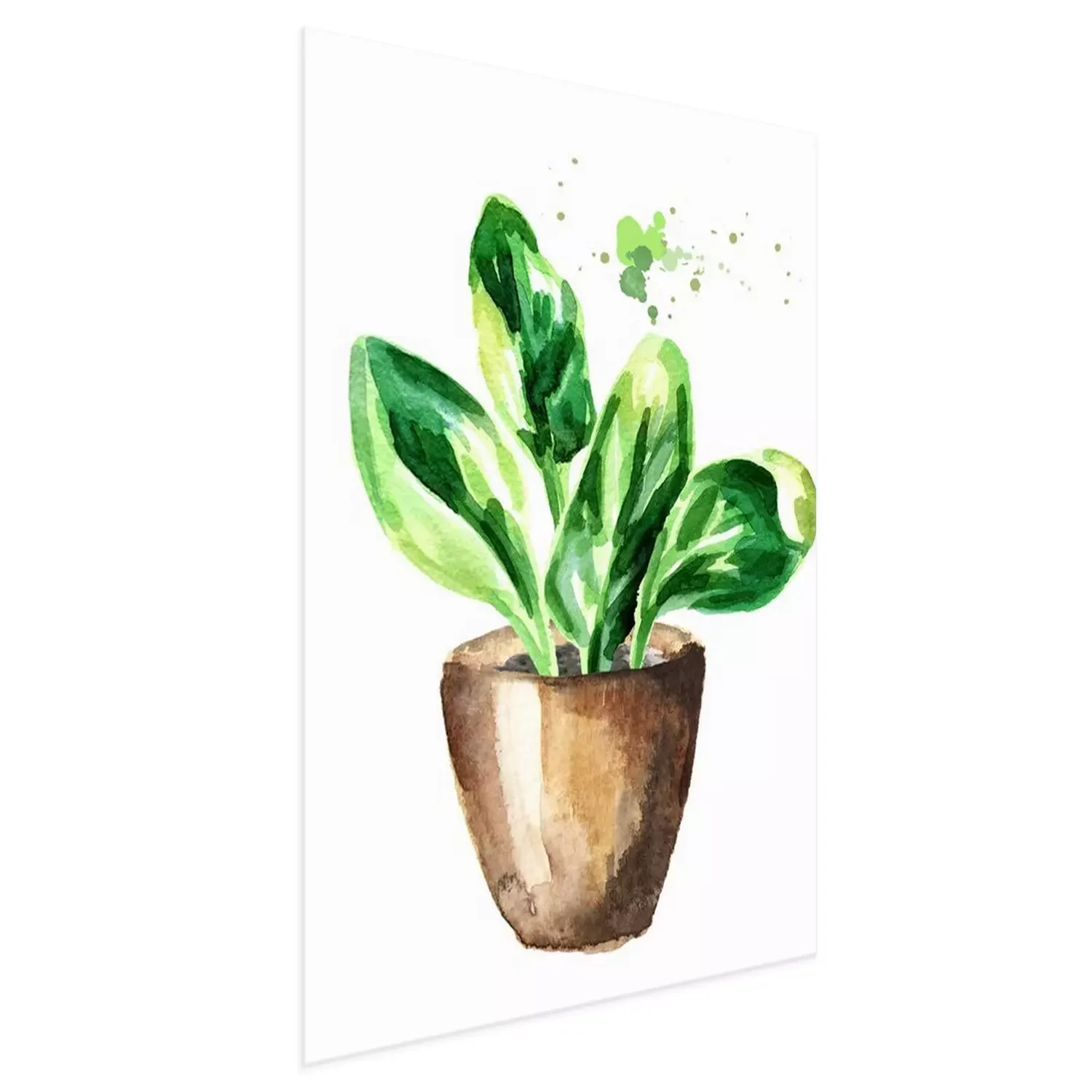 Poster: Grüne Aquarellblätter in einem braunen Topf