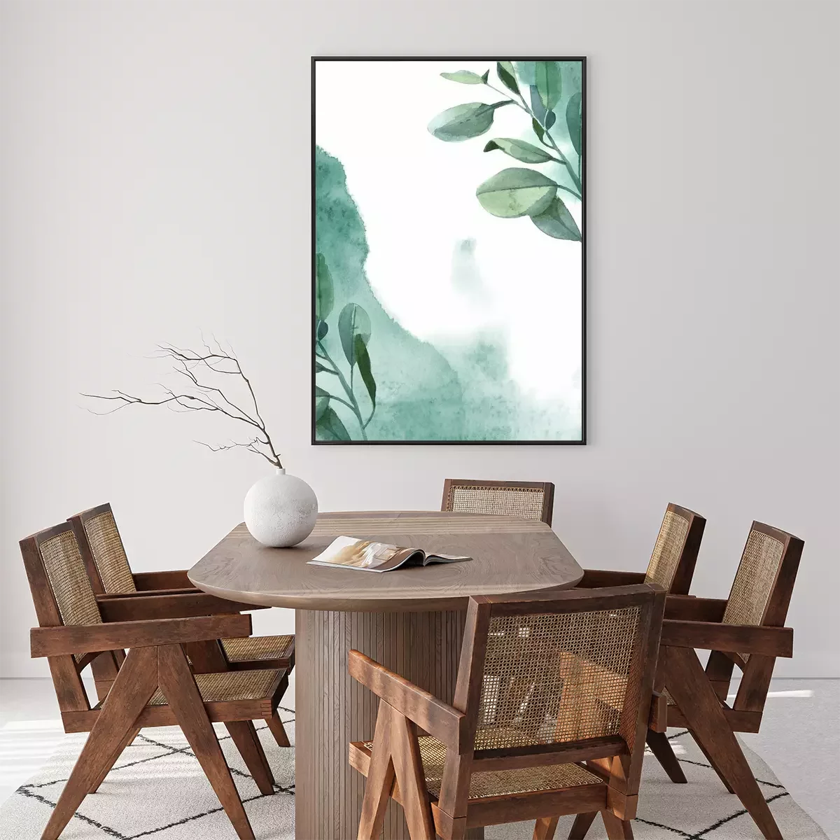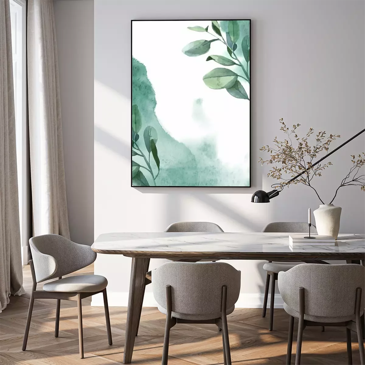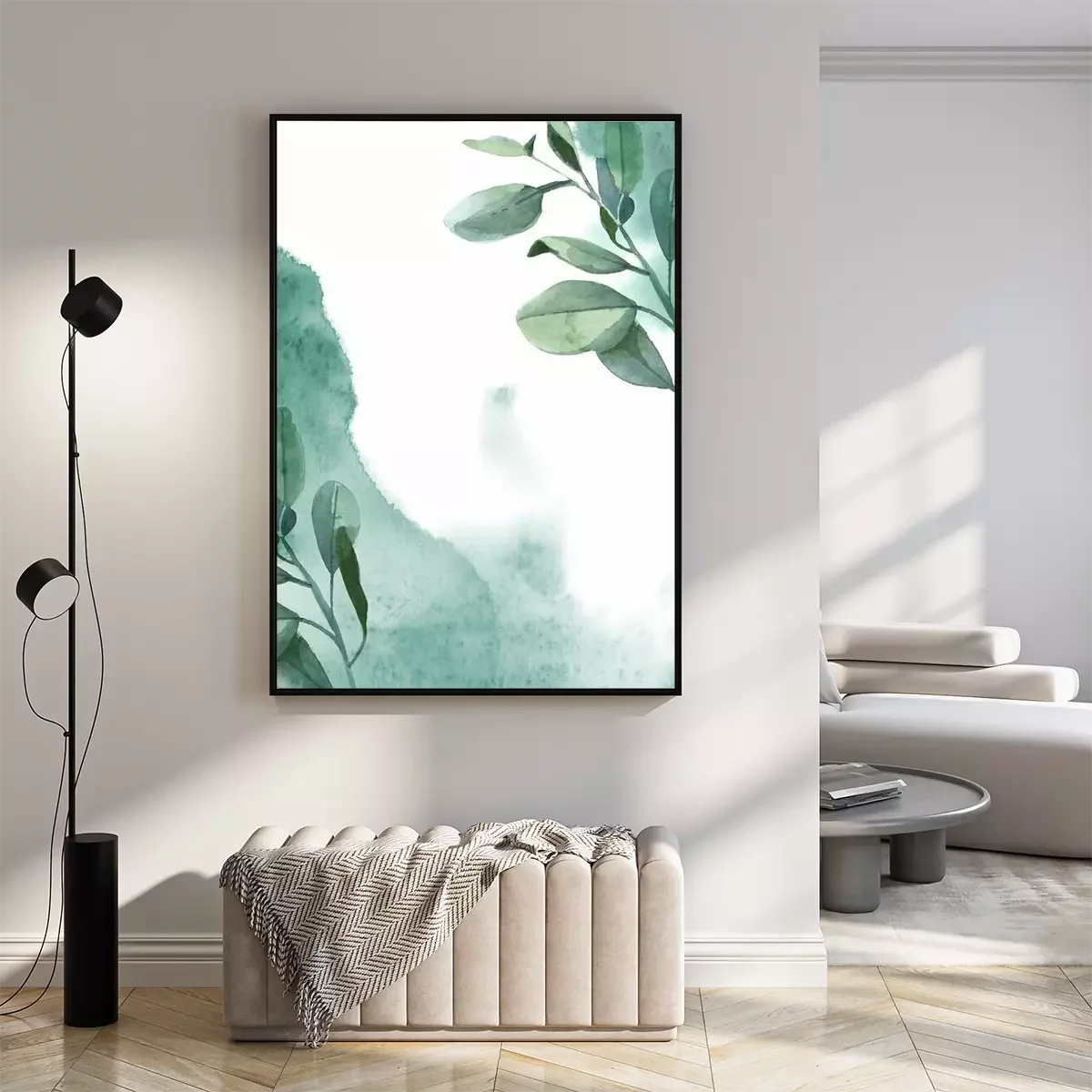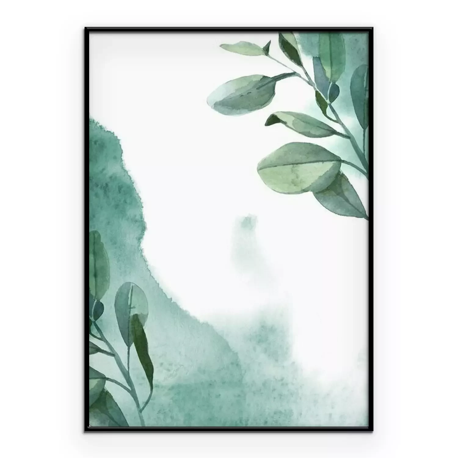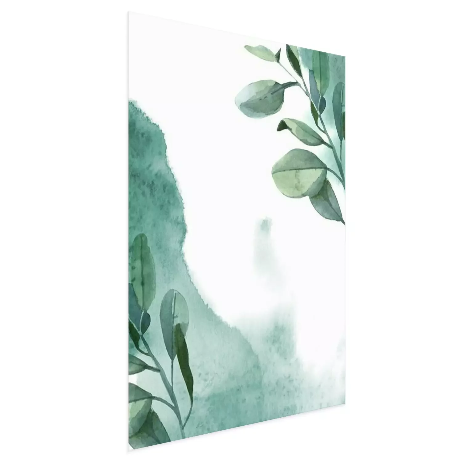 Poster: Grüne Eukalyptusblätter und Aquarell-Hintergrund