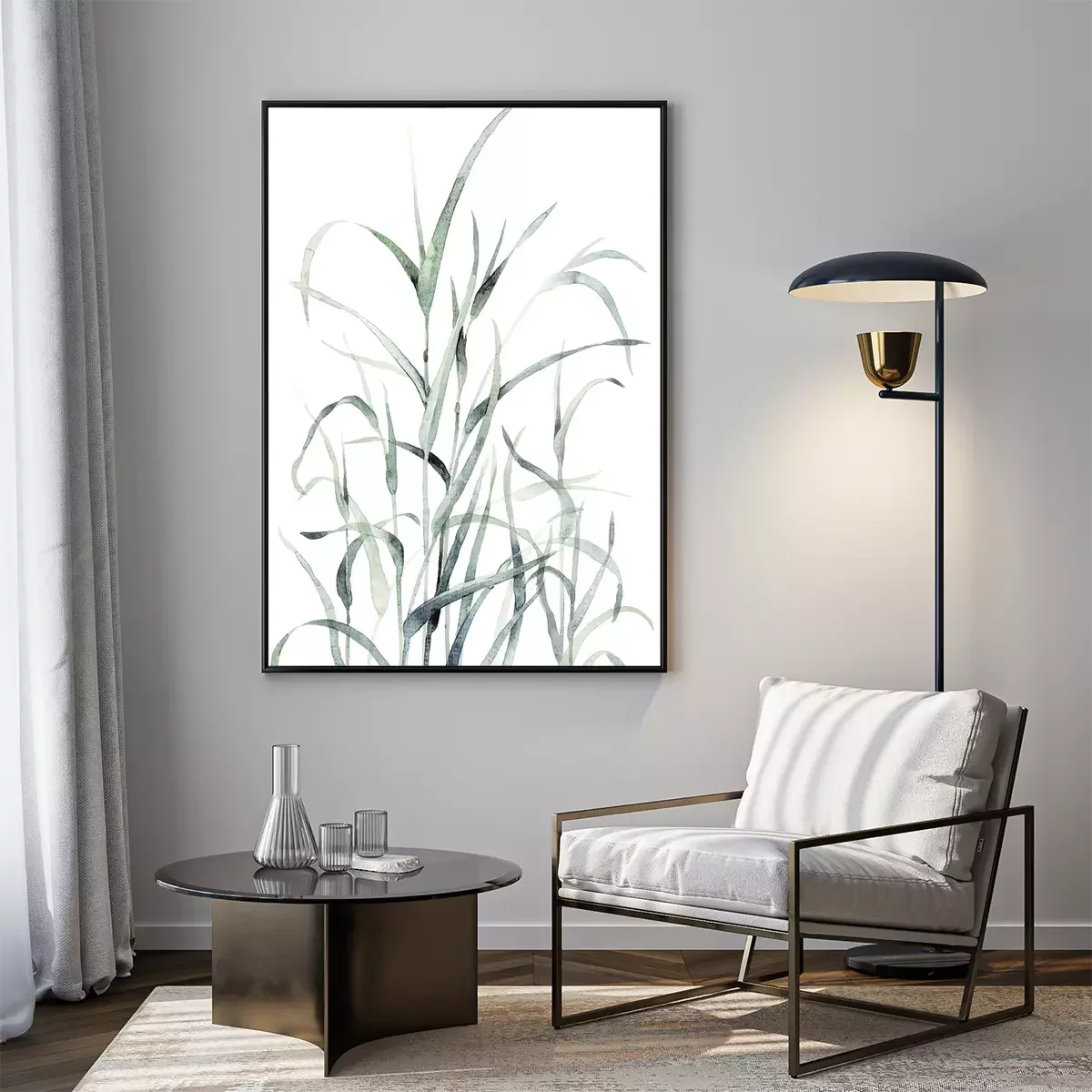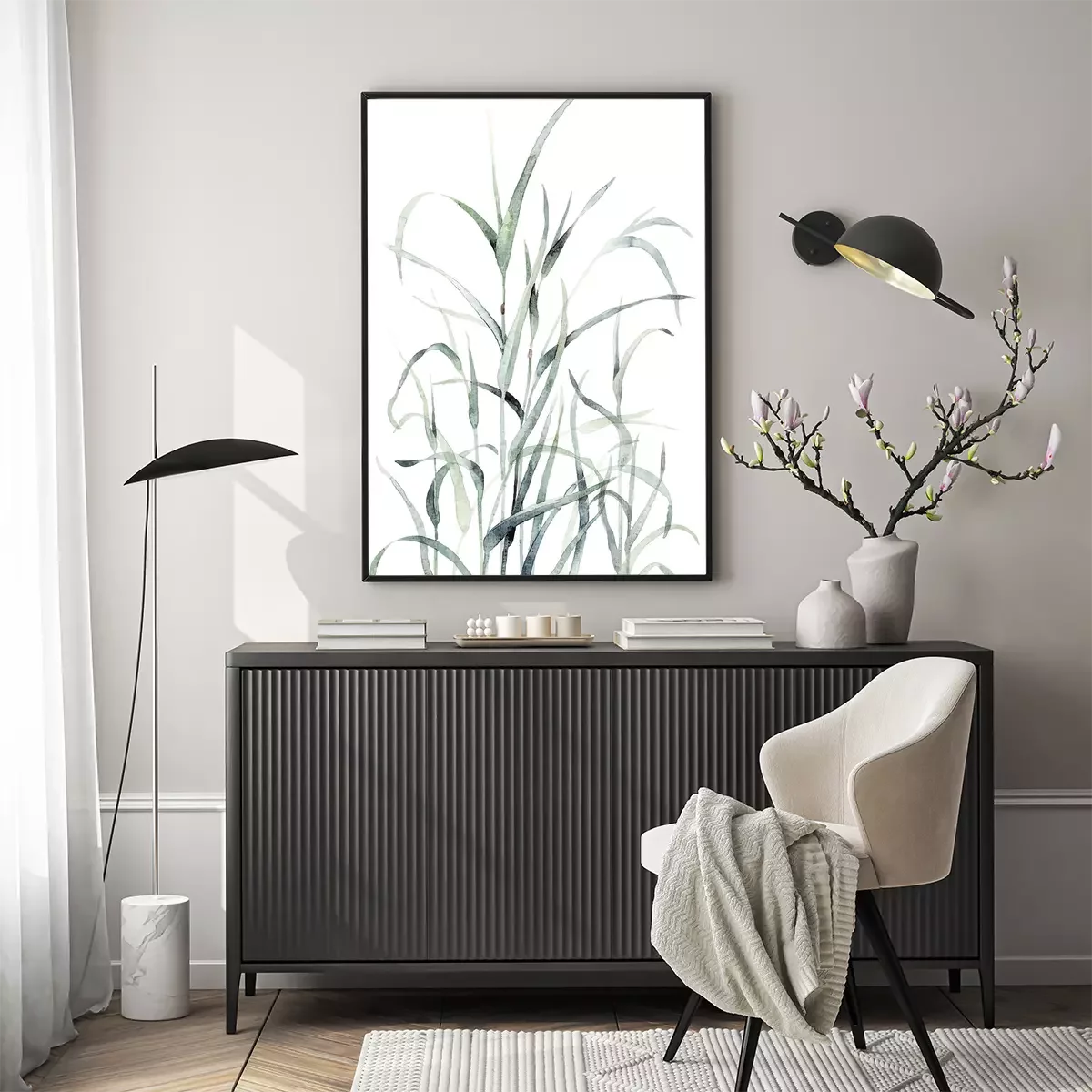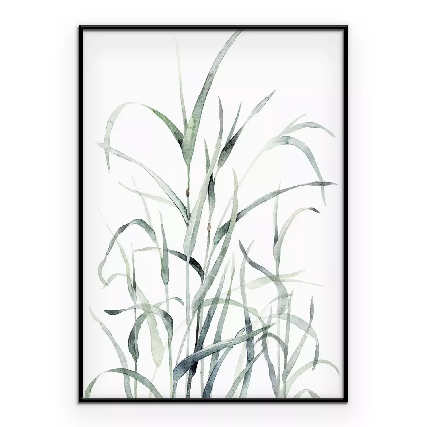 Poster: Grüne Grashalme auf weißem Hintergrund