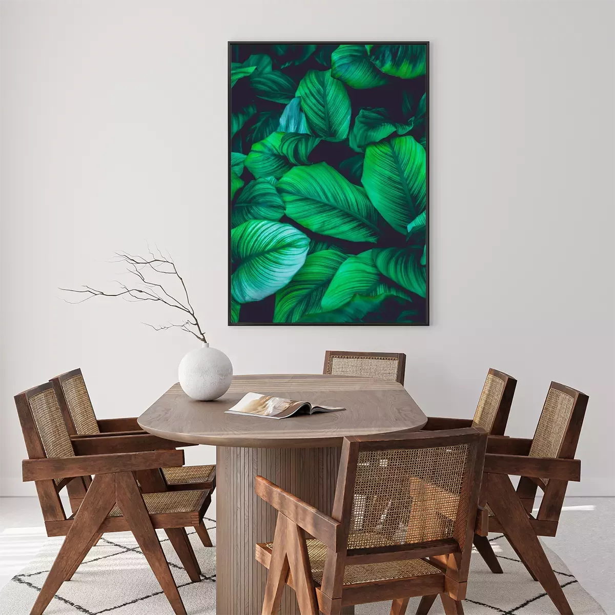 Leaves of Spathiphyllum cannifolium, abstract green texture, nature background, tropical leaf