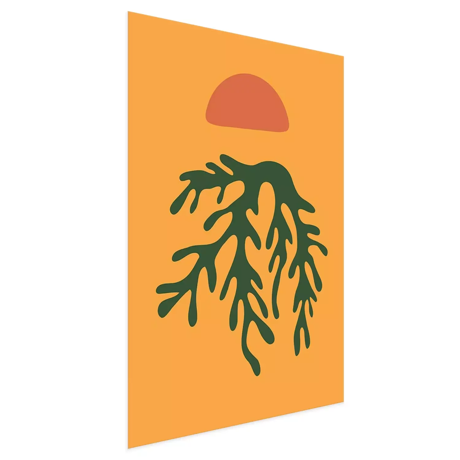 Poster: Grünes Blatt vor dem Hintergrund der aufgehenden Sonne