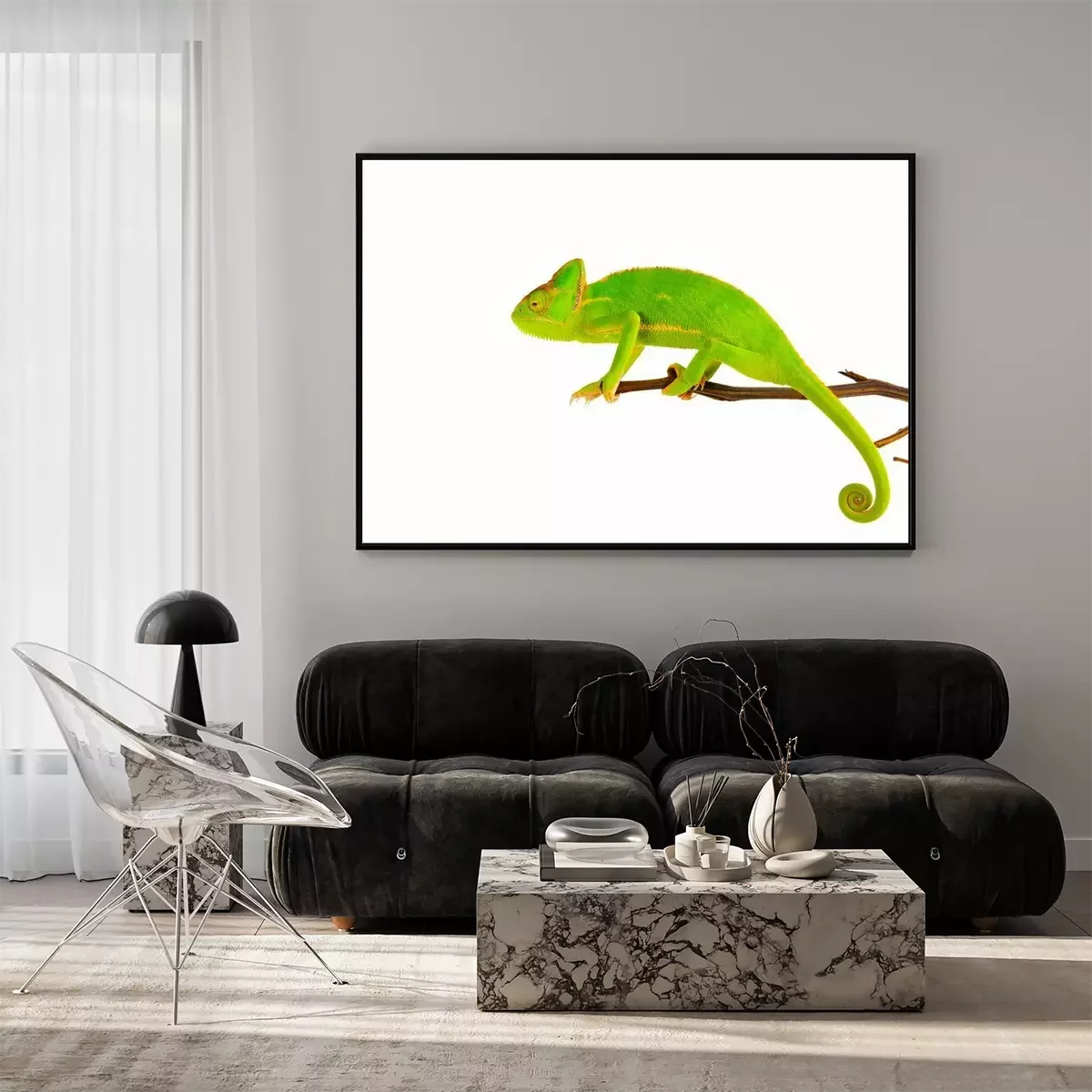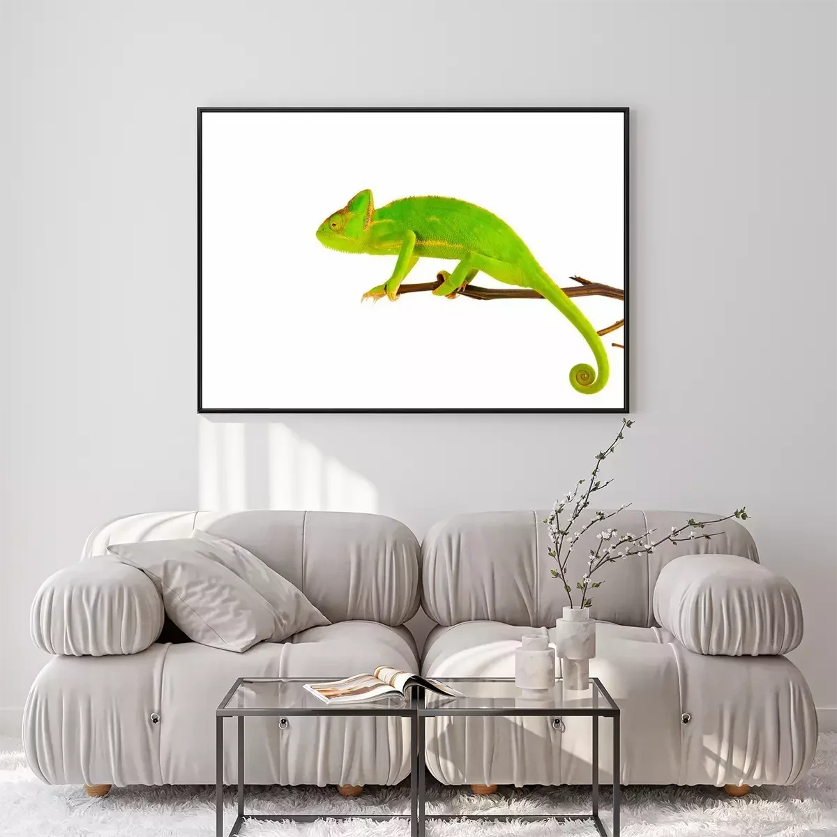 Poster Grünes Chamäleon auf einem Ast