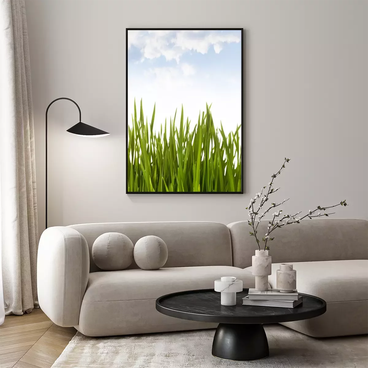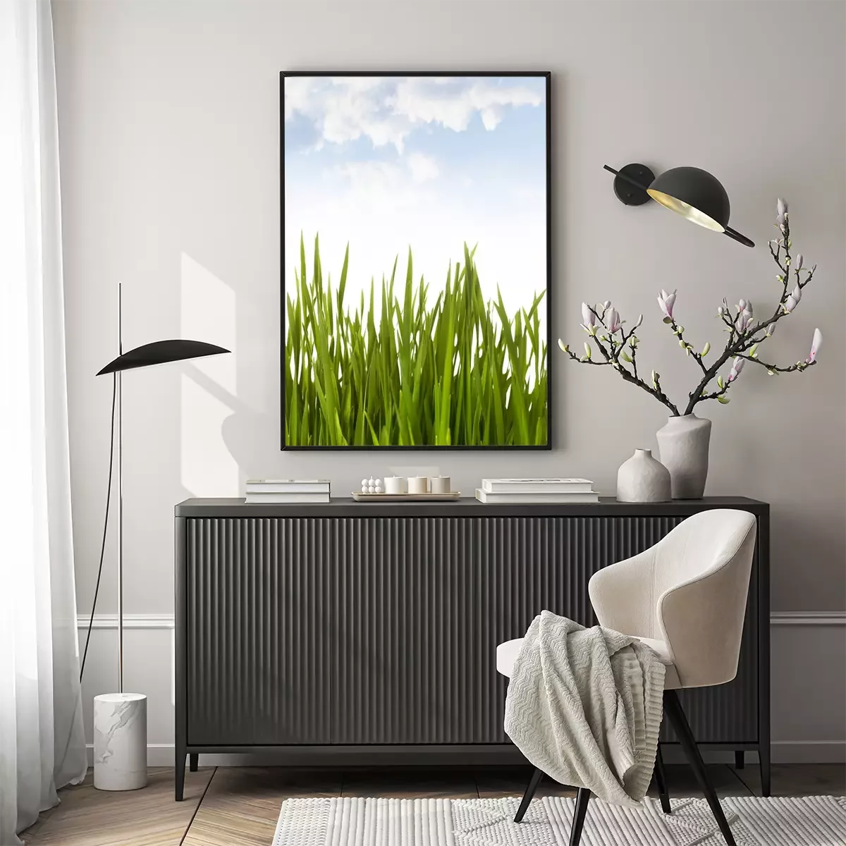 Poster: Grünes Gras auf dem Hintergrund des Frühlingshimmels