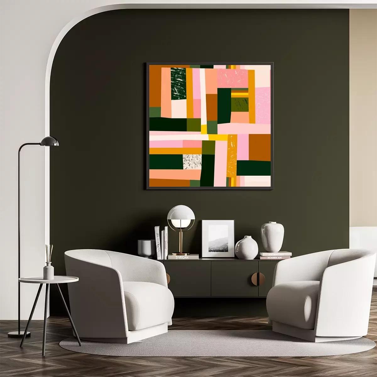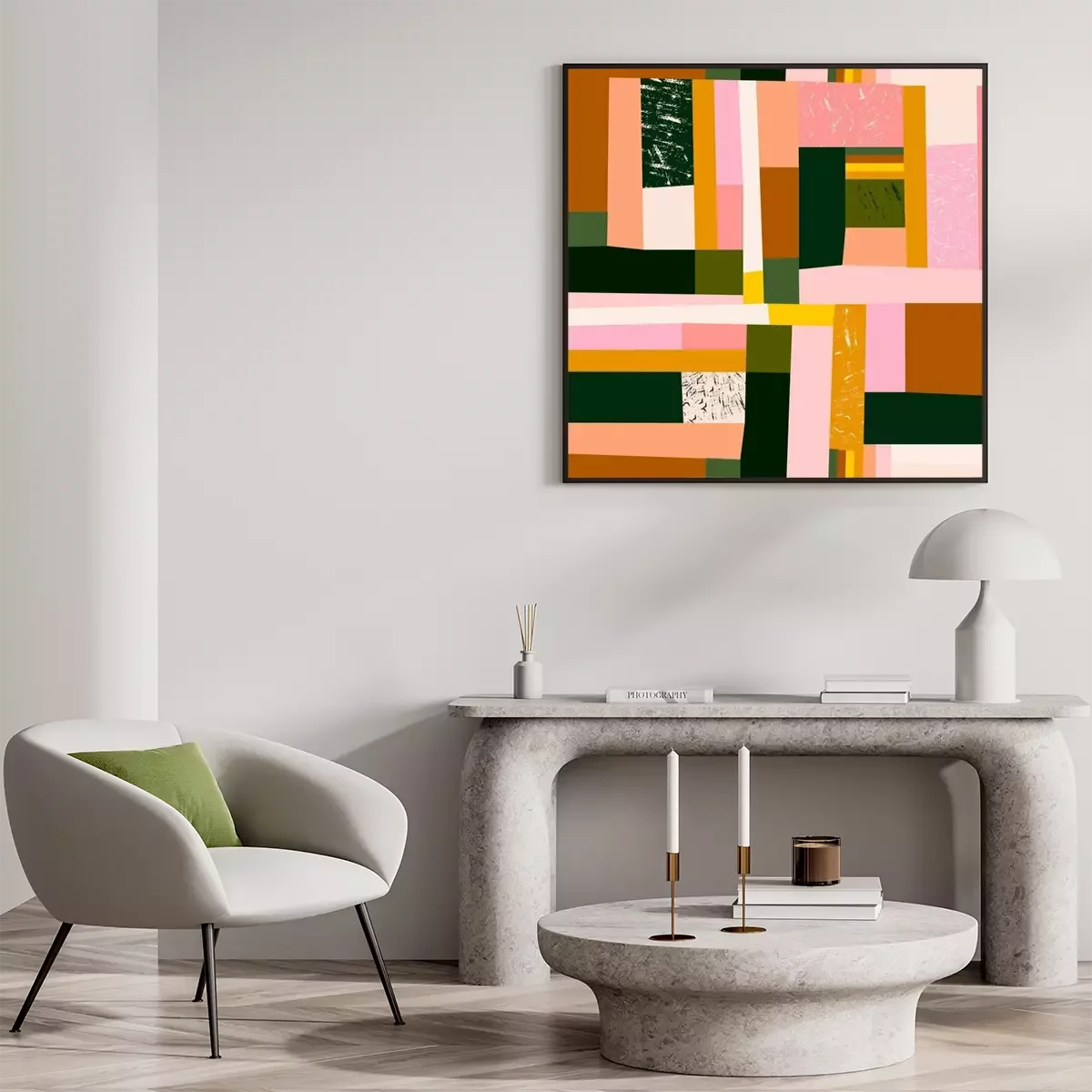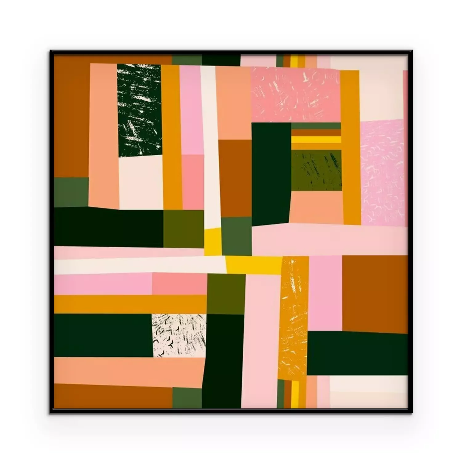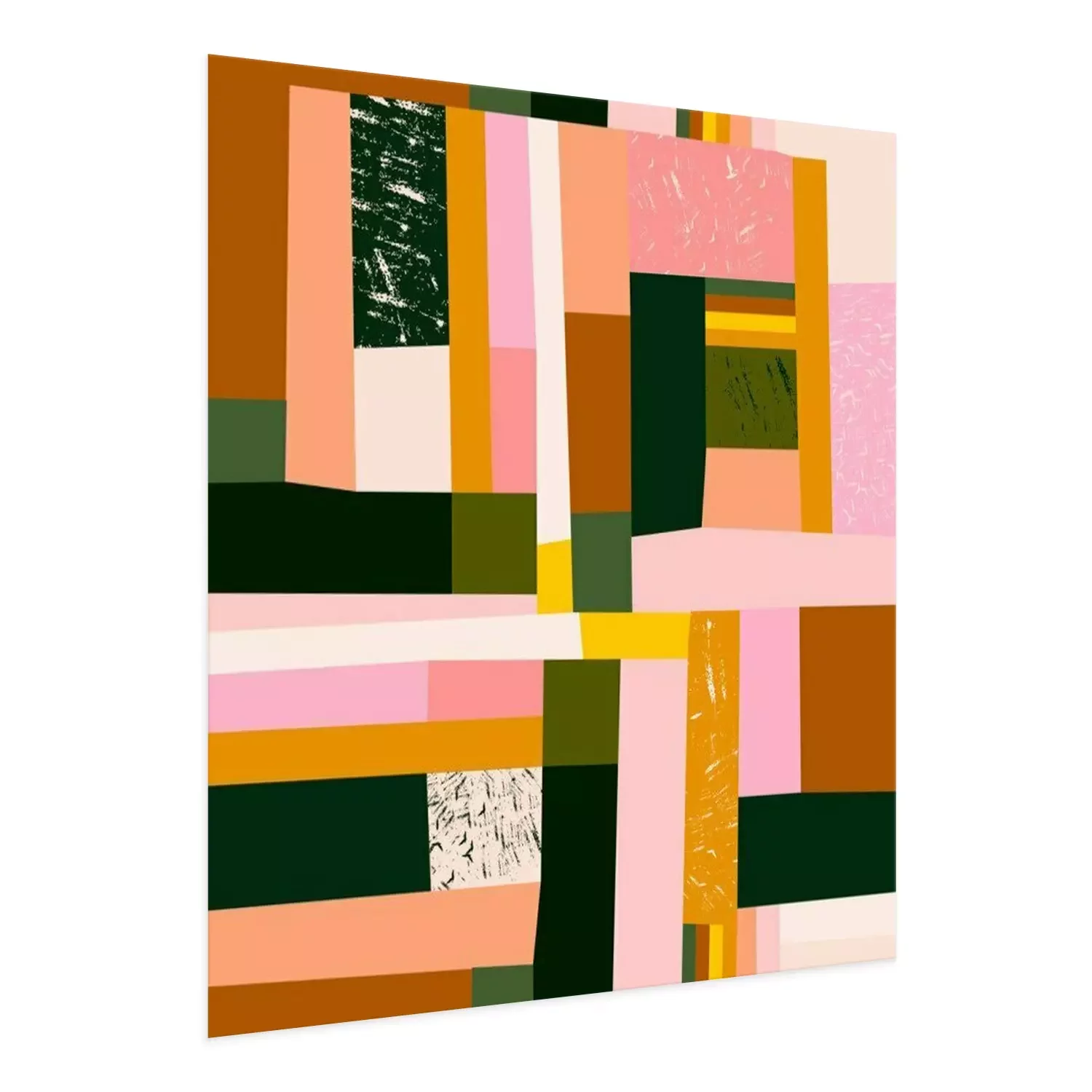 Poster: Hand drawn various abstract rectangles and lines. Mosaic style. Contemporary vector seamless pattern. Pastel colors. Perfect for textile prints