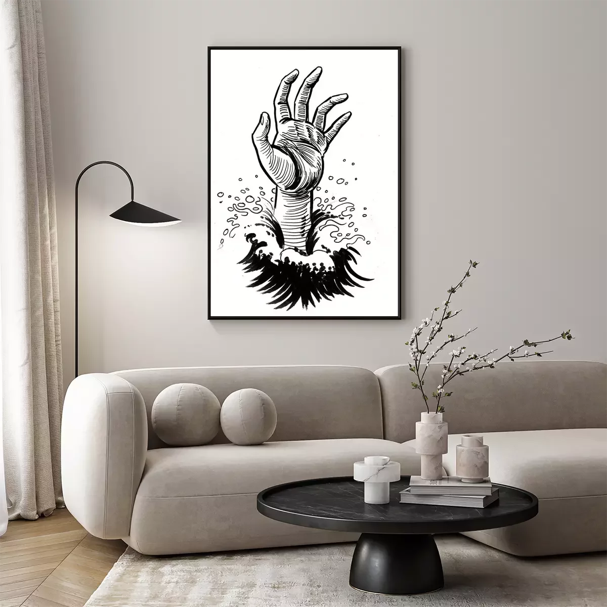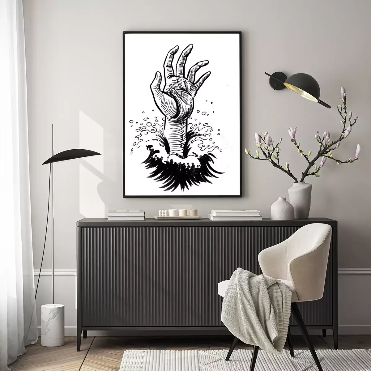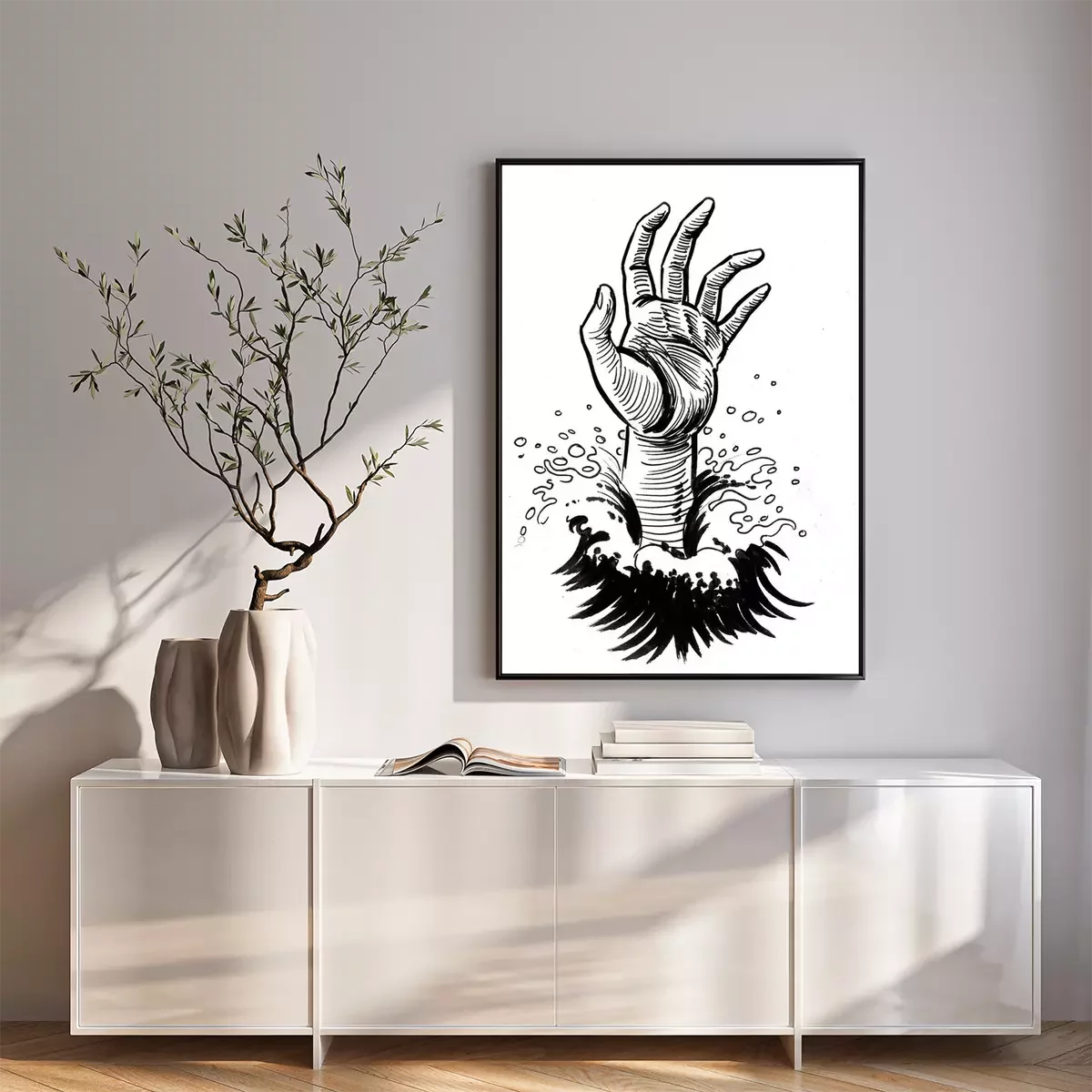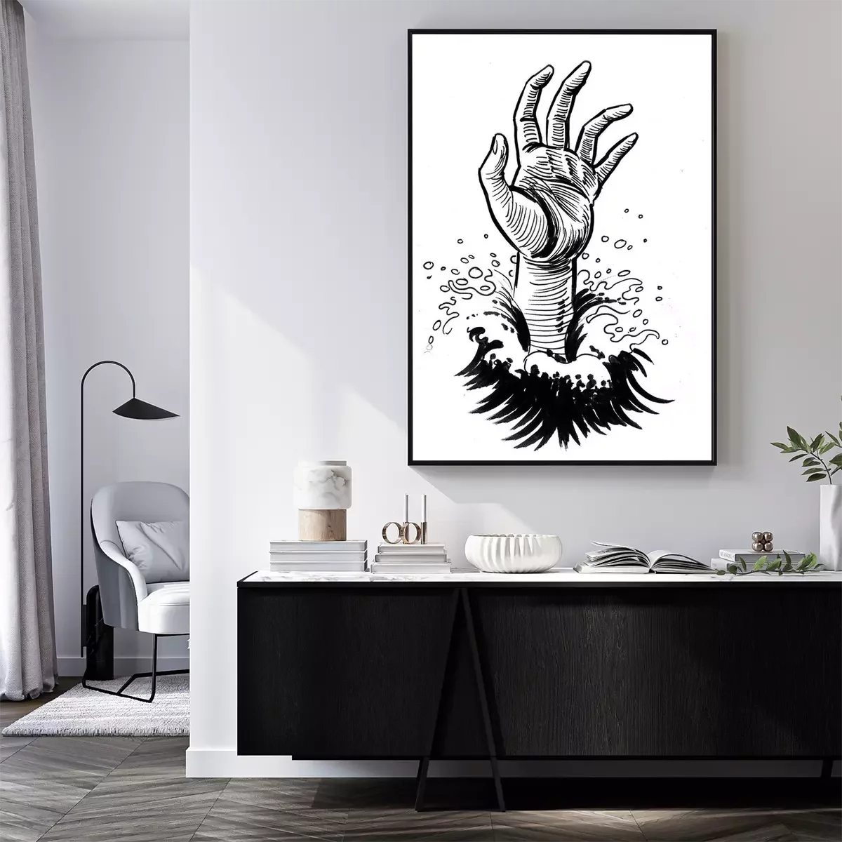 Poster: Hand eines im Meer Ertrinkenden