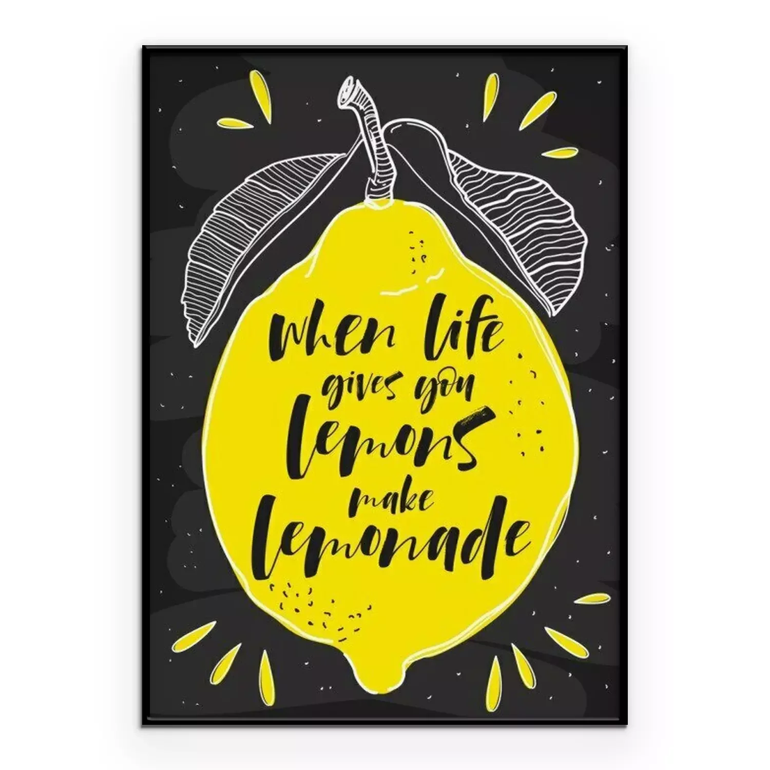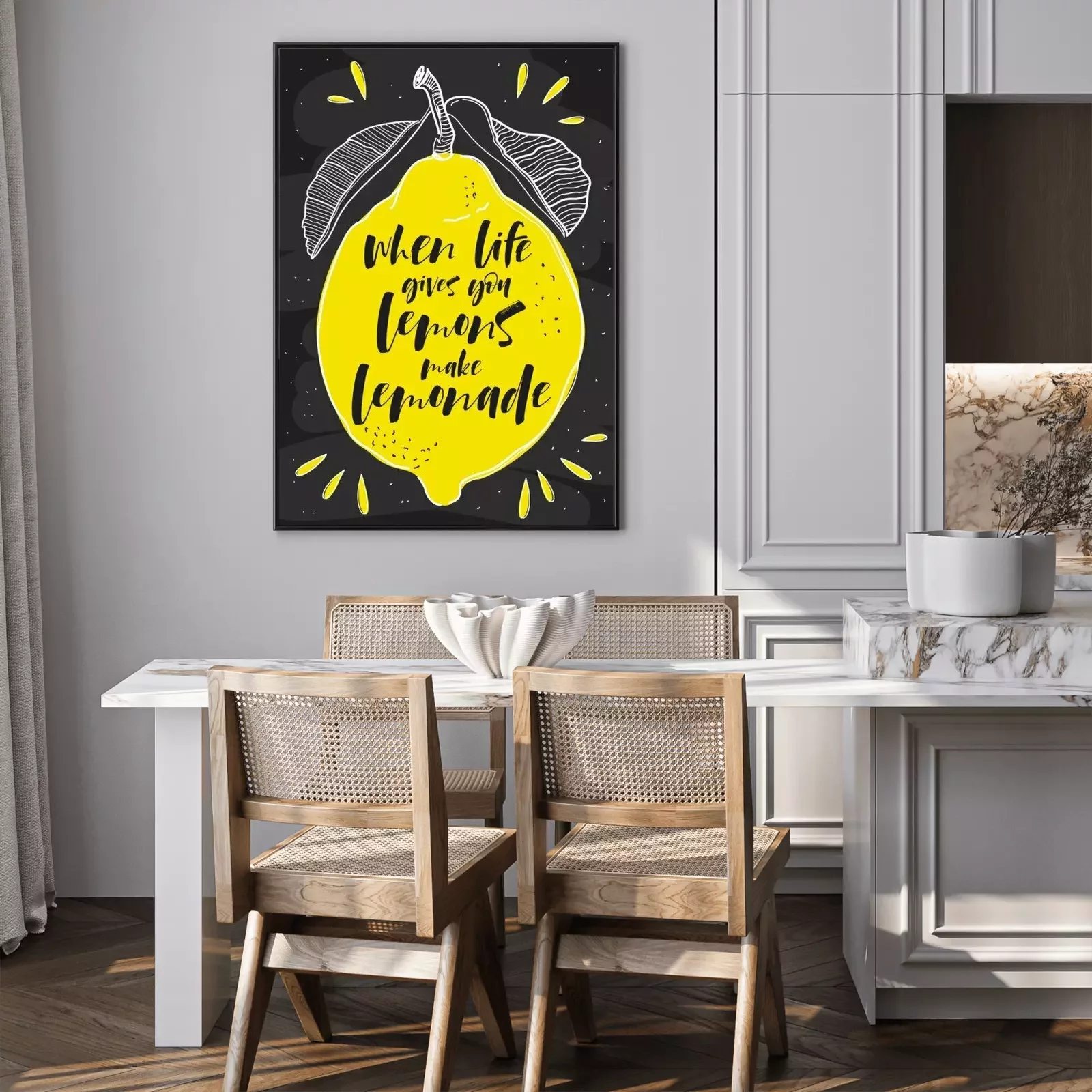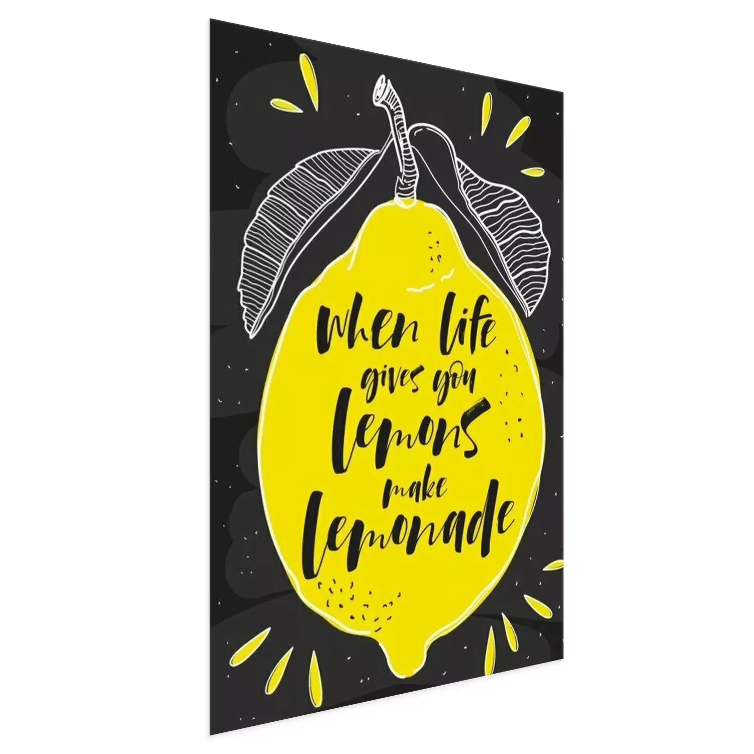 Poster: Hand gezeichnetes Typografieplakat. Zitrone mit Inschrift "Wenn das Leben Ihnen Zitronen macht Limonade".