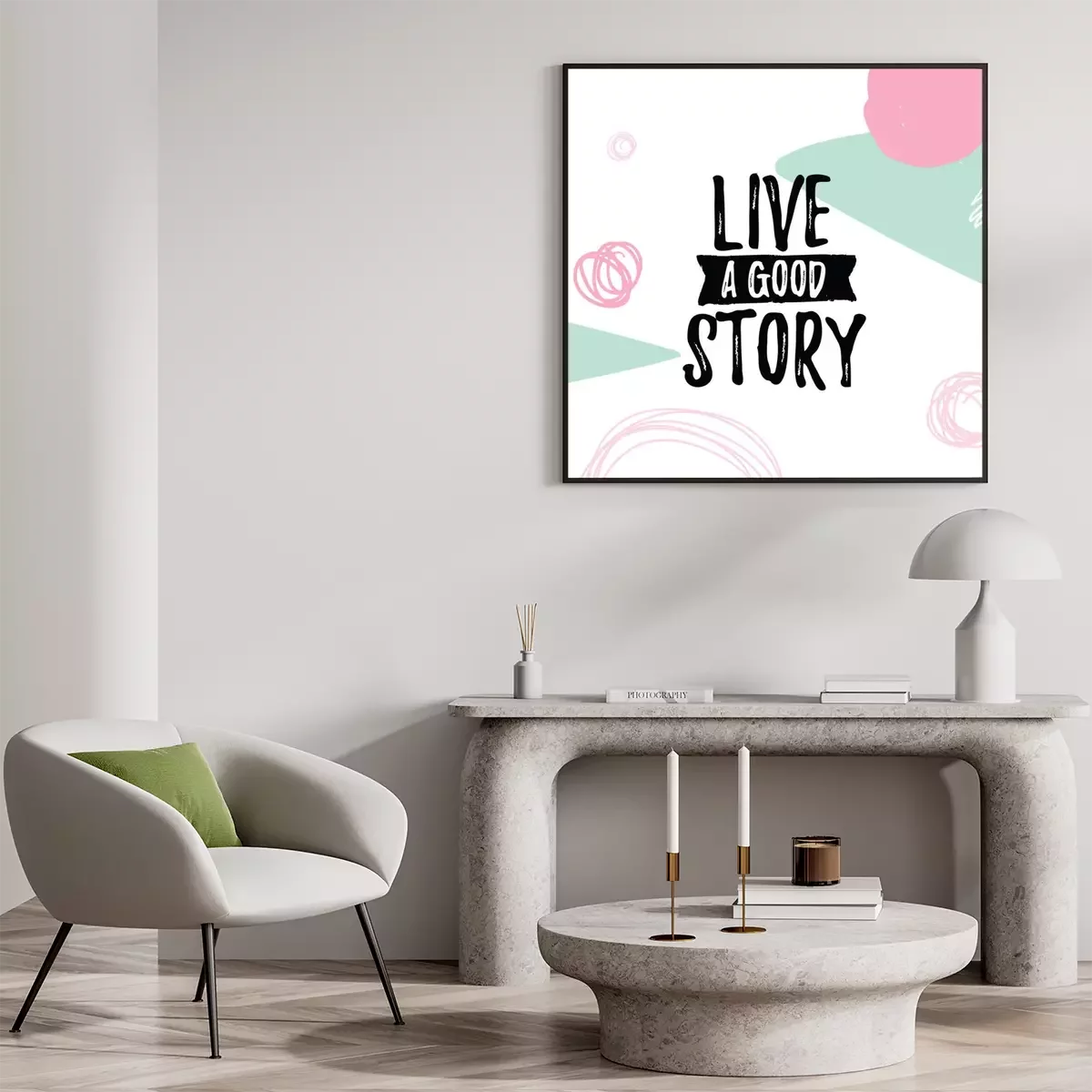 Poster: Heitere bunte Aufschrift über ein gutes Leben
