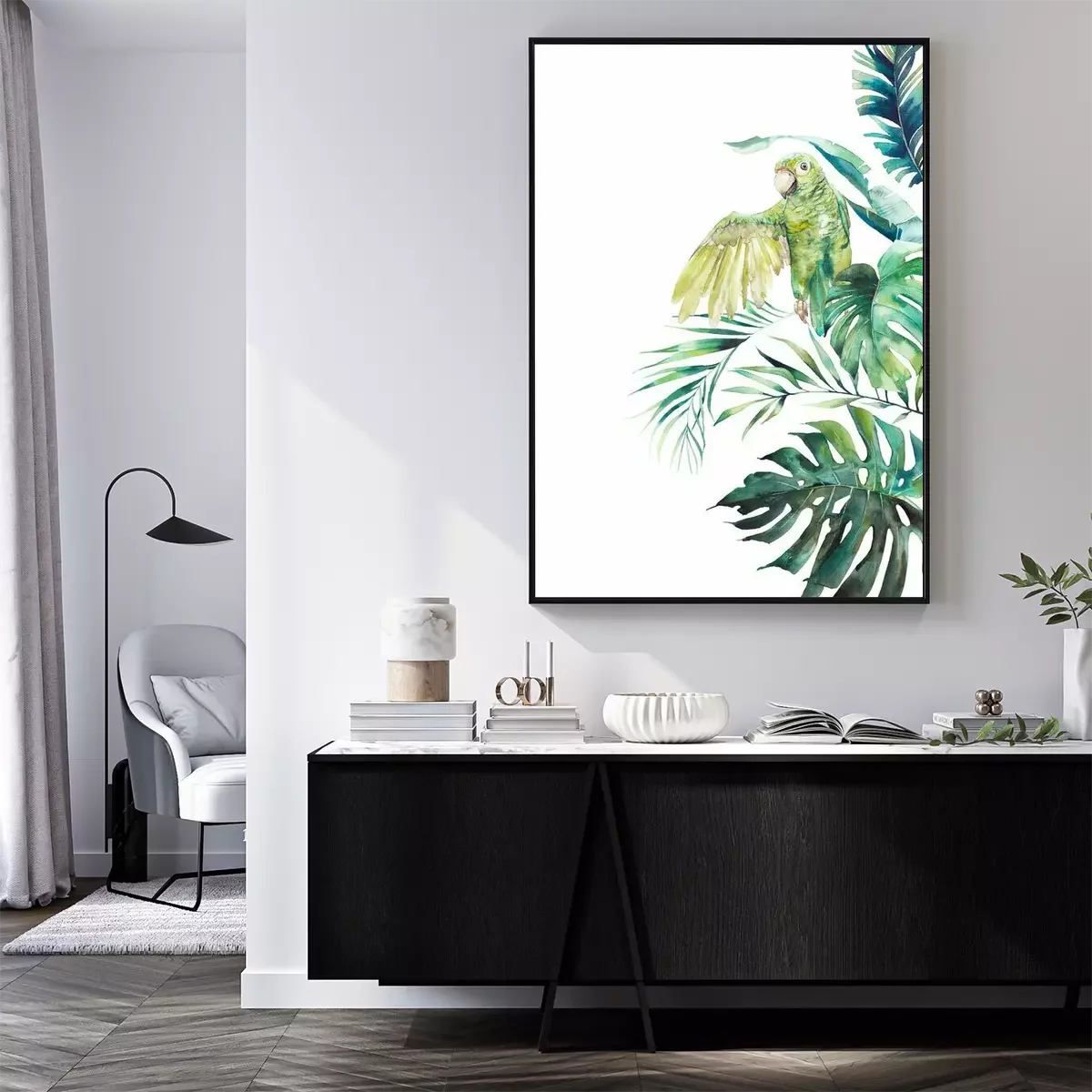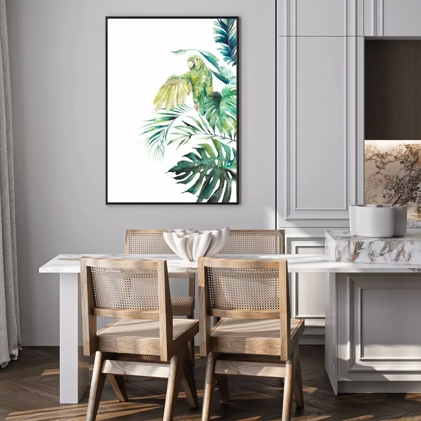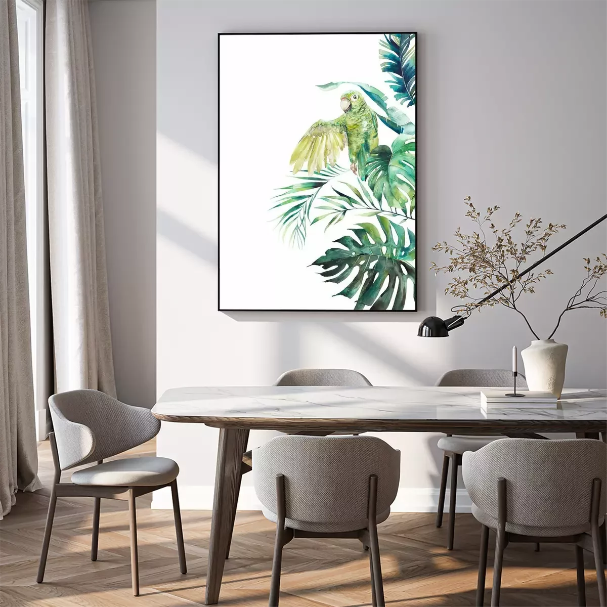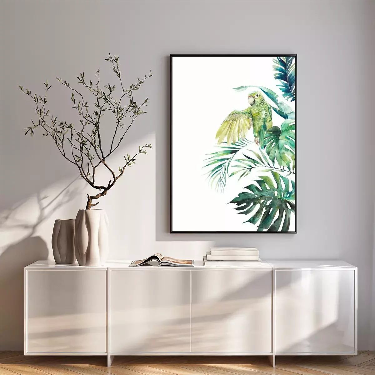 Poster: Heller Dschungel mit Papagei