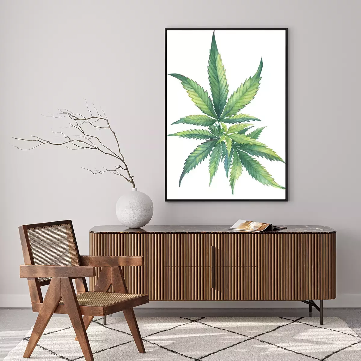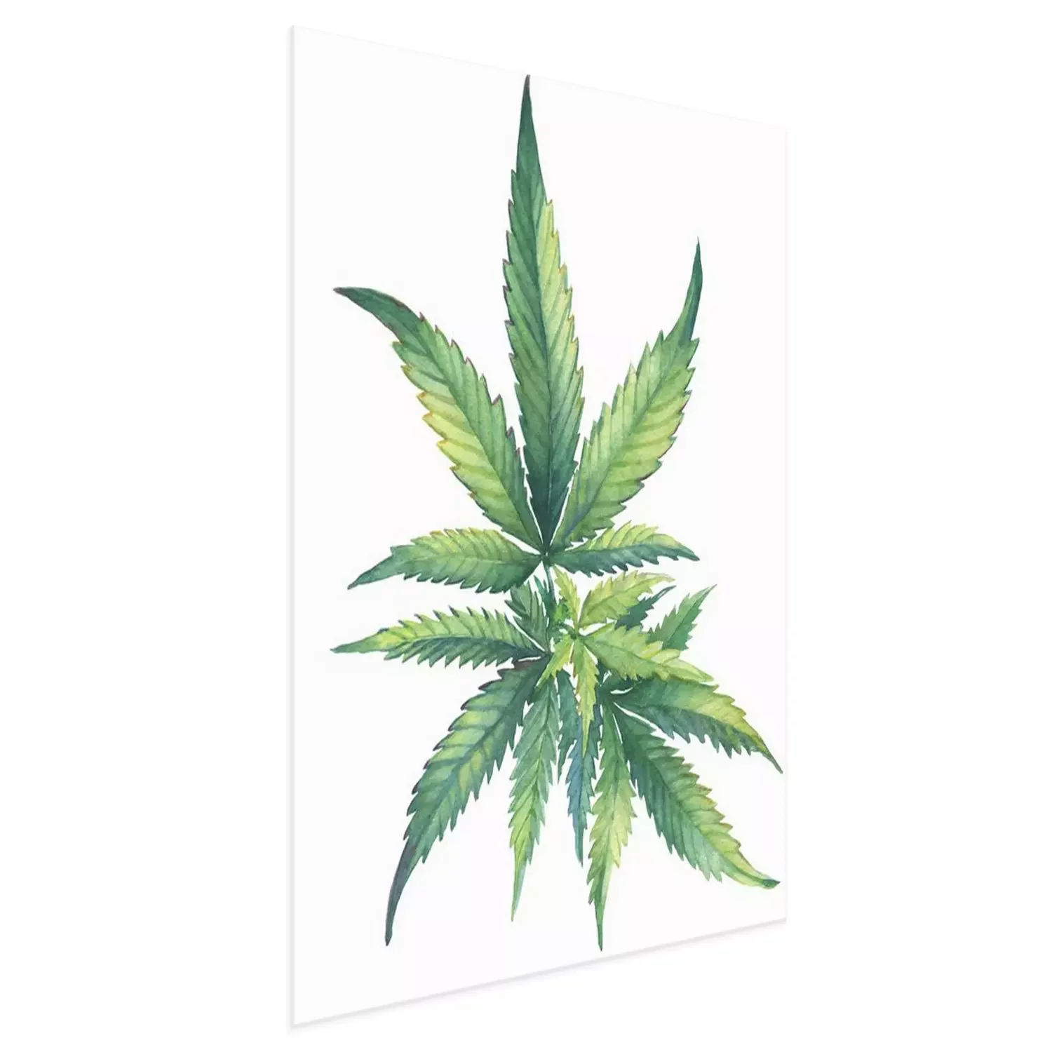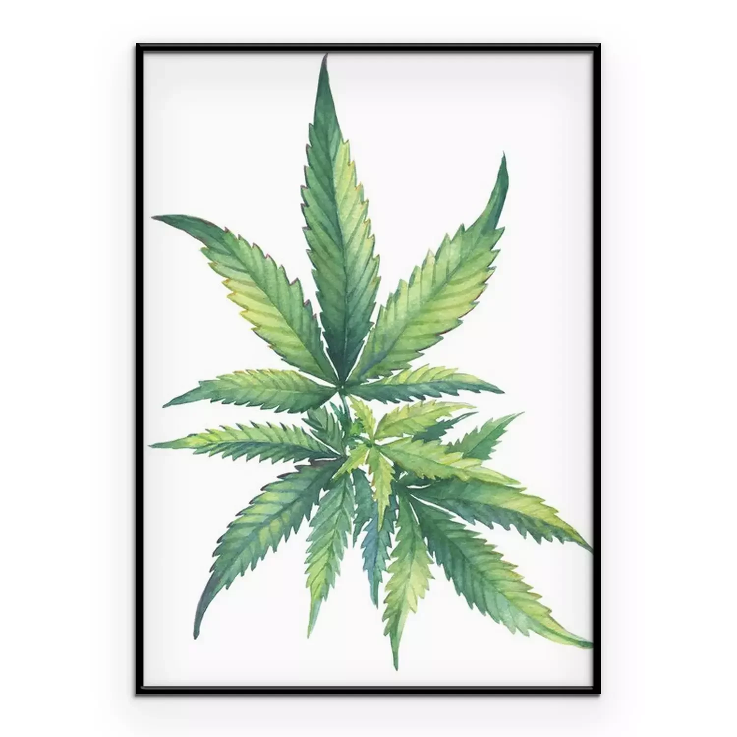 Poster: Hellgrüne Hanfblätter auf weißem Hintergrund