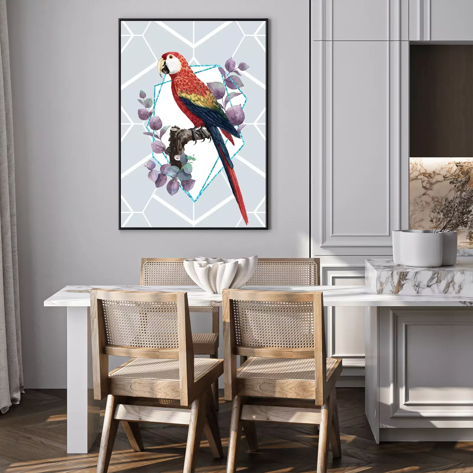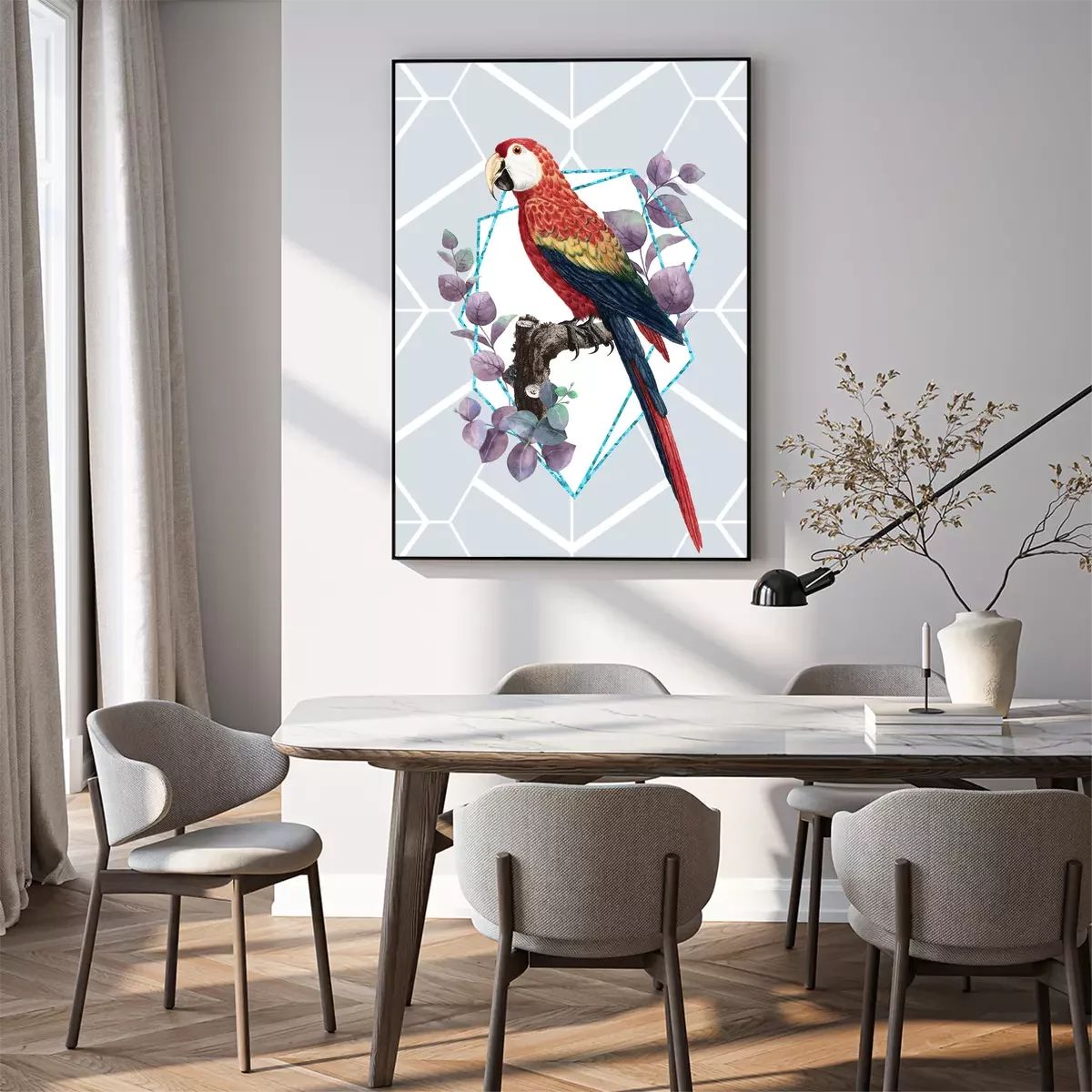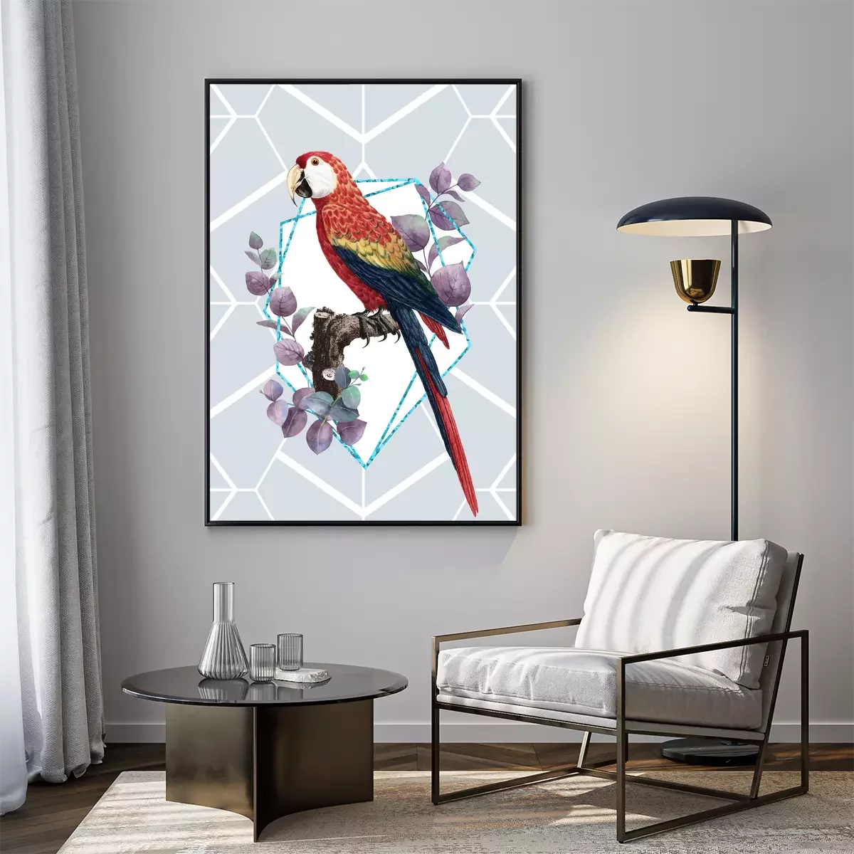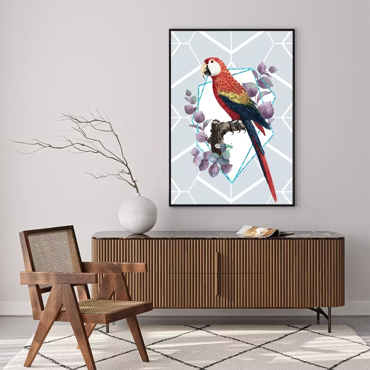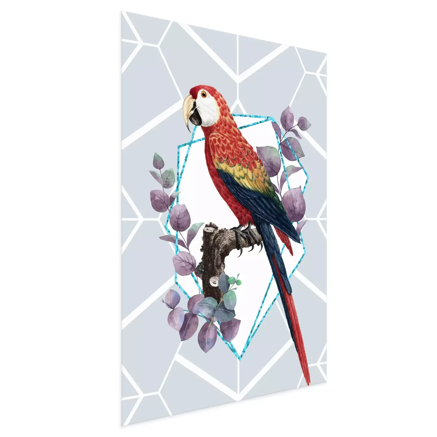 Poster: Hellroter Ara im modernen Stil